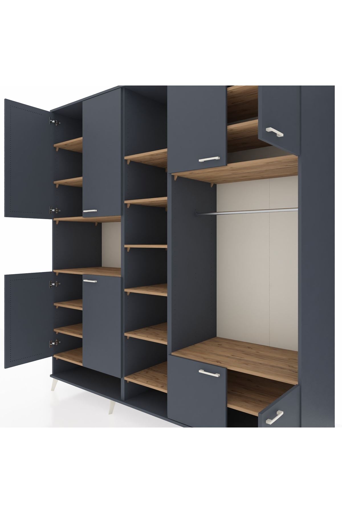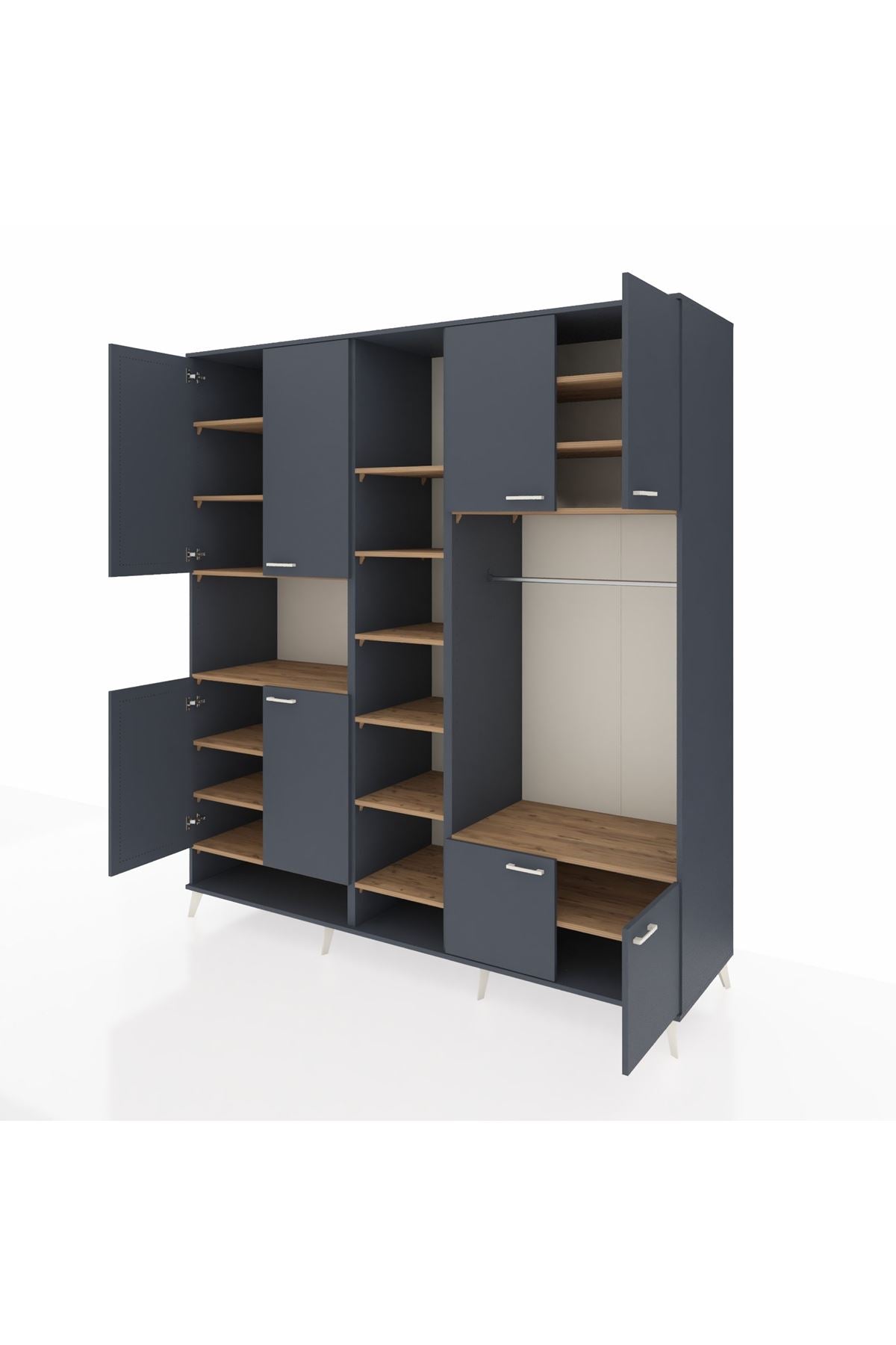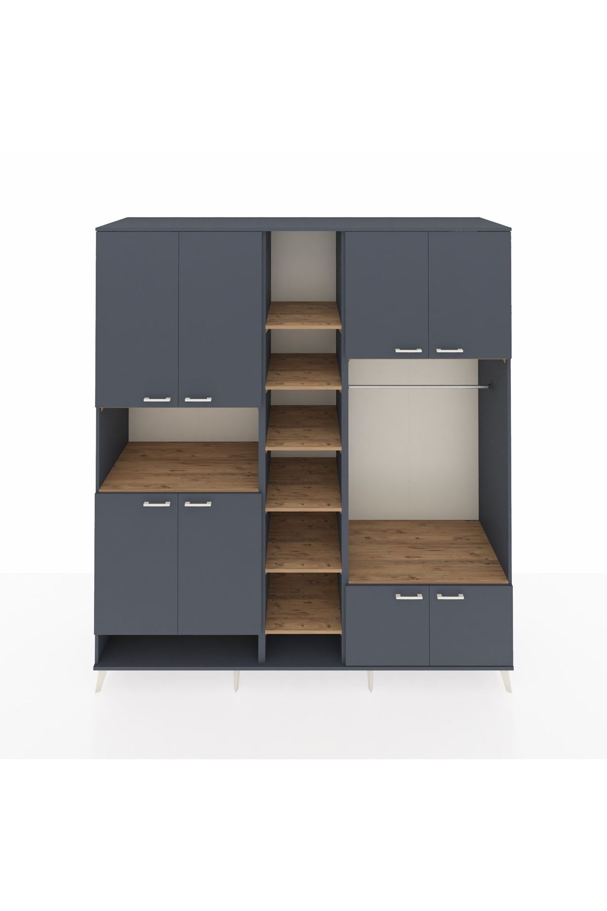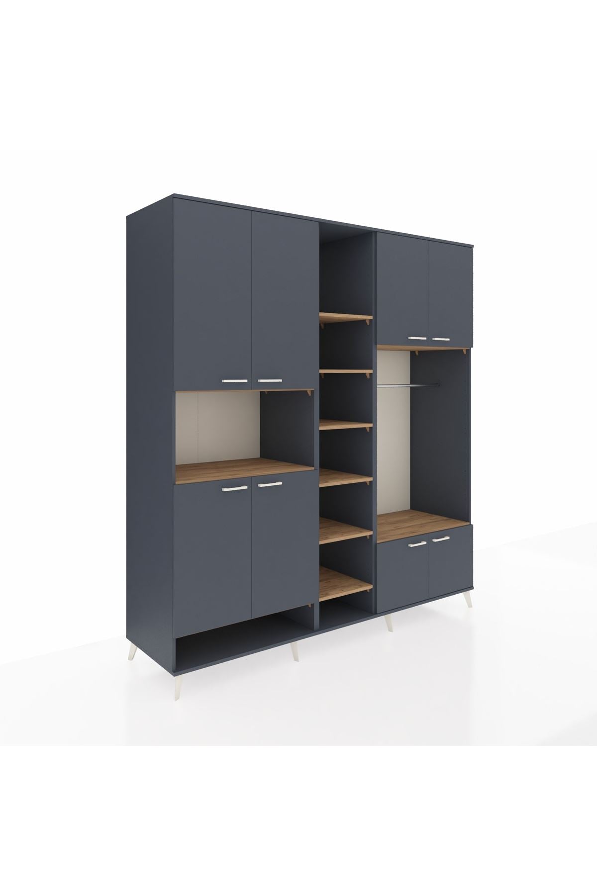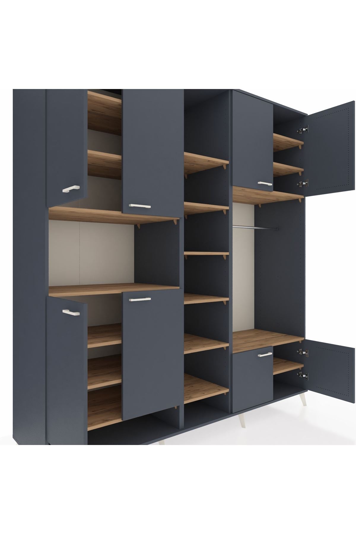 Kronos Dolap 18 Raflı 8 Kapaklı Tek Askılı 220x59x243 Aytaşı-Antrasit/Çam