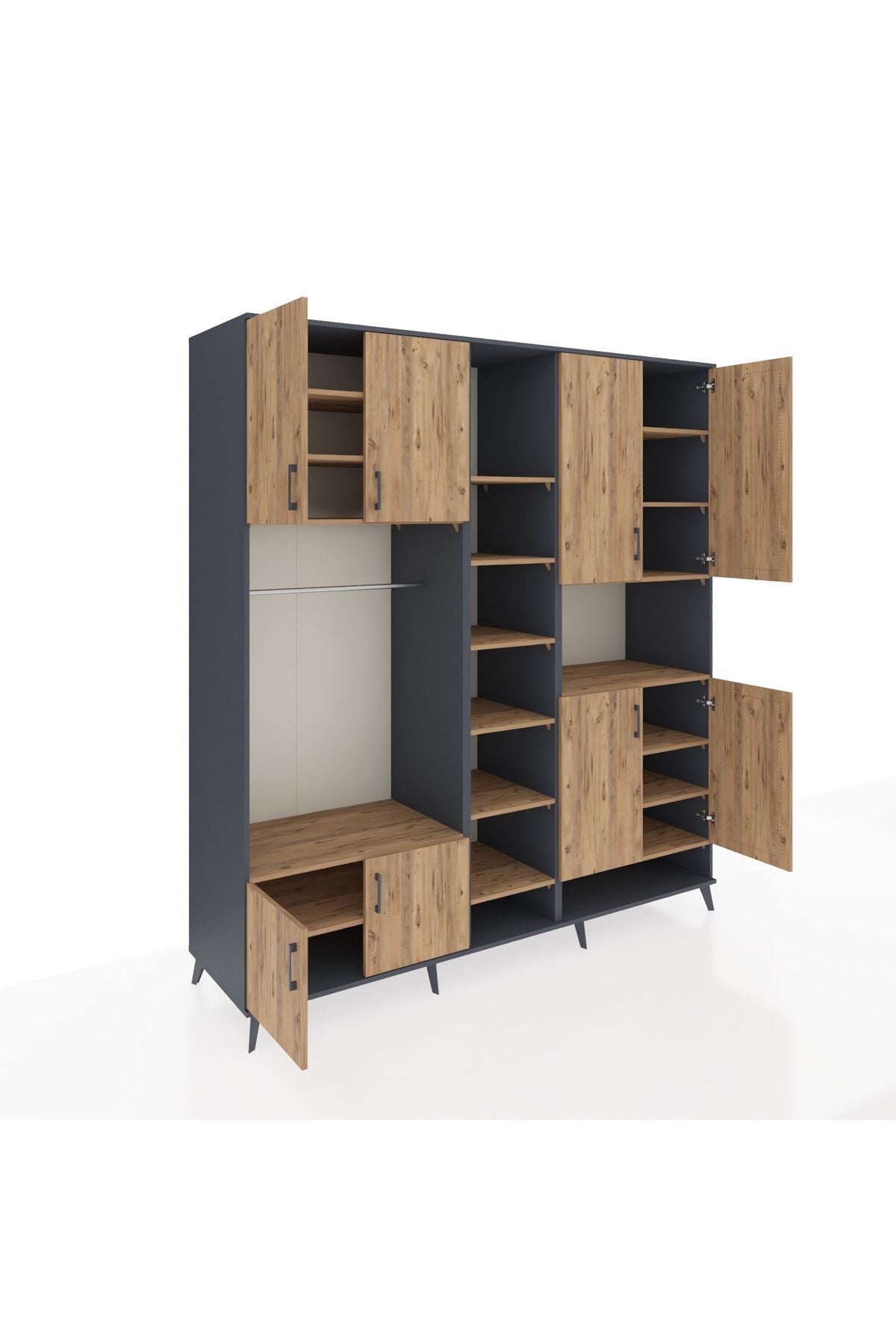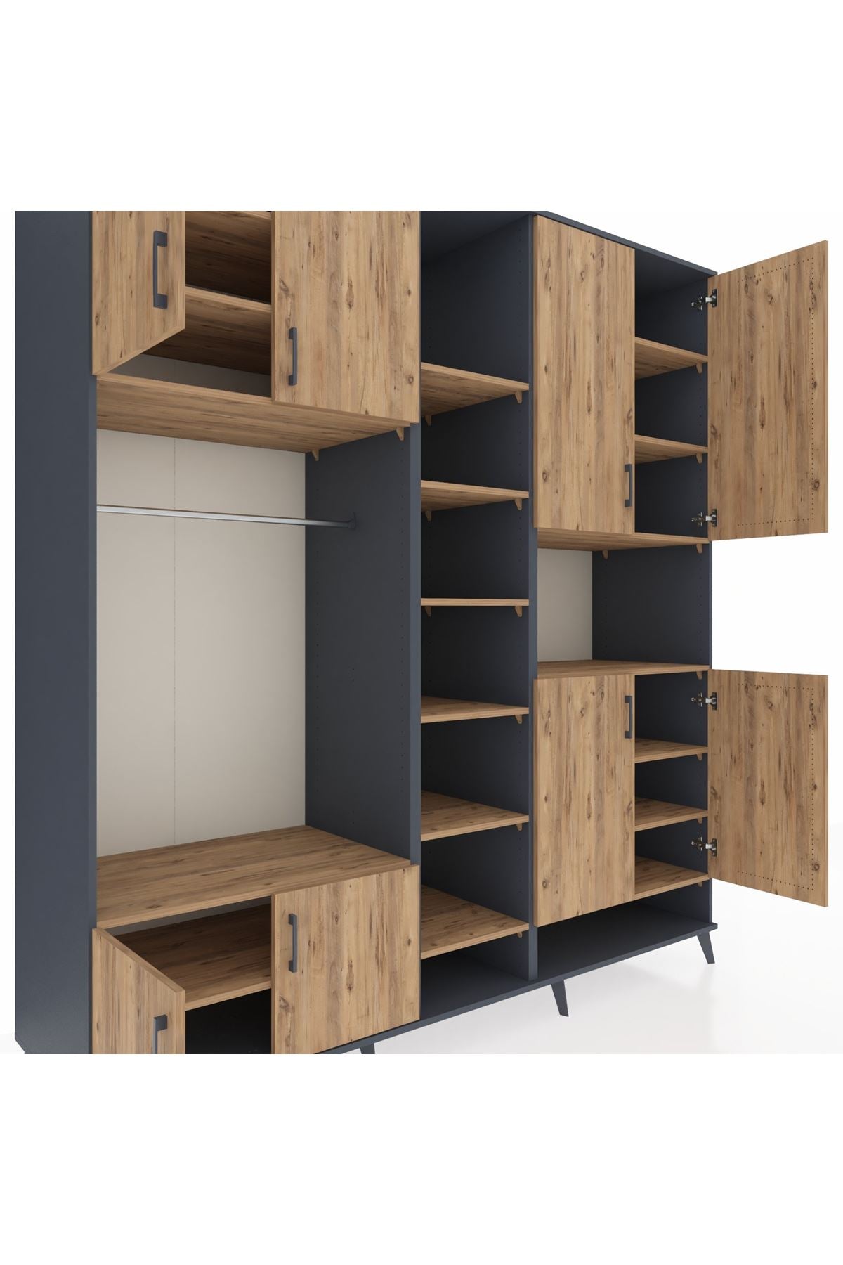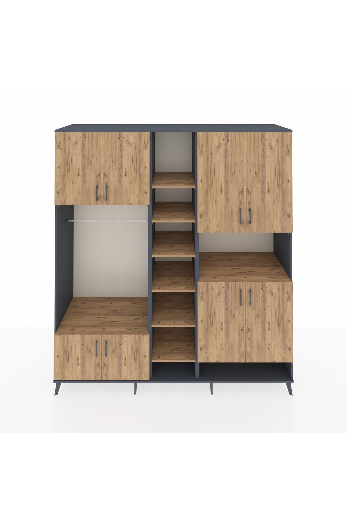 Kronos Dolap 18 Raflı 8 Kapaklı Tek Askılı 220x59x243 Antrasit-Çam/Çam