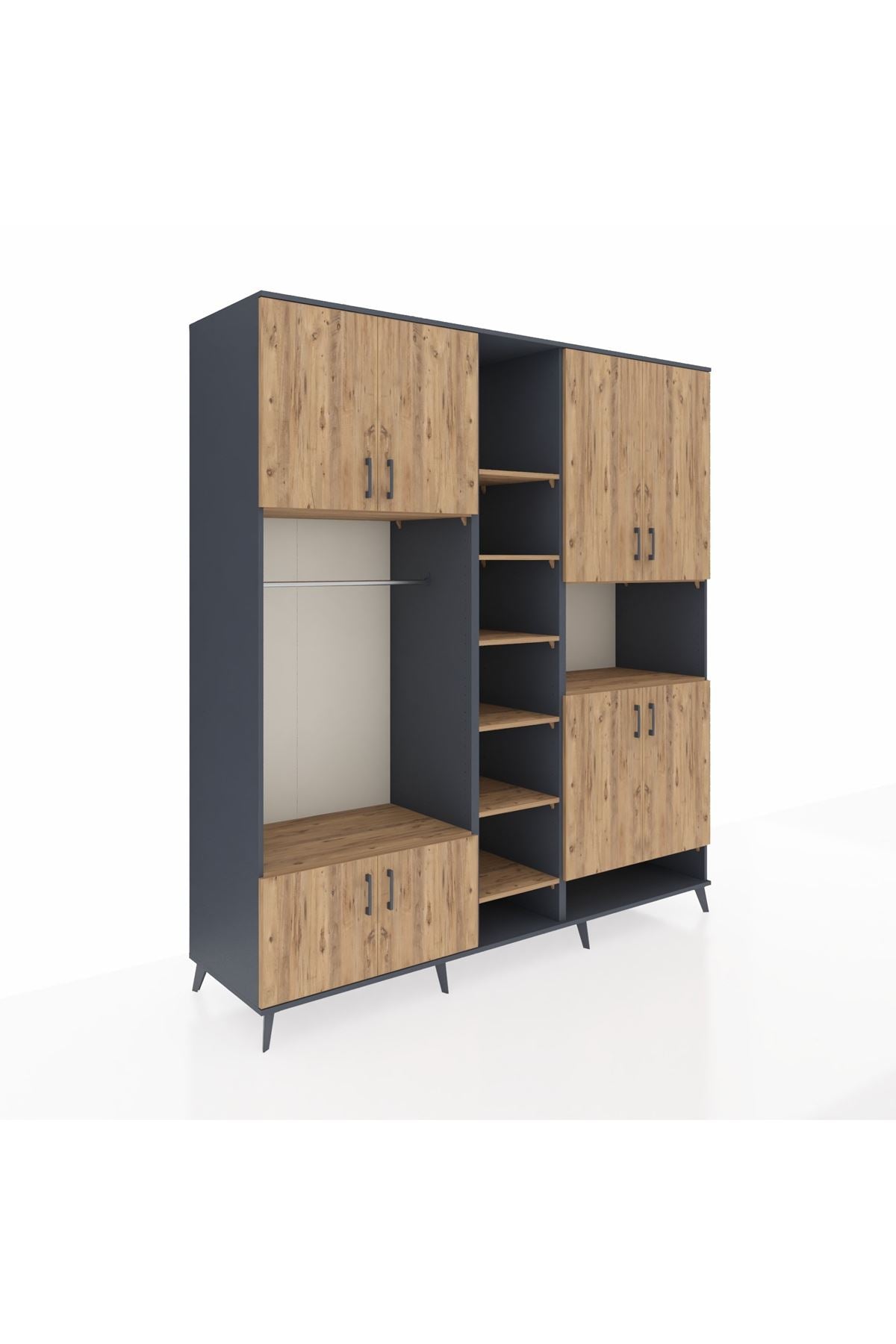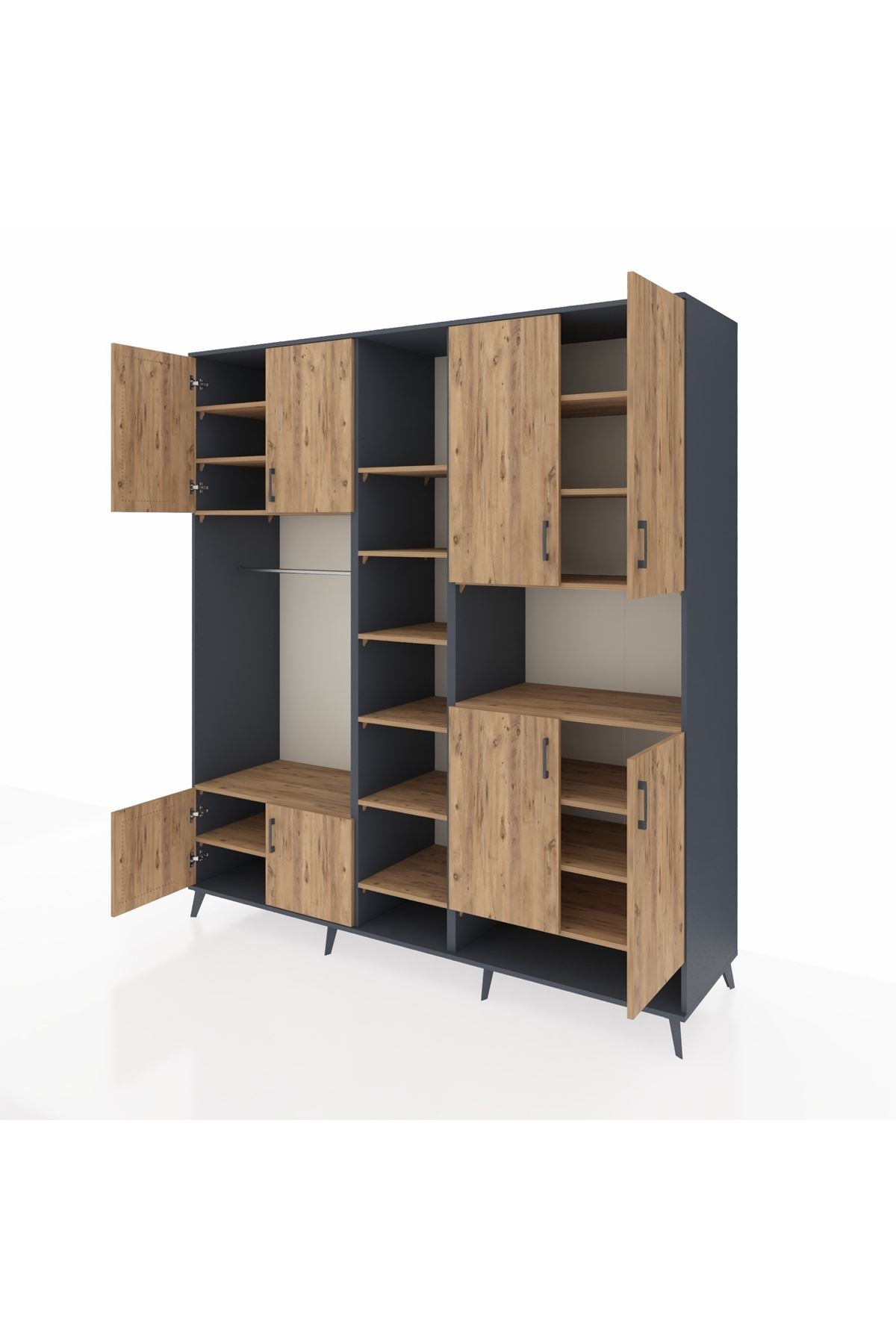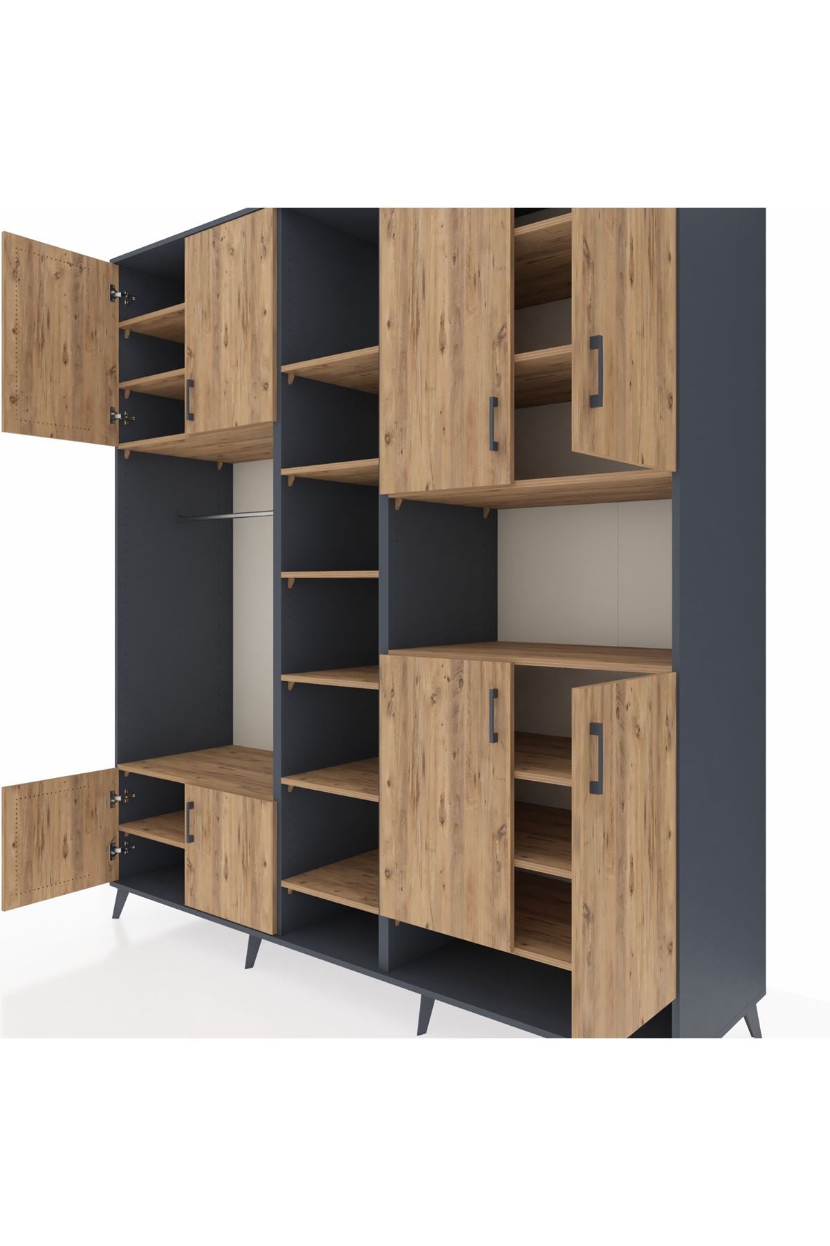 Kronos Dolap 18 Raflı 8 Kapaklı Tek Askılı 220x59x243 Antrasit-Çam/Çam