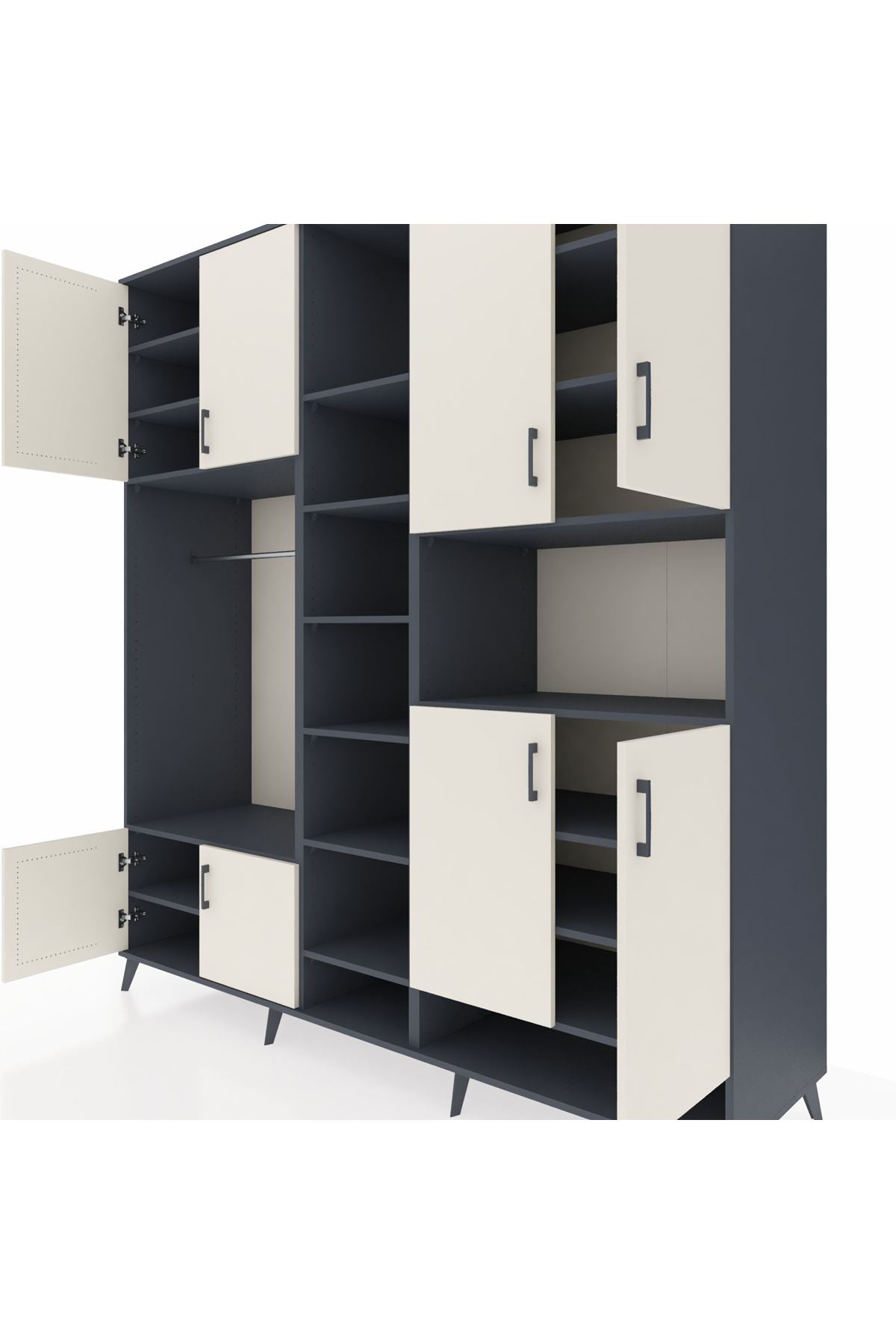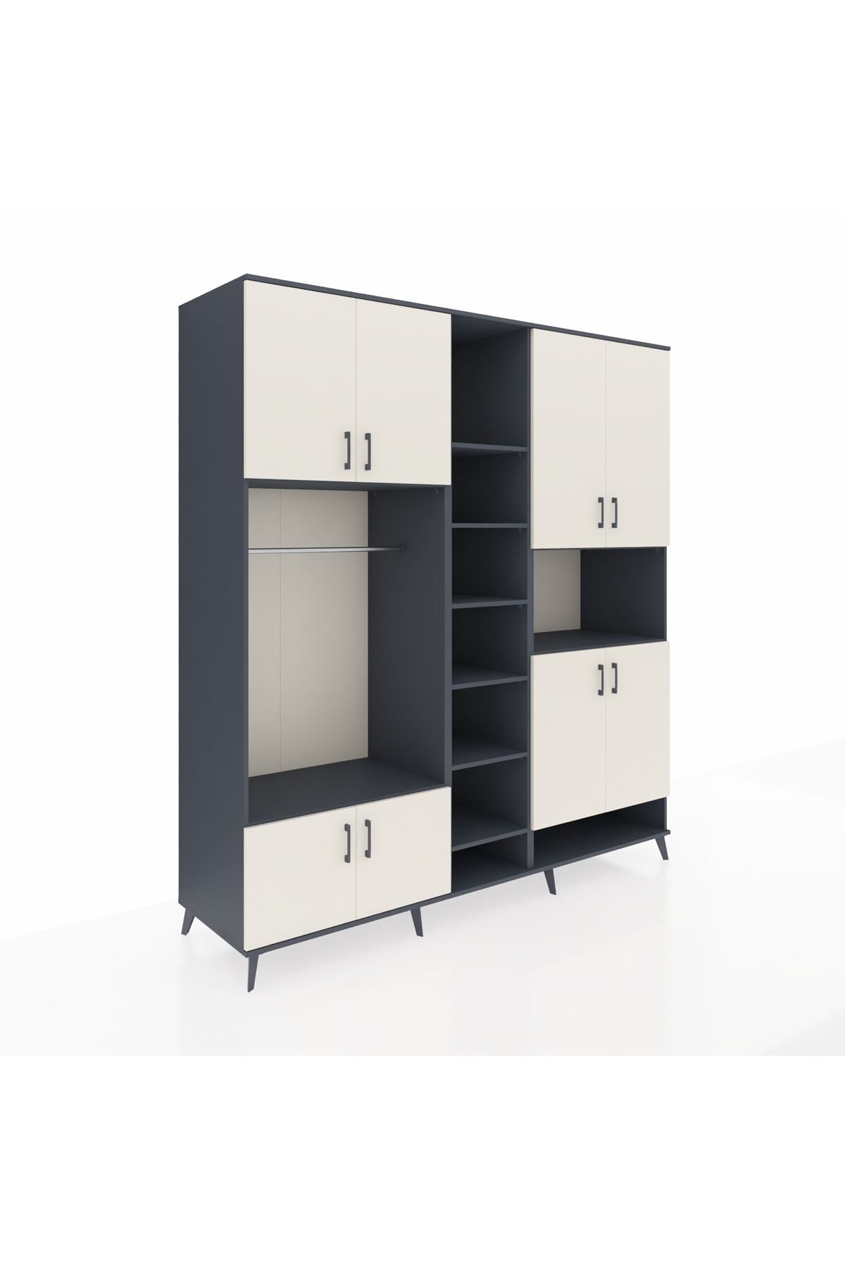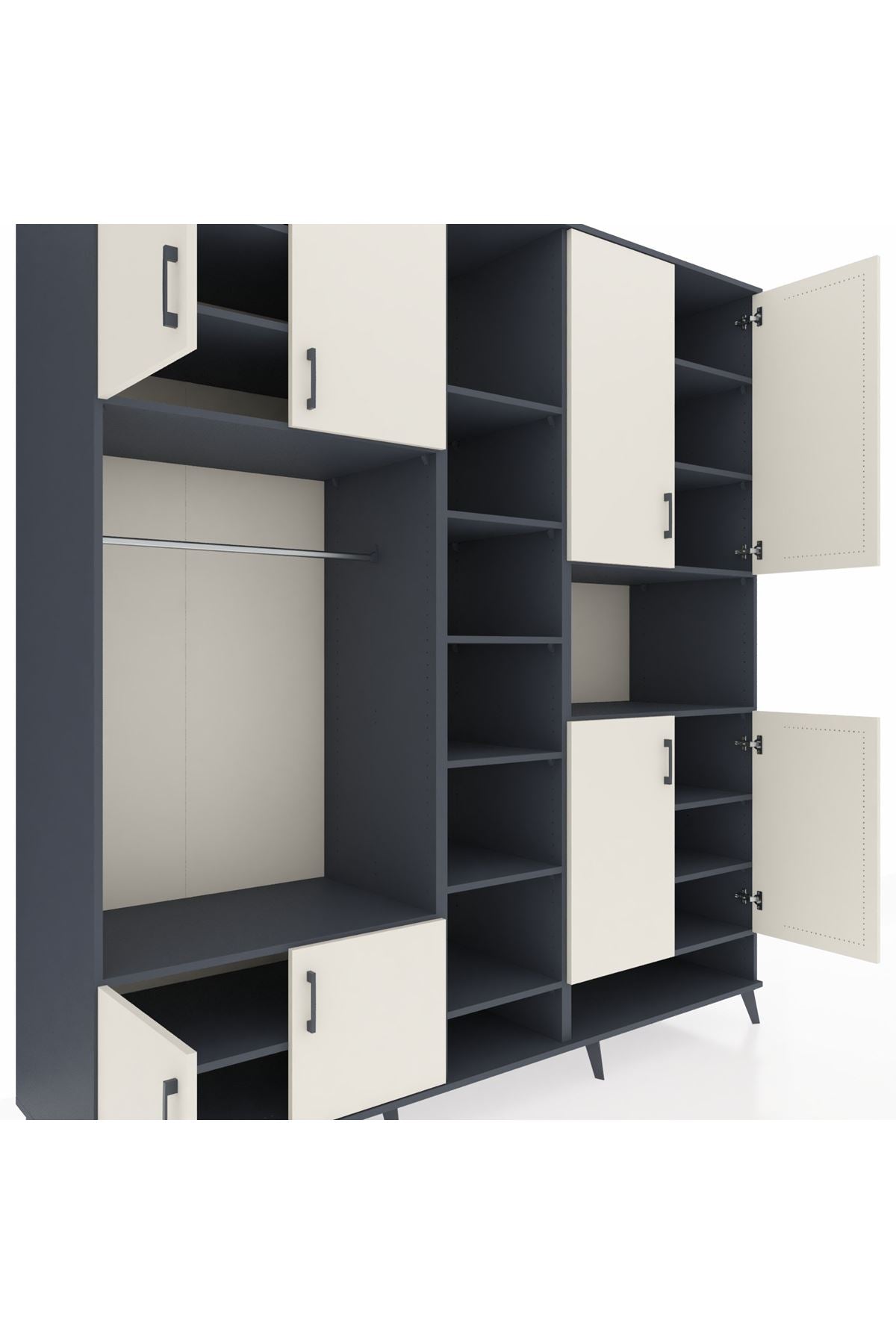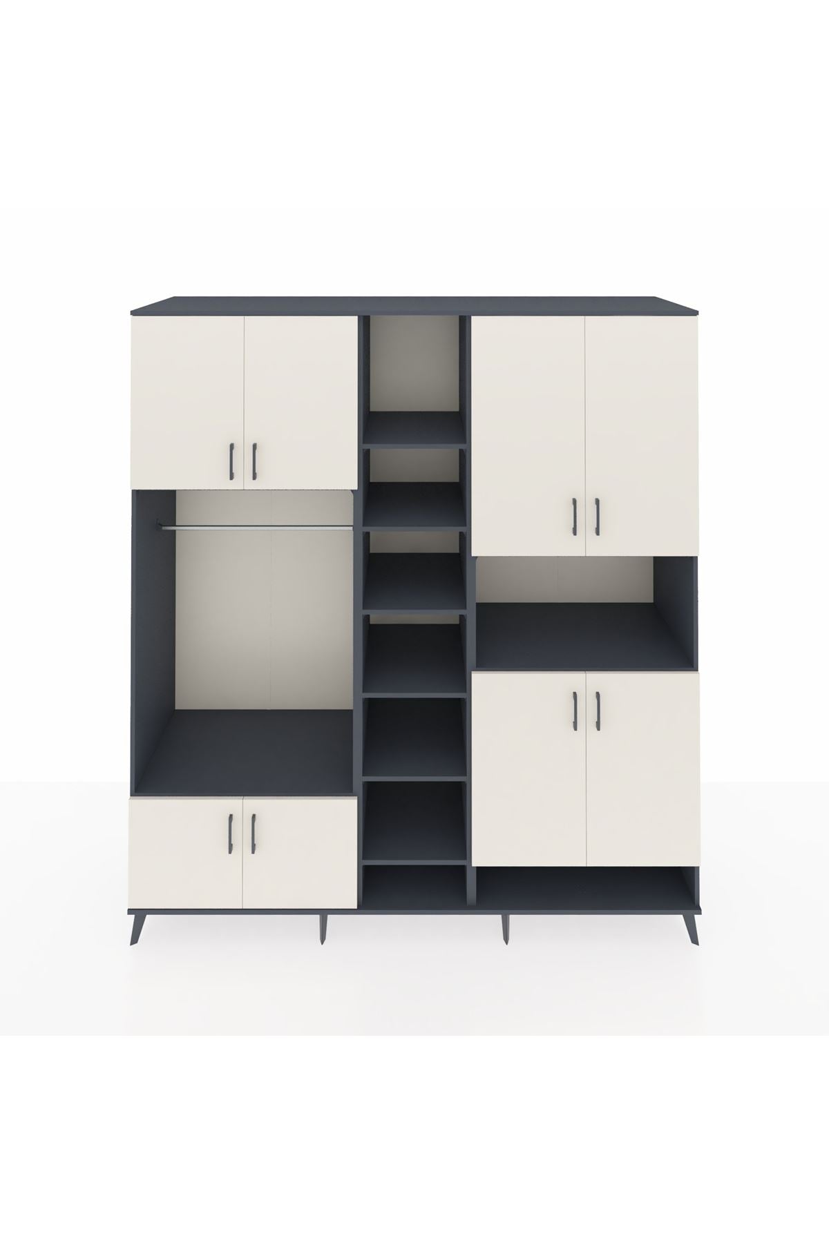 Kronos Dolap 18 Raflı 8 Kapaklı Tek Askılı 220x59x243 Antrasit-Aytaşı/Antrasit