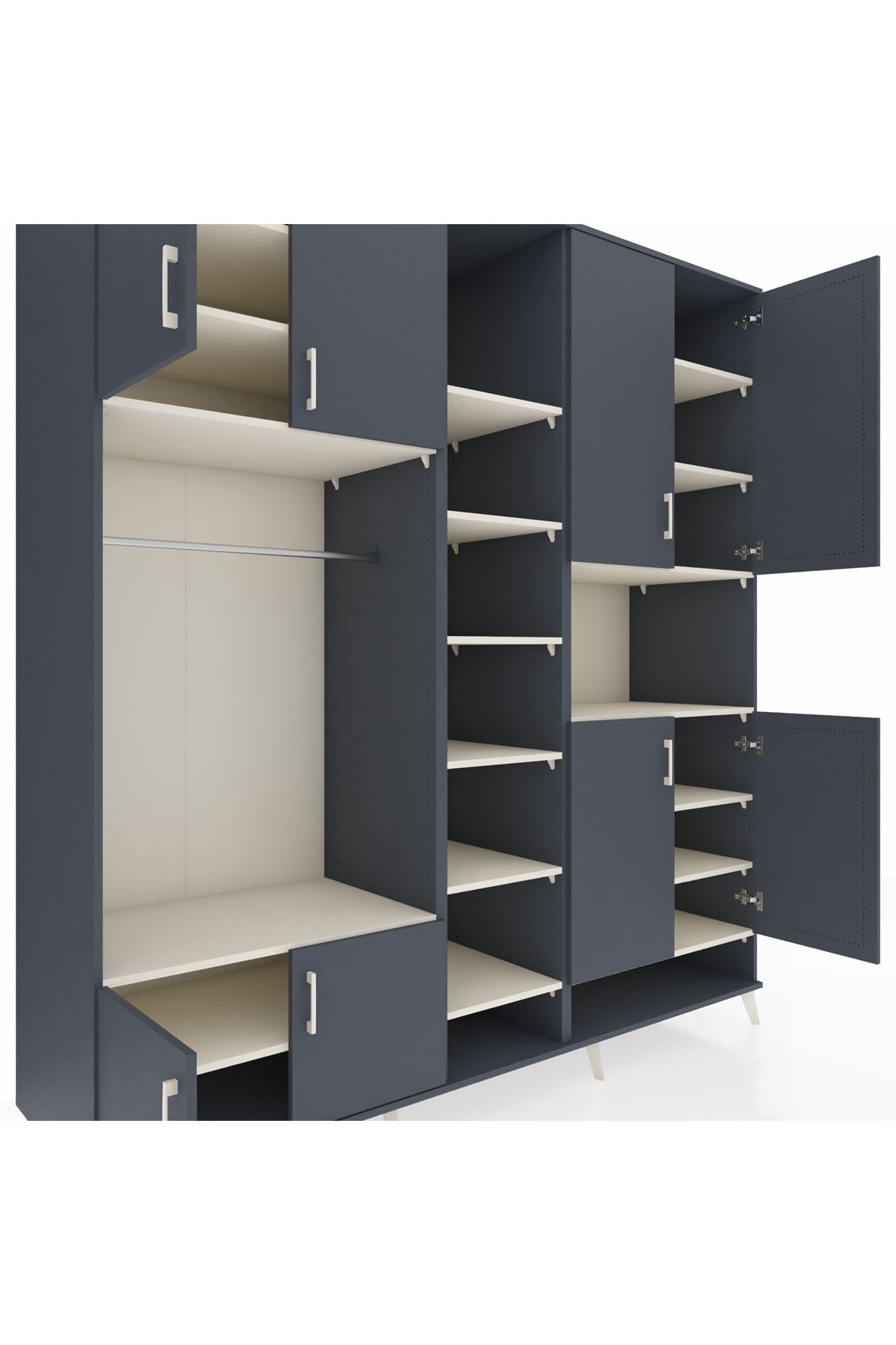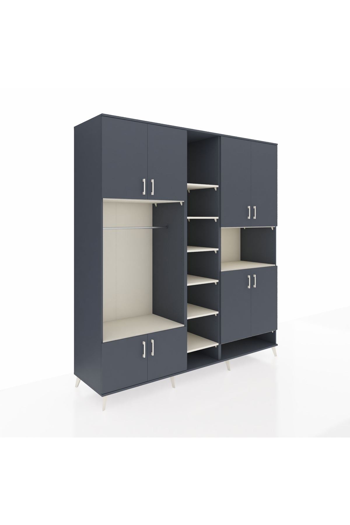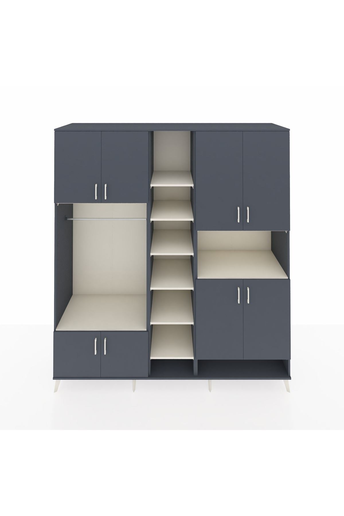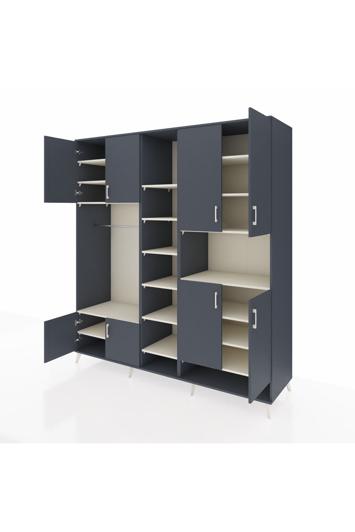 Kronos Dolap 18 Raflı 8 Kapaklı Tek Askılı 220x59x243 Aytaşı-Antrasit/Aytaşı