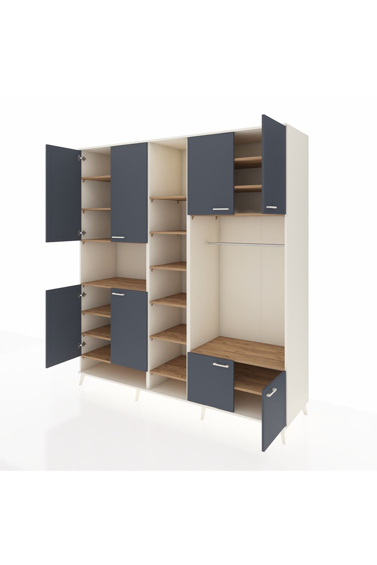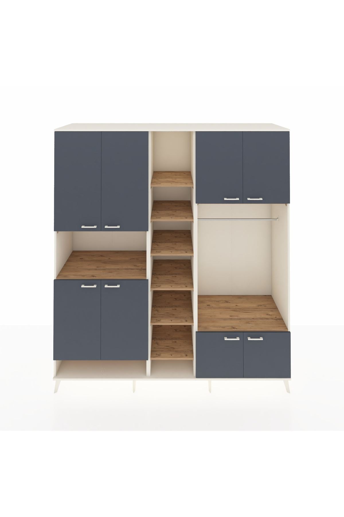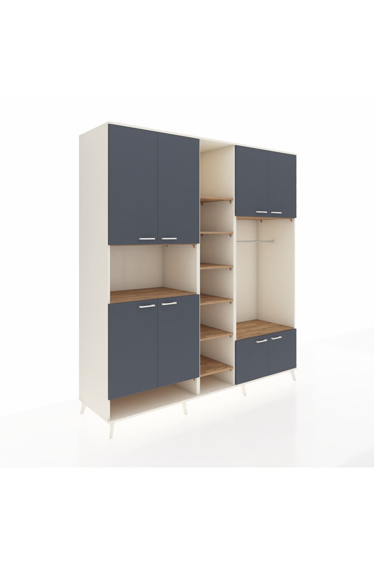 Kronos Dolap 18 Raflı 8 Kapaklı Tek Askılı 220x59x243 Aytaşı-Antrasit/Çam