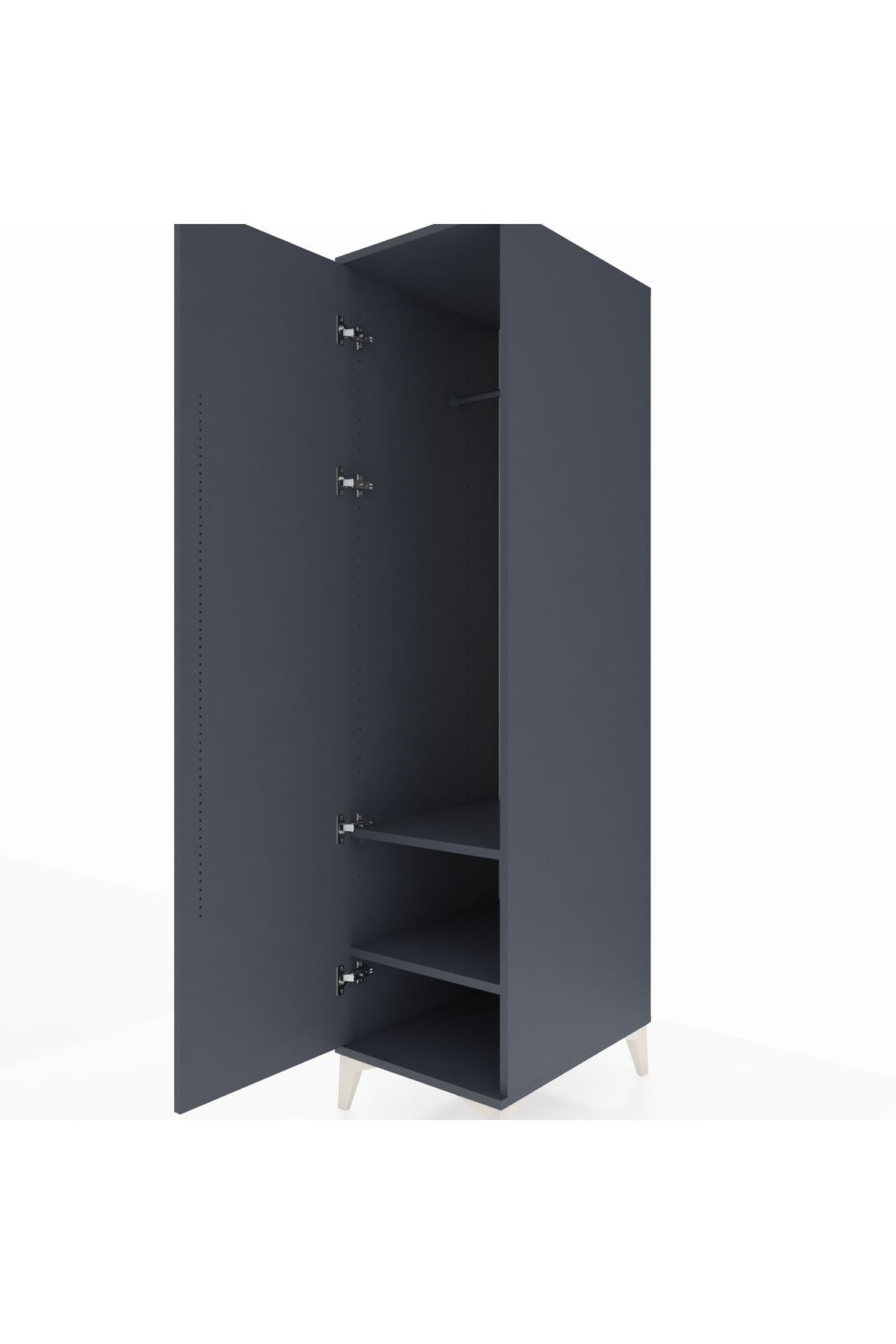 Kronos Dolap 2 Raflı Tek Kapaklı Tek Askılı 44x59x182 Antrasit-Antrasit