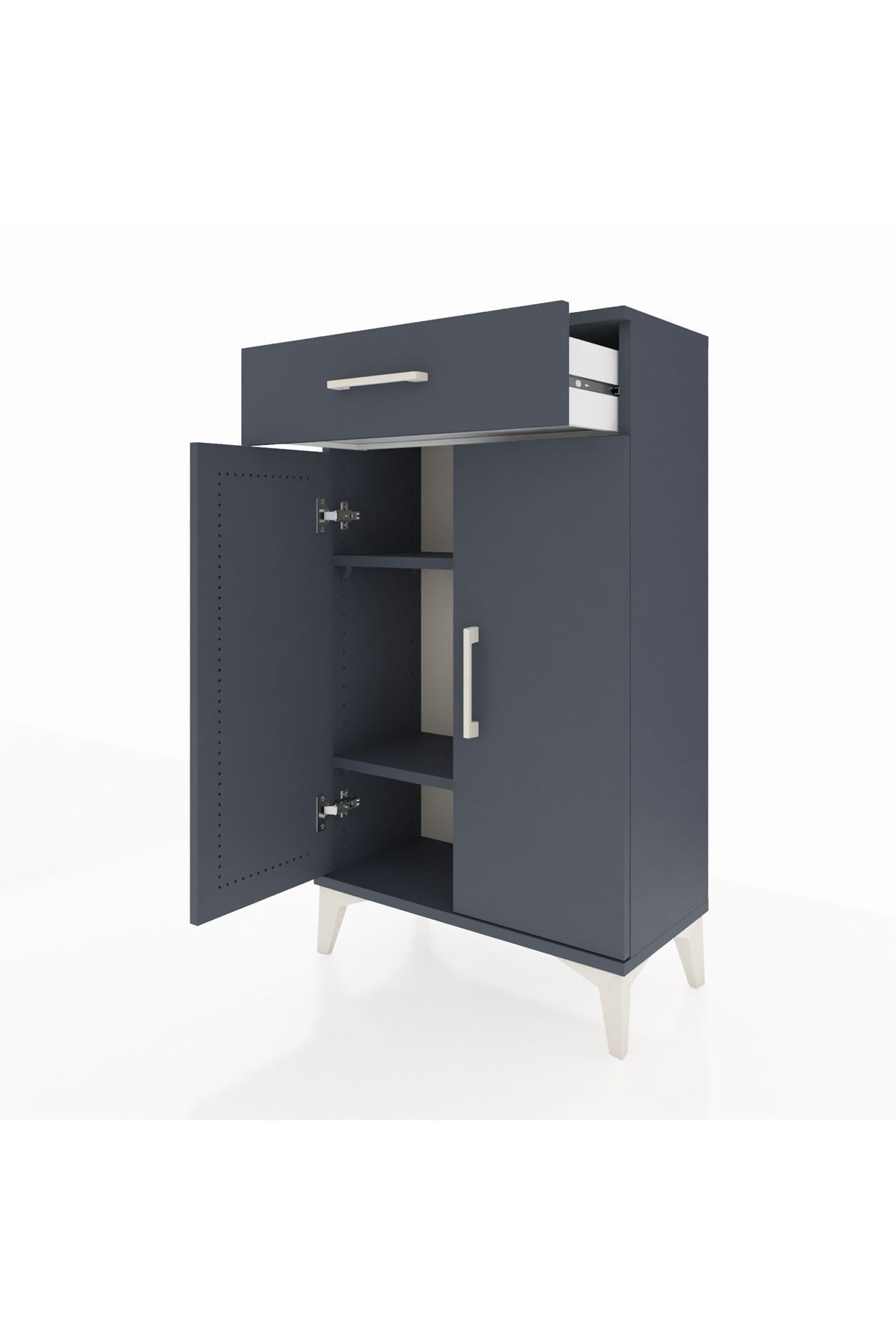 Arges Komodin 2 Raflı Tek Çekmeceli 2 Kapaklı 60x30x106 Antrasit-Antrasit