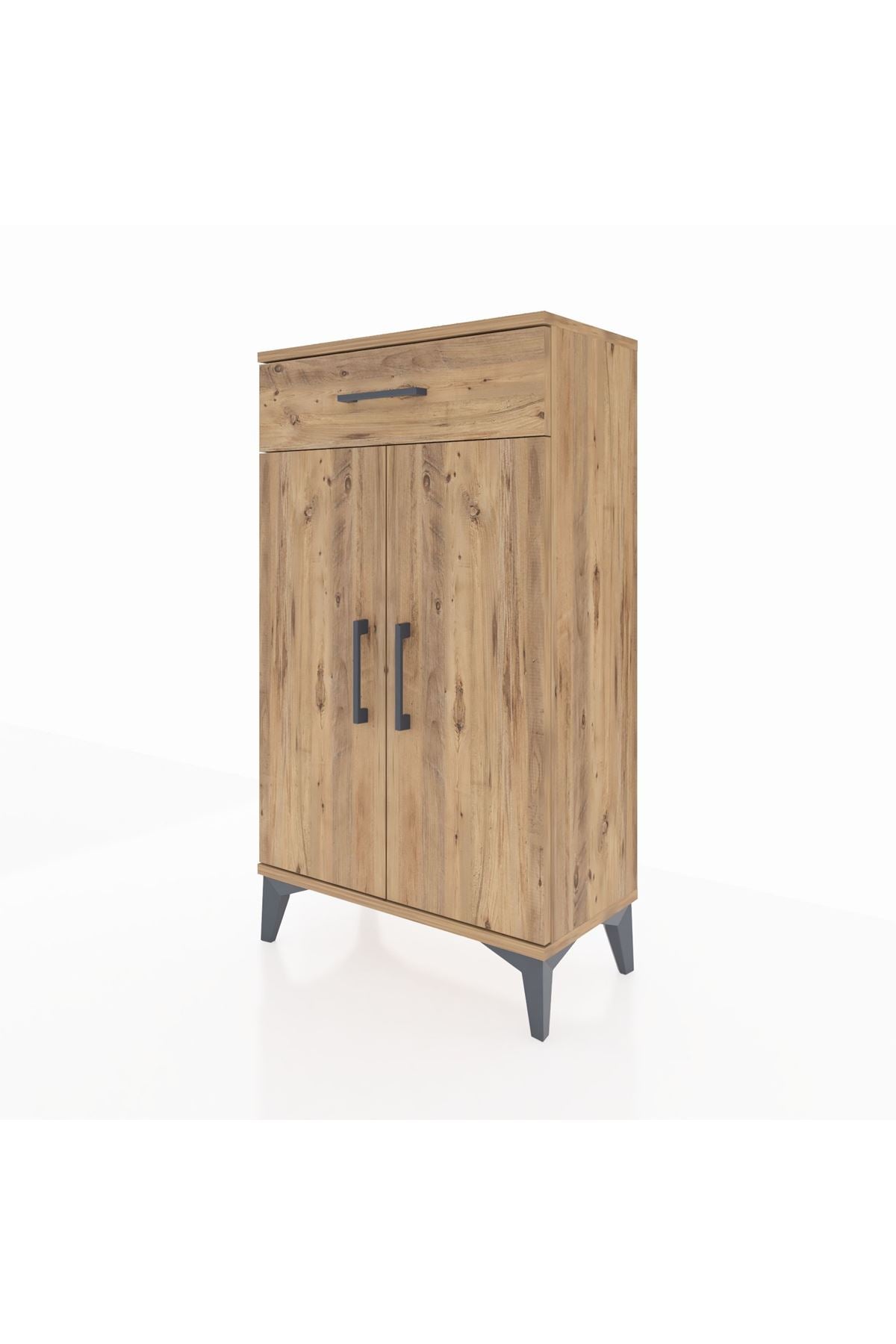 Arges Komodin 2 Raflı Tek Çekmeceli 2 Kapaklı 60x30x106 Çam-Çam
