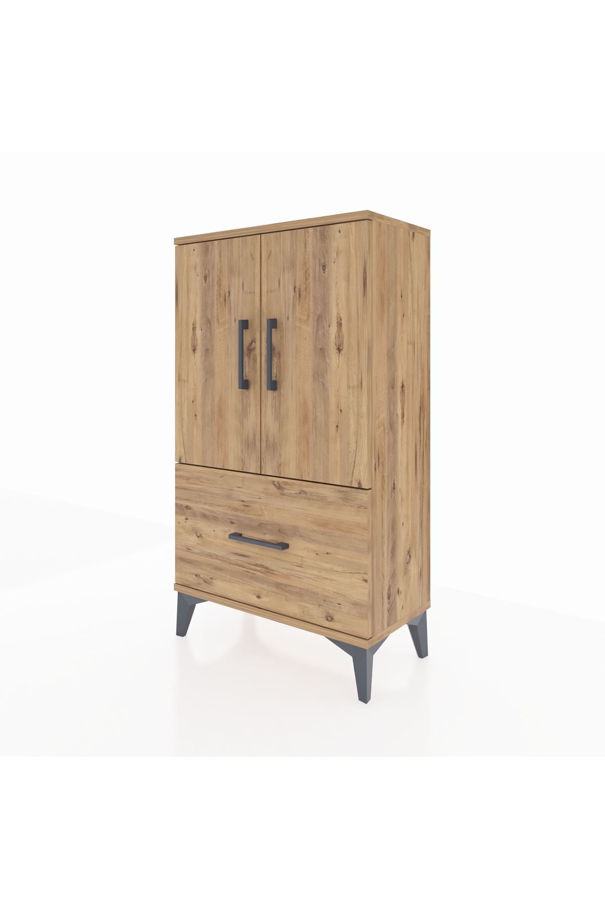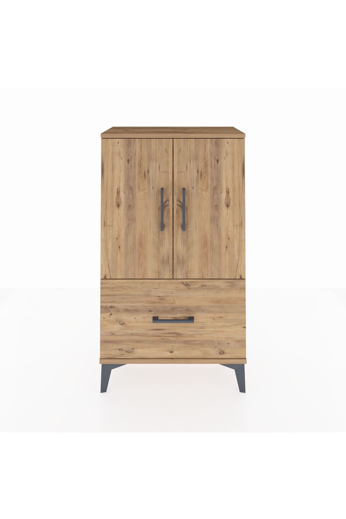 Arges Komodin 2 Raflı Tek Çekmeceli 2 Kapaklı 60x30x106 Çam-Çam