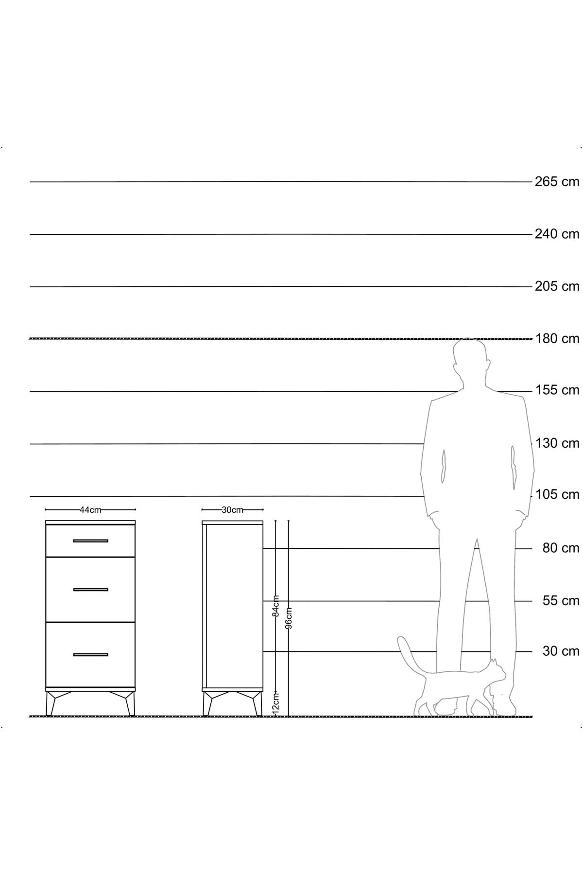 Arges Komodin 3 Çekmeceli 44x30x96 Çam-Aytaşı
