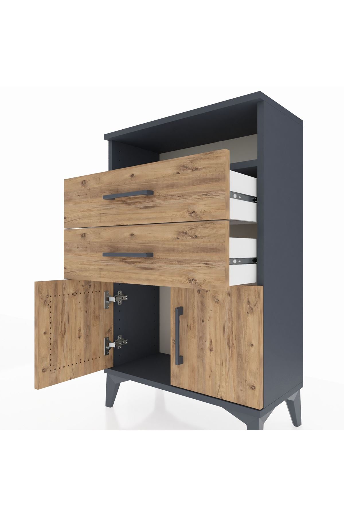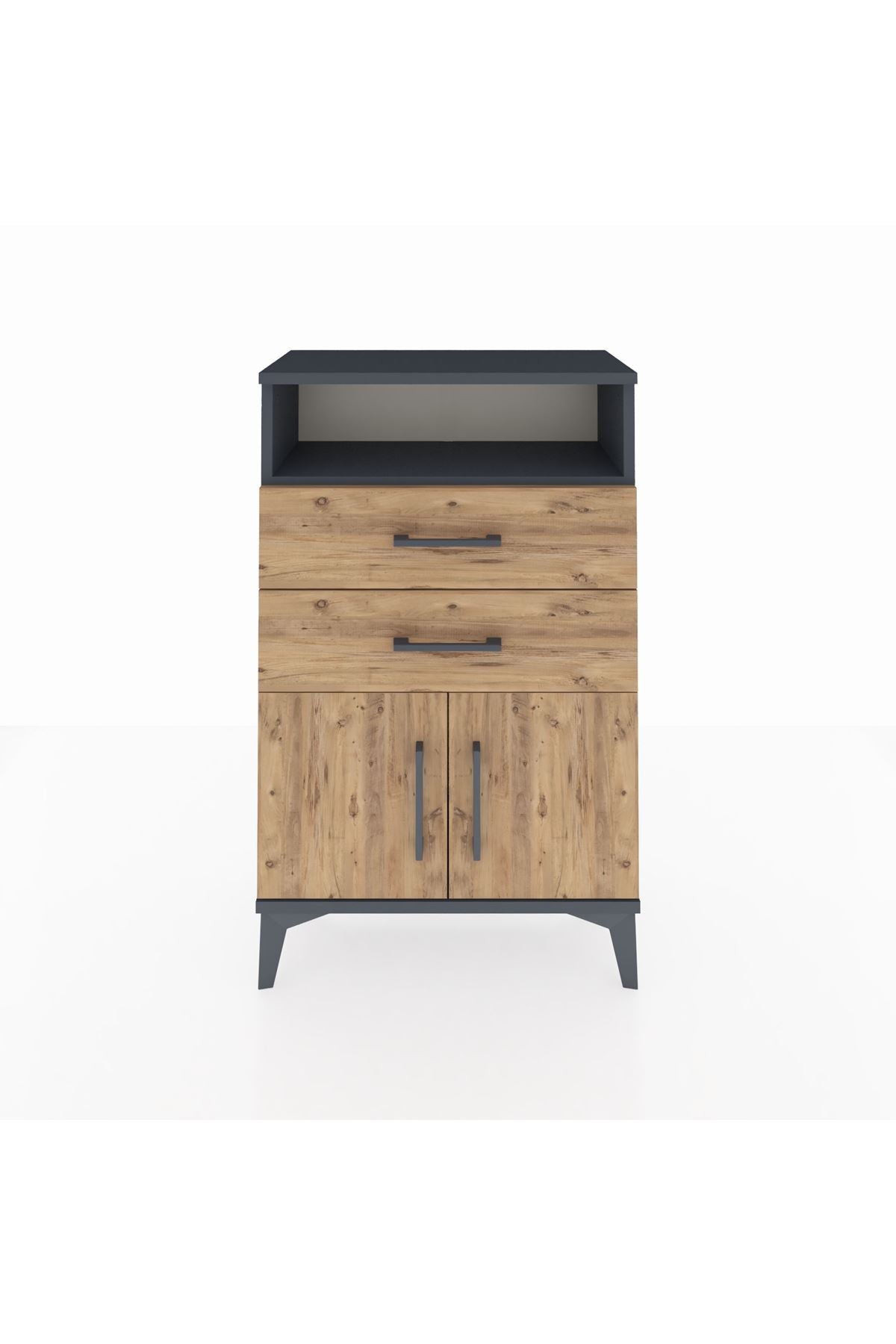 Arges Komodin Tek Raflı 2 Çekmeceli 2 Kapaklı 60x30x96 Antrasit-Çam