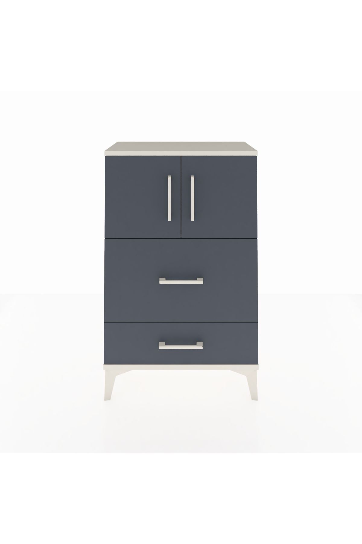 Arges Komodin Tek Raflı 2 Çekmeceli 2 Kapaklı 60x30x96 Aytaşı-Antrasit
