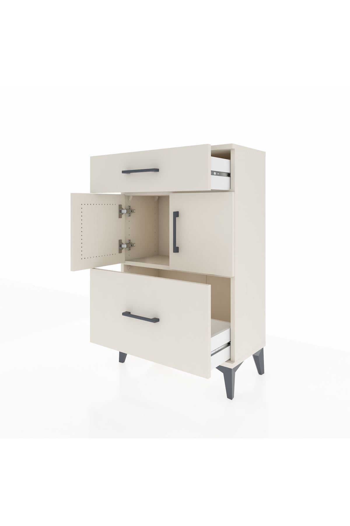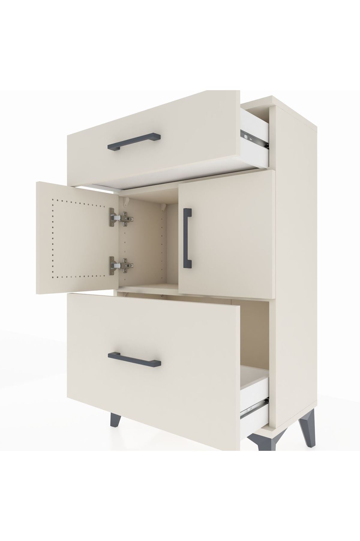 Arges Komodin Tek Raflı 2 Çekmeceli 2 Kapaklı 60x30x96 Aytaşı-Aytaşı