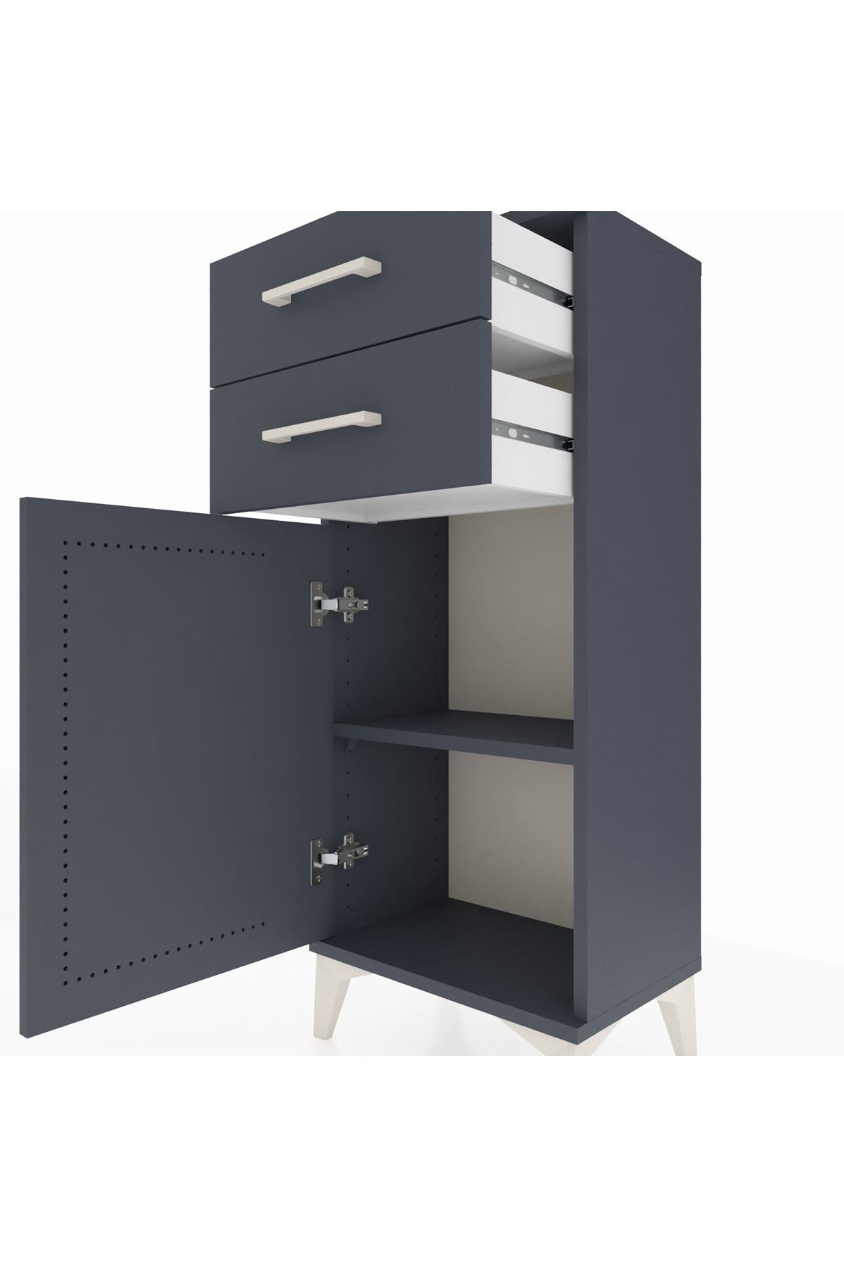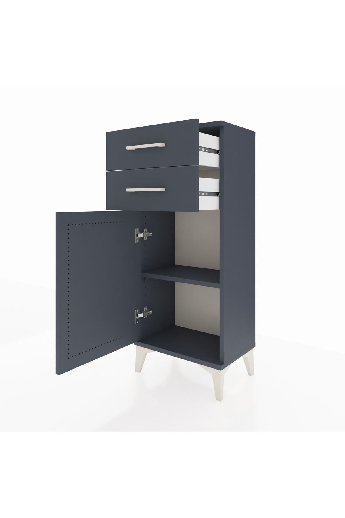 Arges Komodin Tek Raflı 2 Çekmeceli Tek Kapaklı 44x30x106 Antrasit-Antrasit
