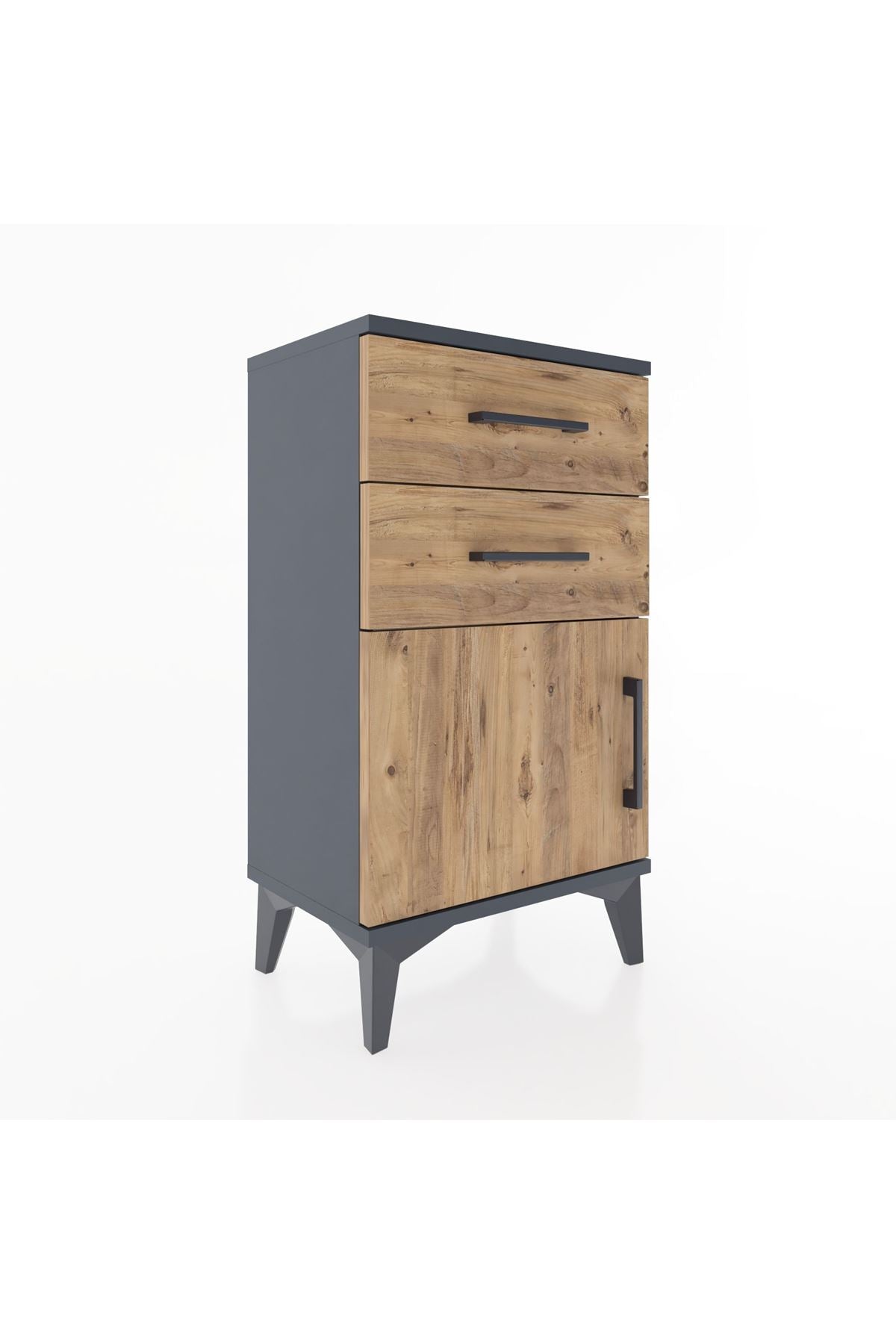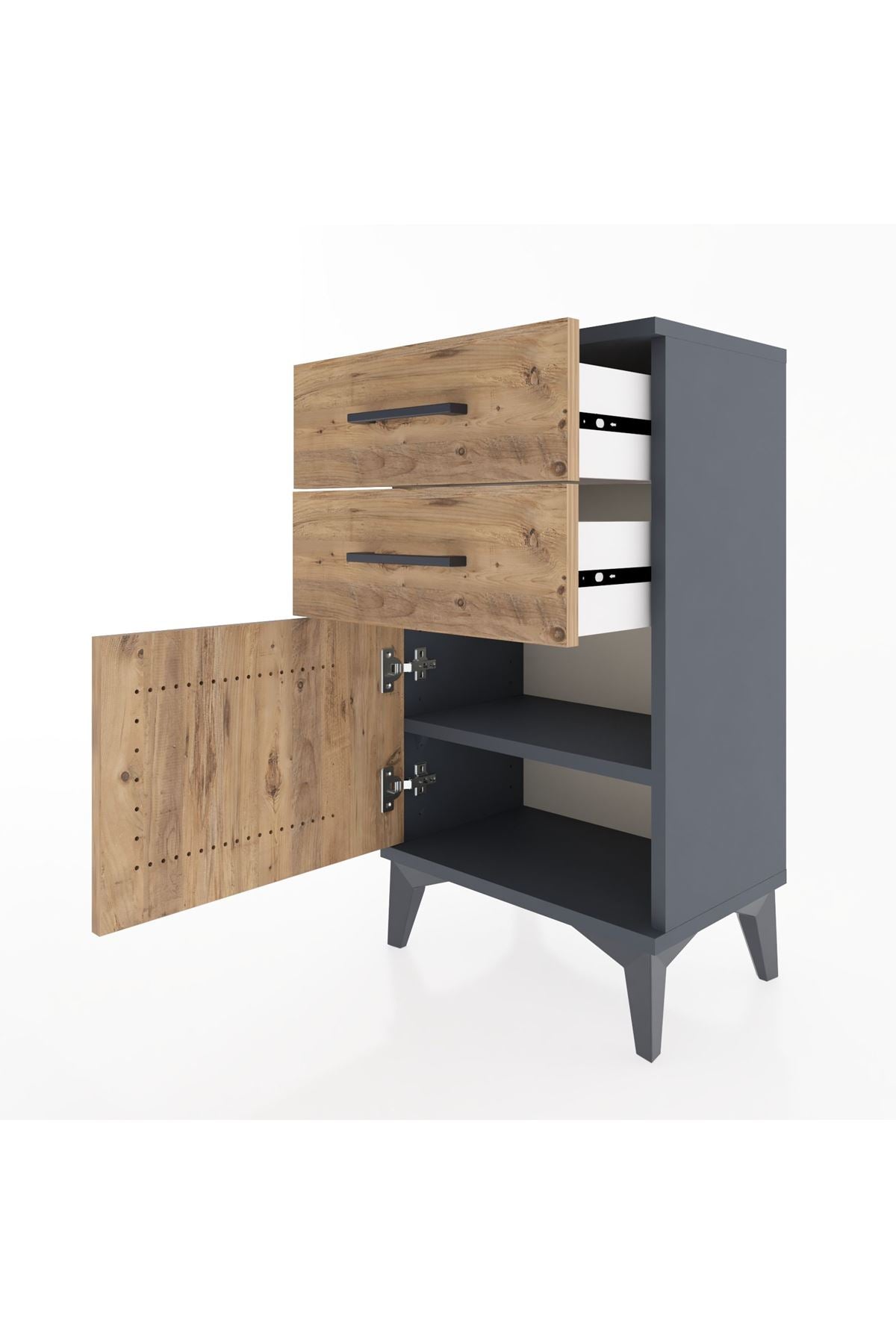 Arges Komodin Tek Raflı 2 Çekmeceli Tek Kapaklı 44x30x80 Antrasit-Çam