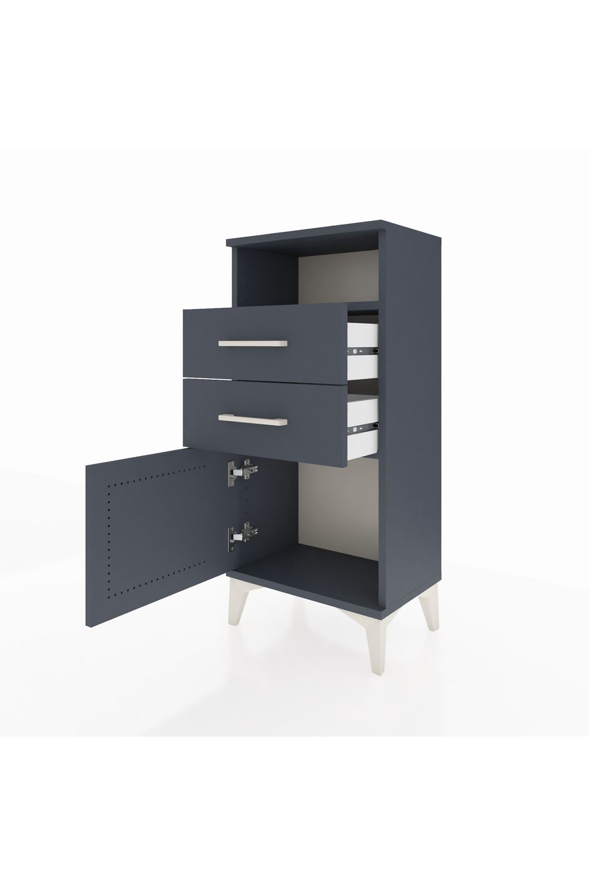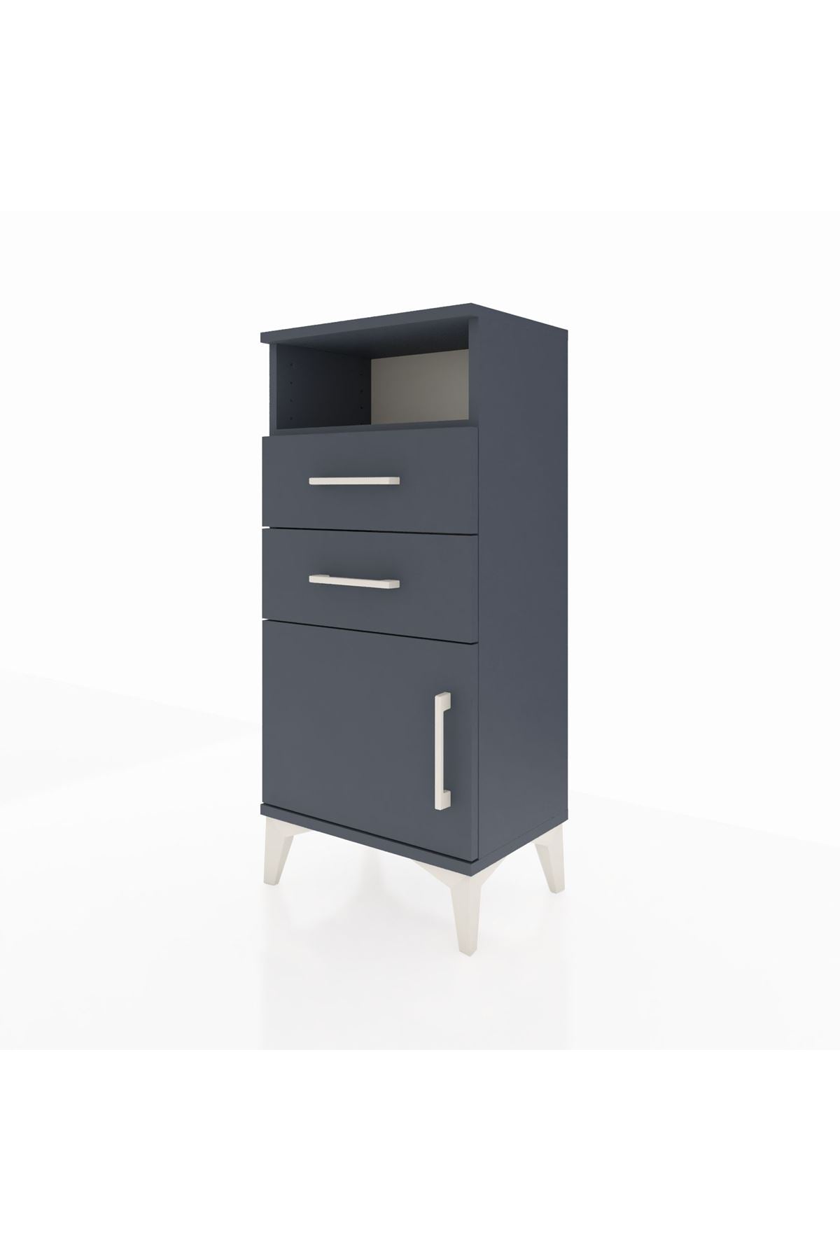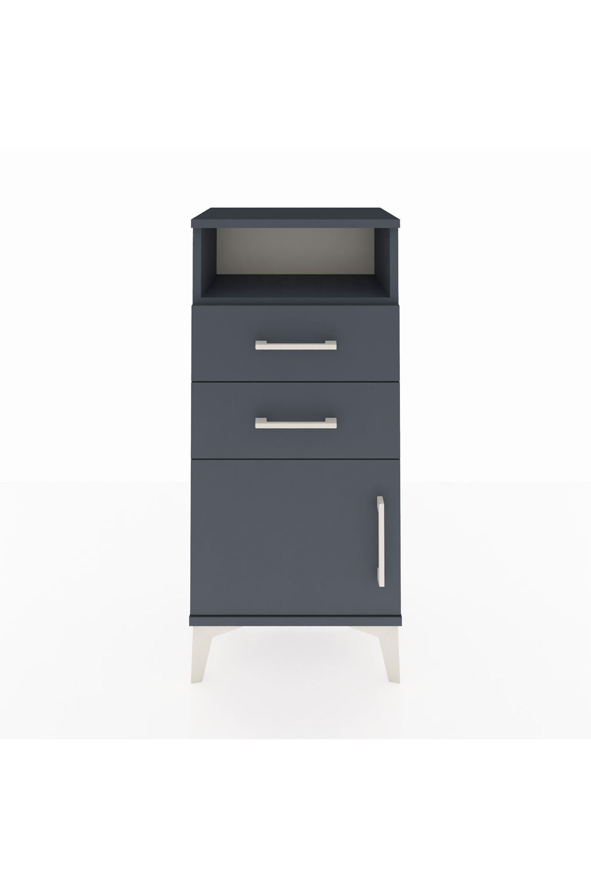 Arges Komodin Tek Raflı 2 Çekmeceli Tek Kapaklı 44x30x96 Antrasit-Antrasit