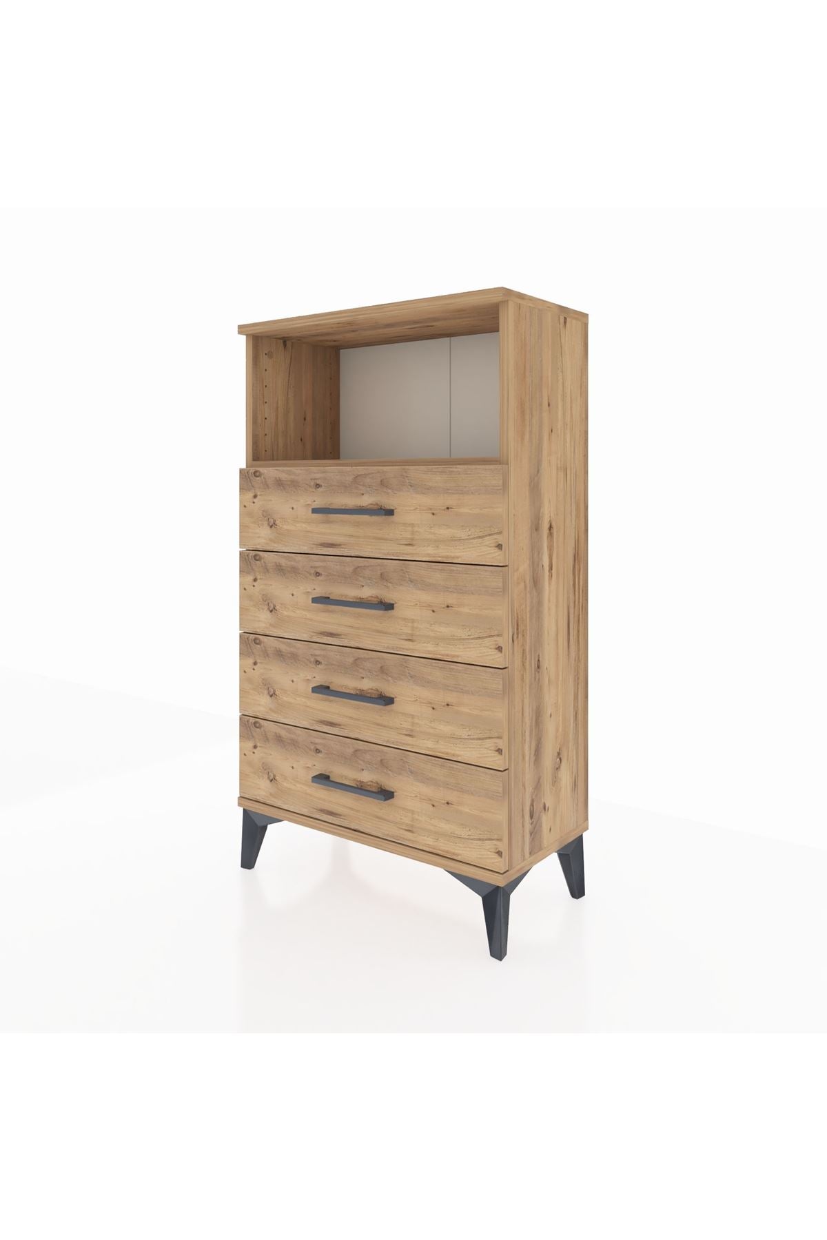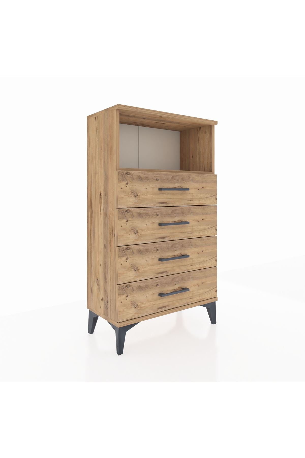 Arges Komodin Tek Raflı 4 Çekmeceli 60x30x106 Çam-Çam