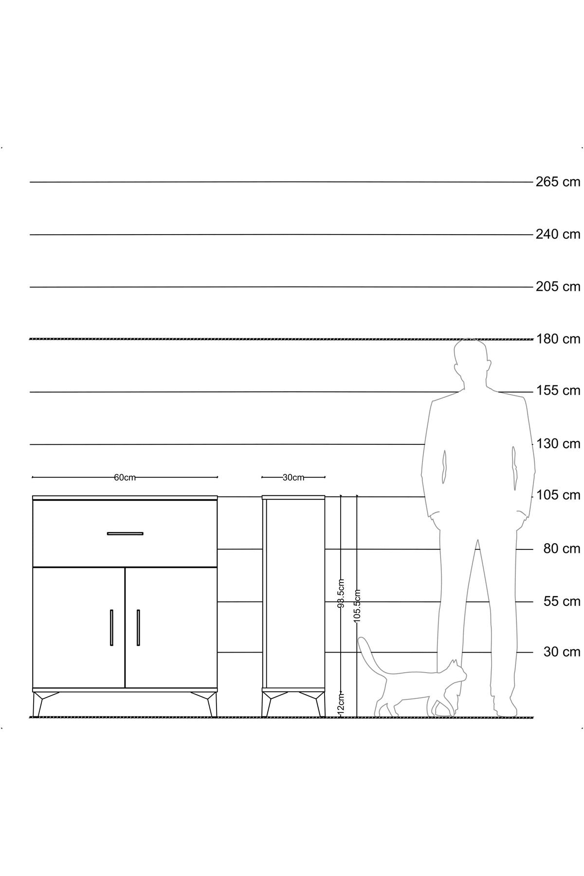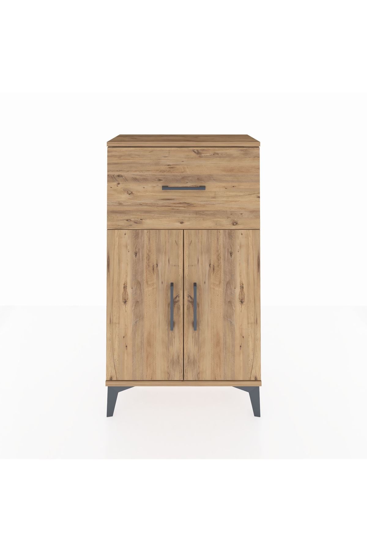 Arges Komodin Tek Raflı Tek Çekmeceli 2 Kapaklı 60x30x106 Çam-Çam