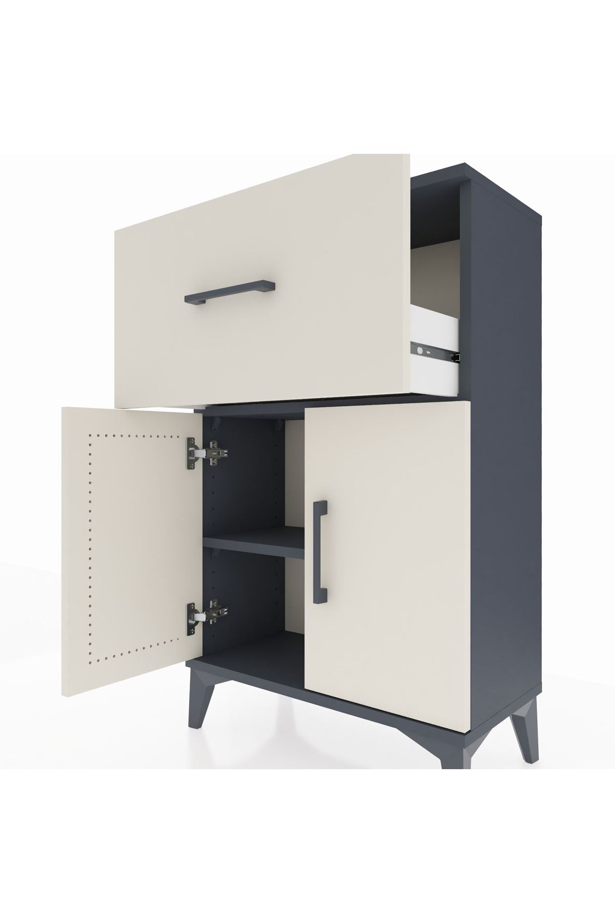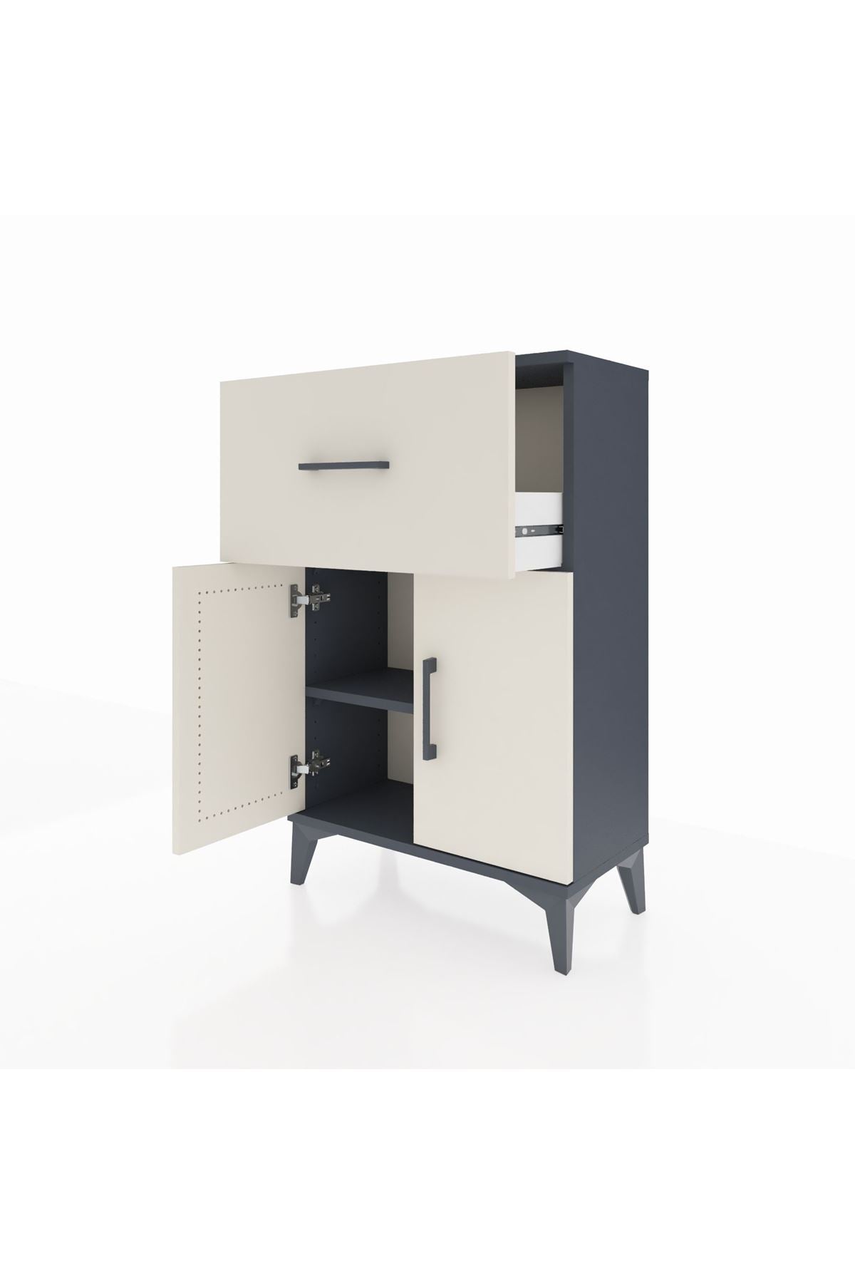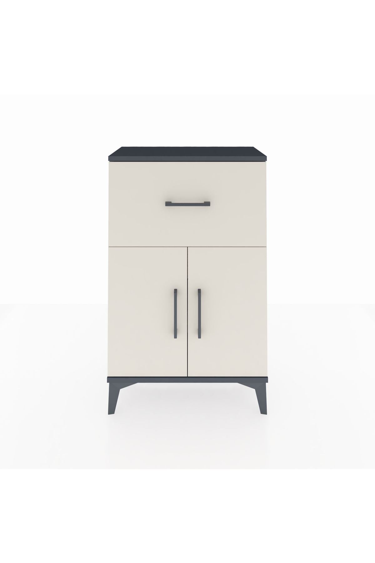 Arges Komodin Tek Raflı Tek Çekmeceli 2 Kapaklı 60x30x96 Antrasit-Aytaşı