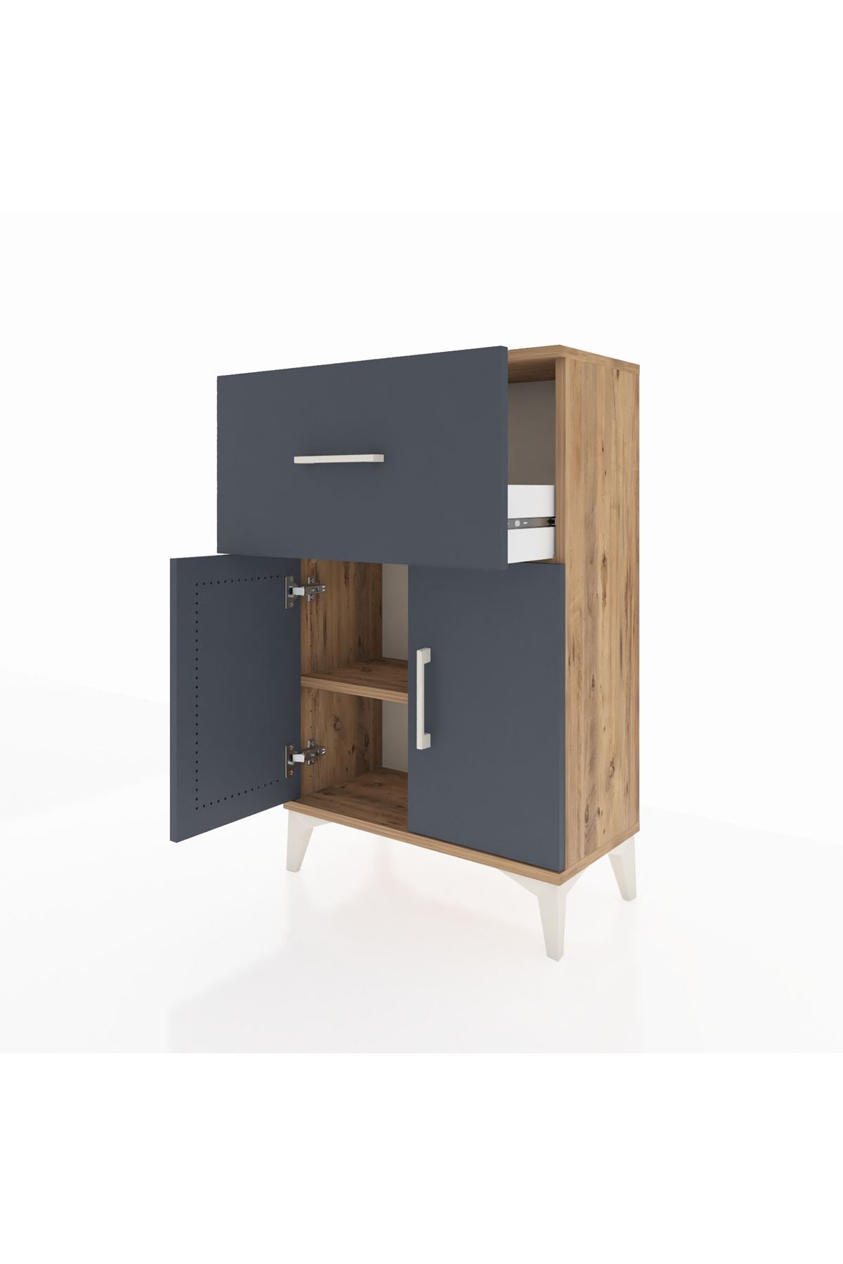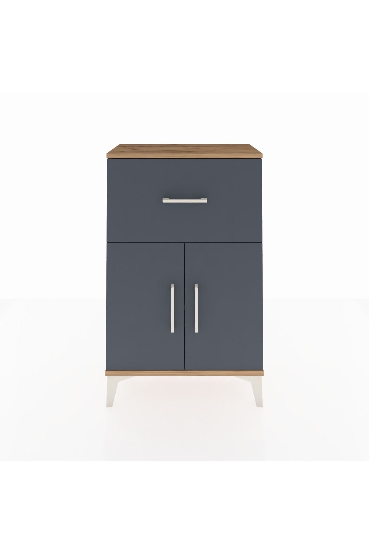 Arges Komodin Tek Raflı Tek Çekmeceli 2 Kapaklı 60x30x96 Çam-Antrasit