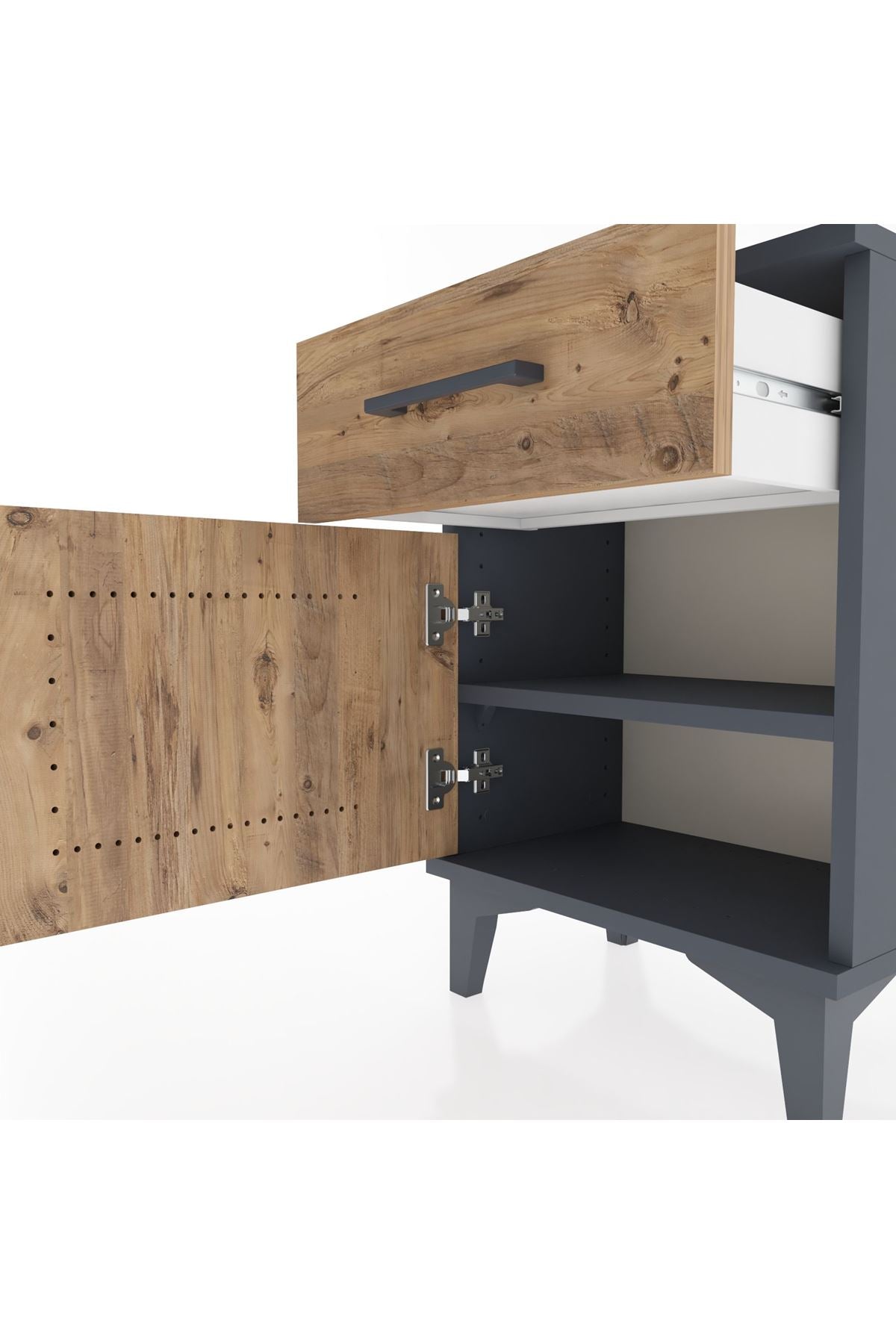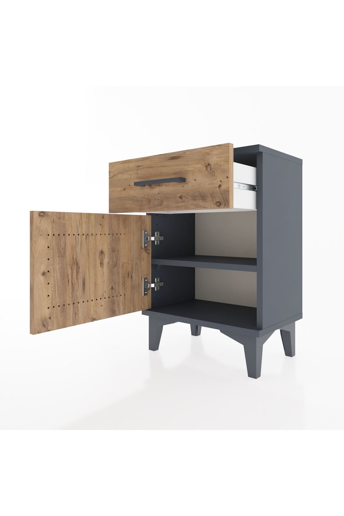Arges Komodin Tek Raflı Tek Kapaklı 44x30x64 Antrasit-Çam
