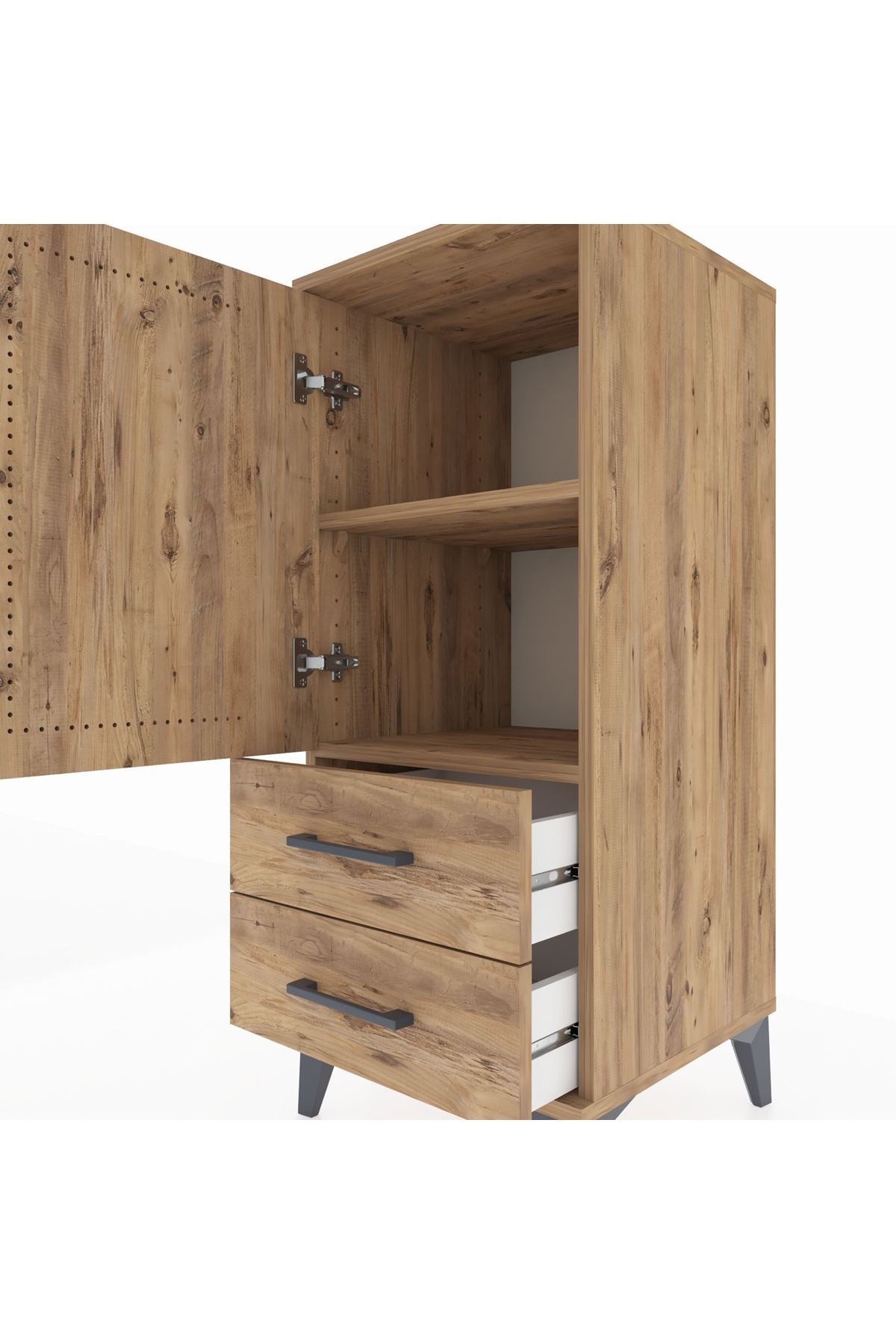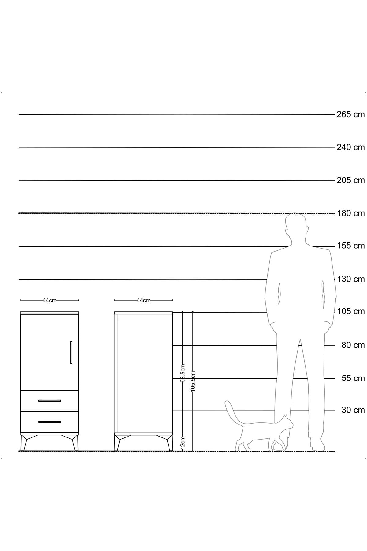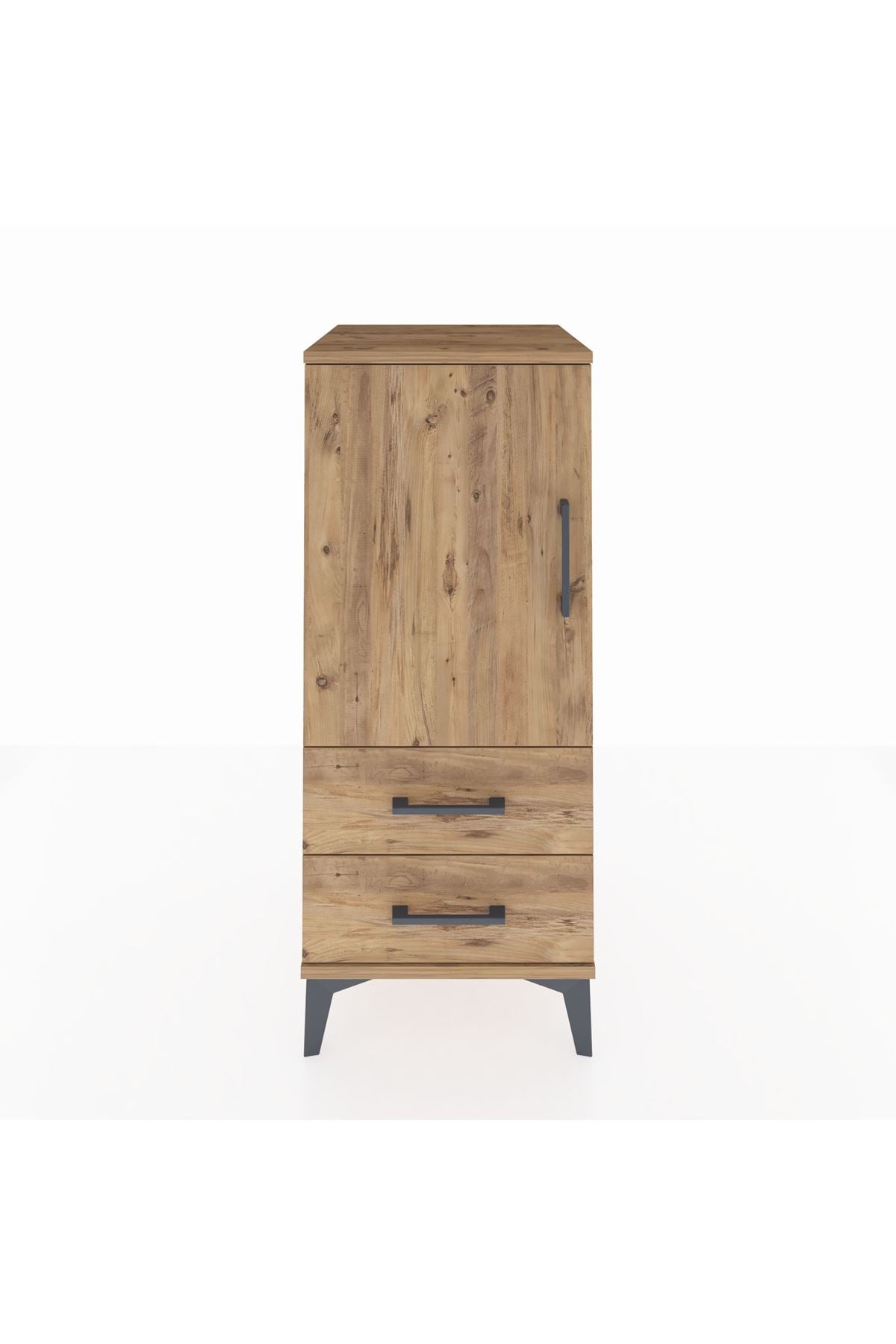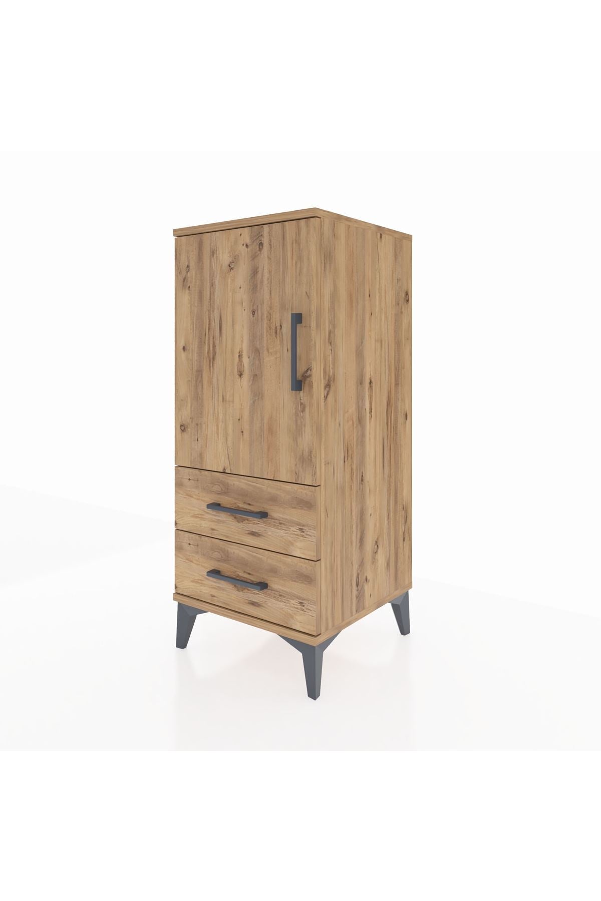 Hyperion Komodin 2 Raflı 2 Çekmeceli Tek Kapaklı 44x44x106 Çam-Çam