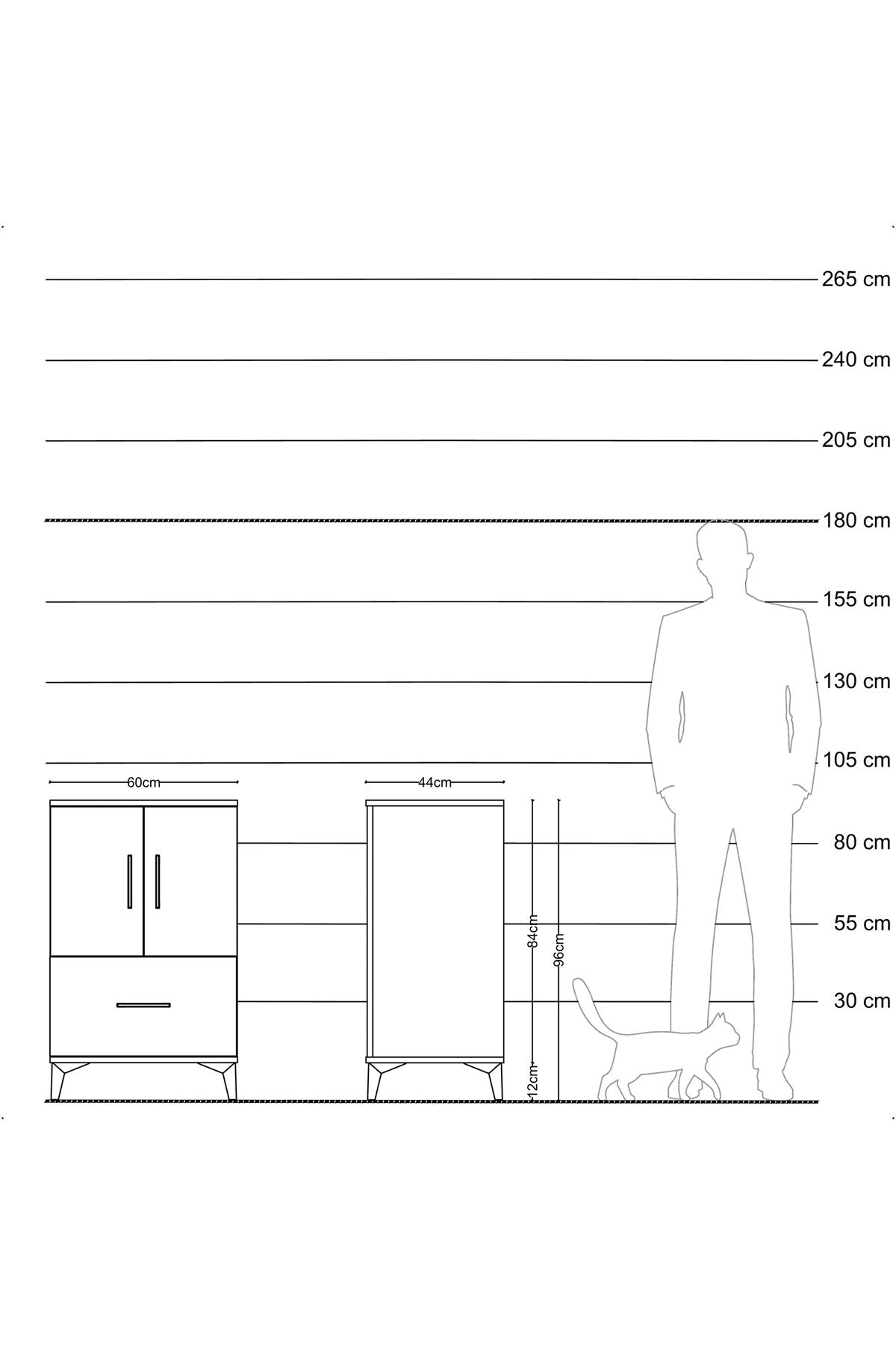Hyperion Komodin 2 Raflı Tek Çekmeceli 2 Kapaklı 60x44x96 Aytaşı-Antrasit