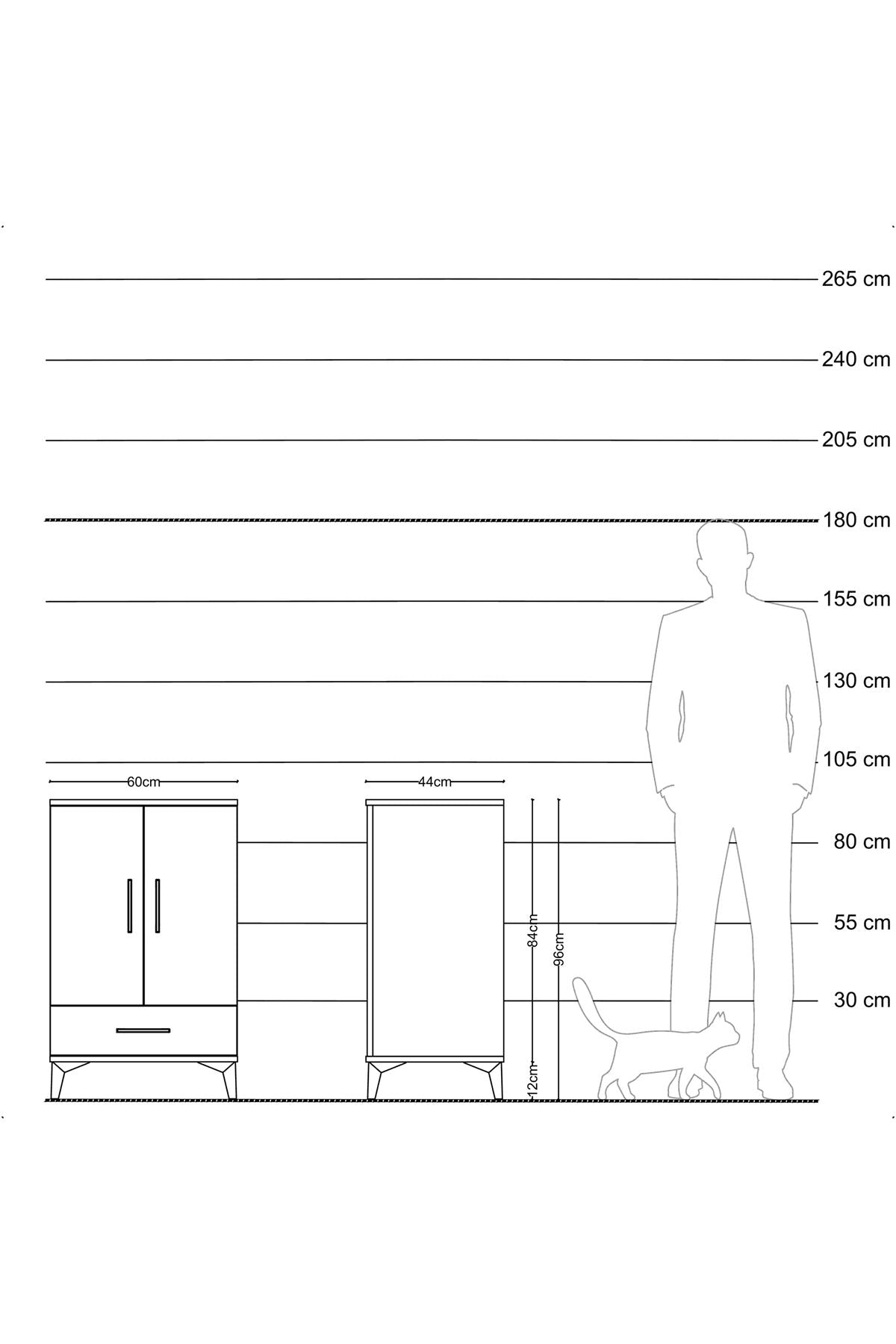 Hyperion Komodin 3 Raflı Tek Çekmeceli 2 Kapaklı 60x44x96 Antrasit-Antrasit