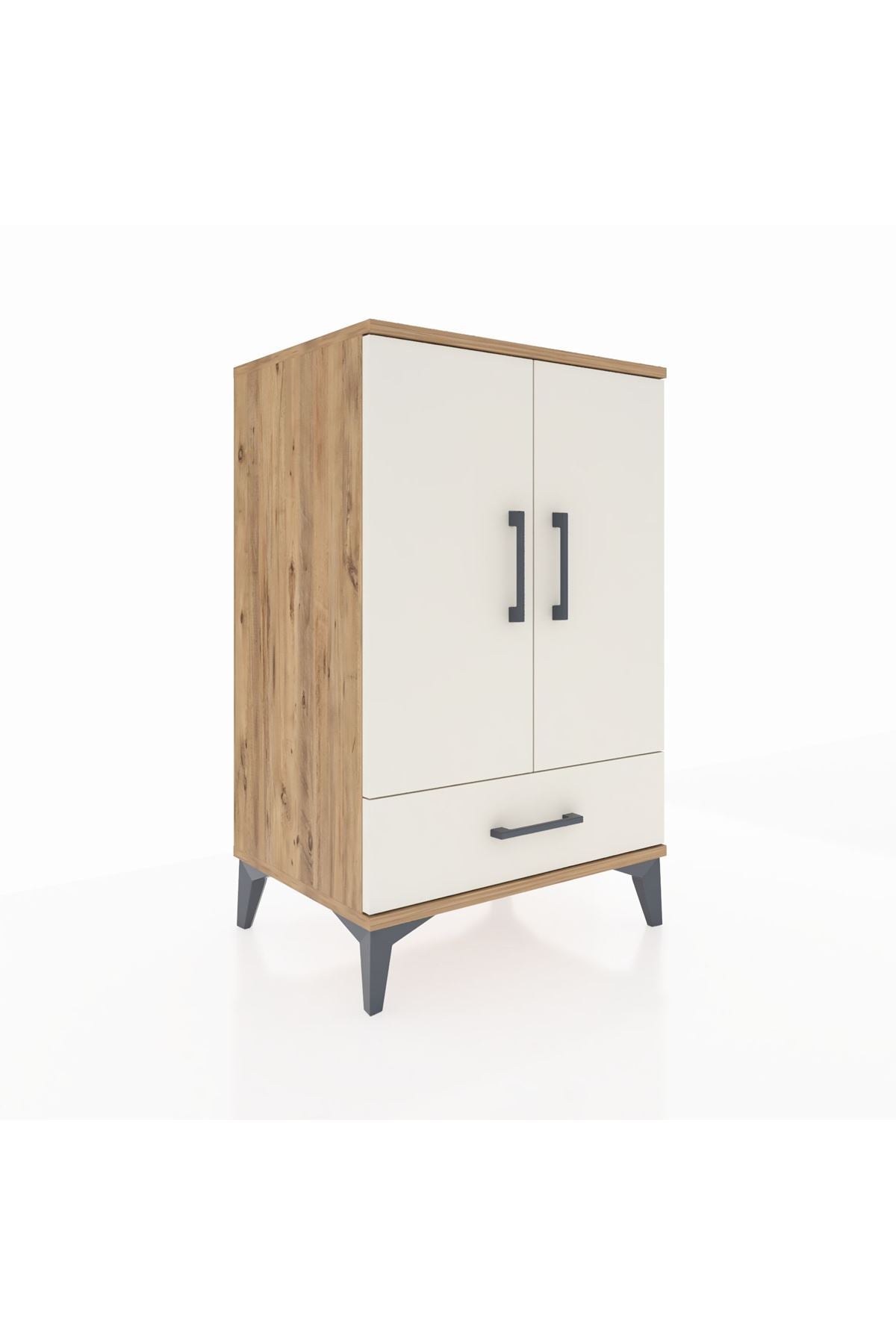 Hyperion Komodin 3 Raflı Tek Çekmeceli 2 Kapaklı 60x44x96 Çam-Aytaşı