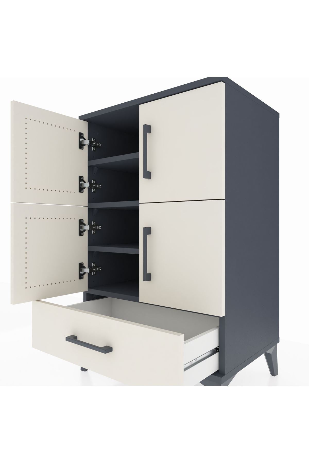 Hyperion Komodin 4 Raflı Tek Çekmeceli 4 Kapaklı 60x44x96 Antrasit-Aytaşı
