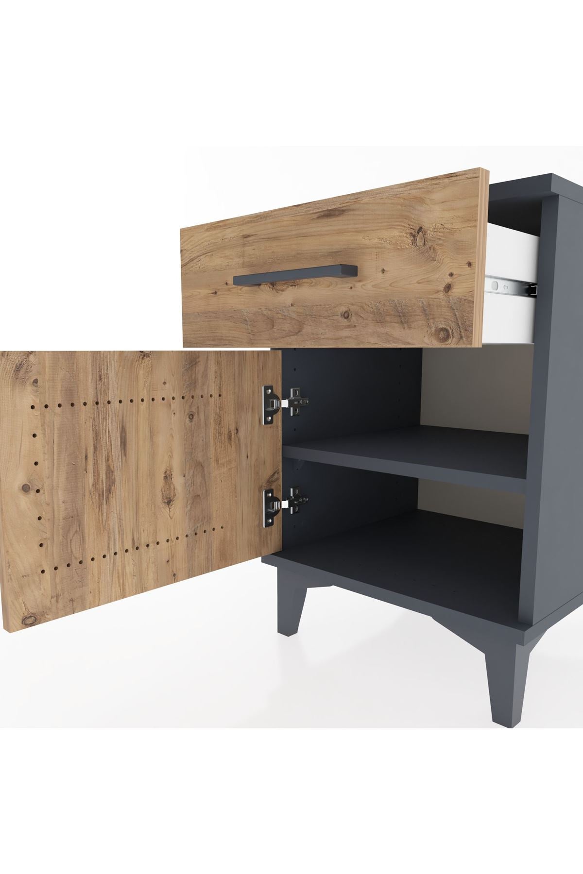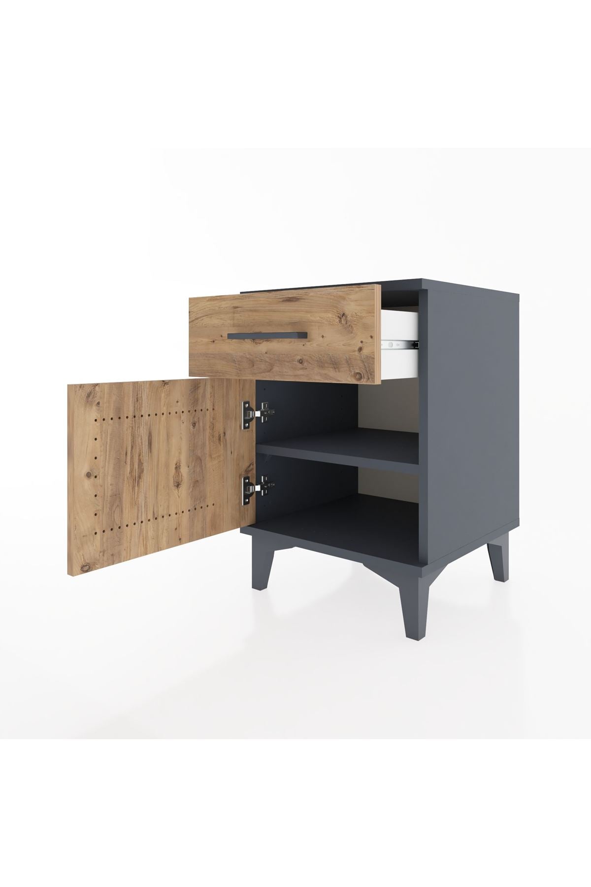 Hyperion Komodin Tek Çekmeceli Tek Kapaklı 44x44x64 Antrasit-Çam
