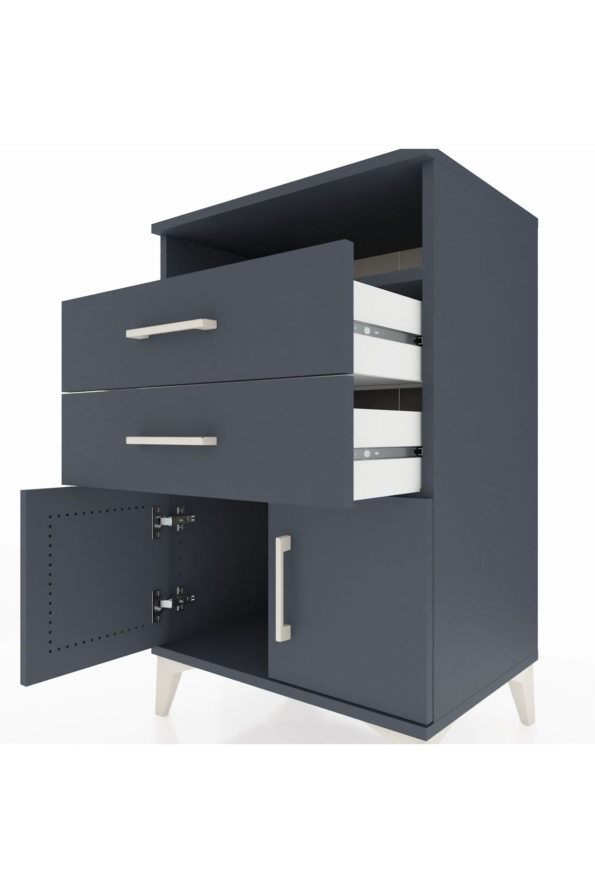 Hyperion Komodin Tek Raflı 2 Çekmeceli 2 Kapaklı 60x44x96 Antrasit-Antrasit