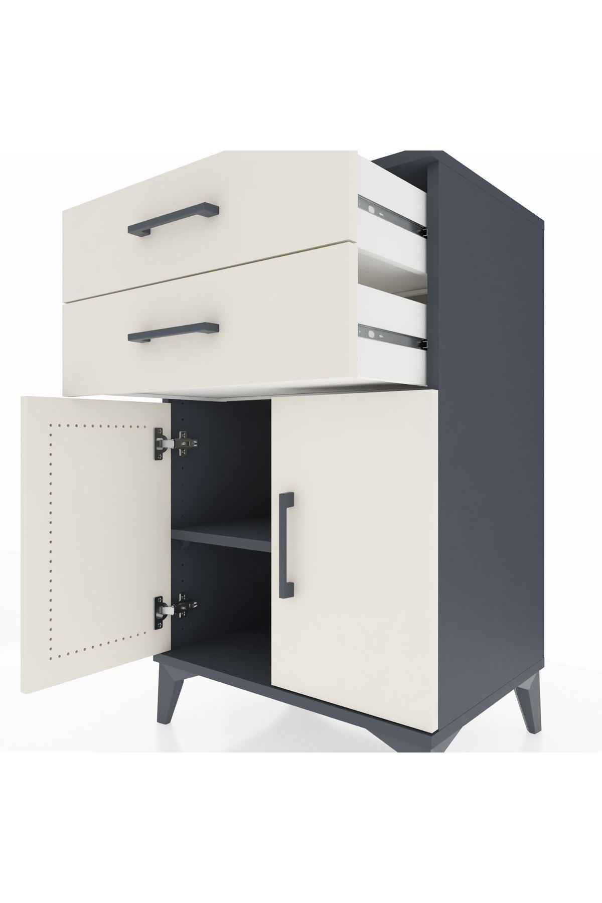 Hyperion Komodin Tek Raflı 2 Çekmeceli 2 Kapaklı 60x44x96 Antrasit-Aytaşı