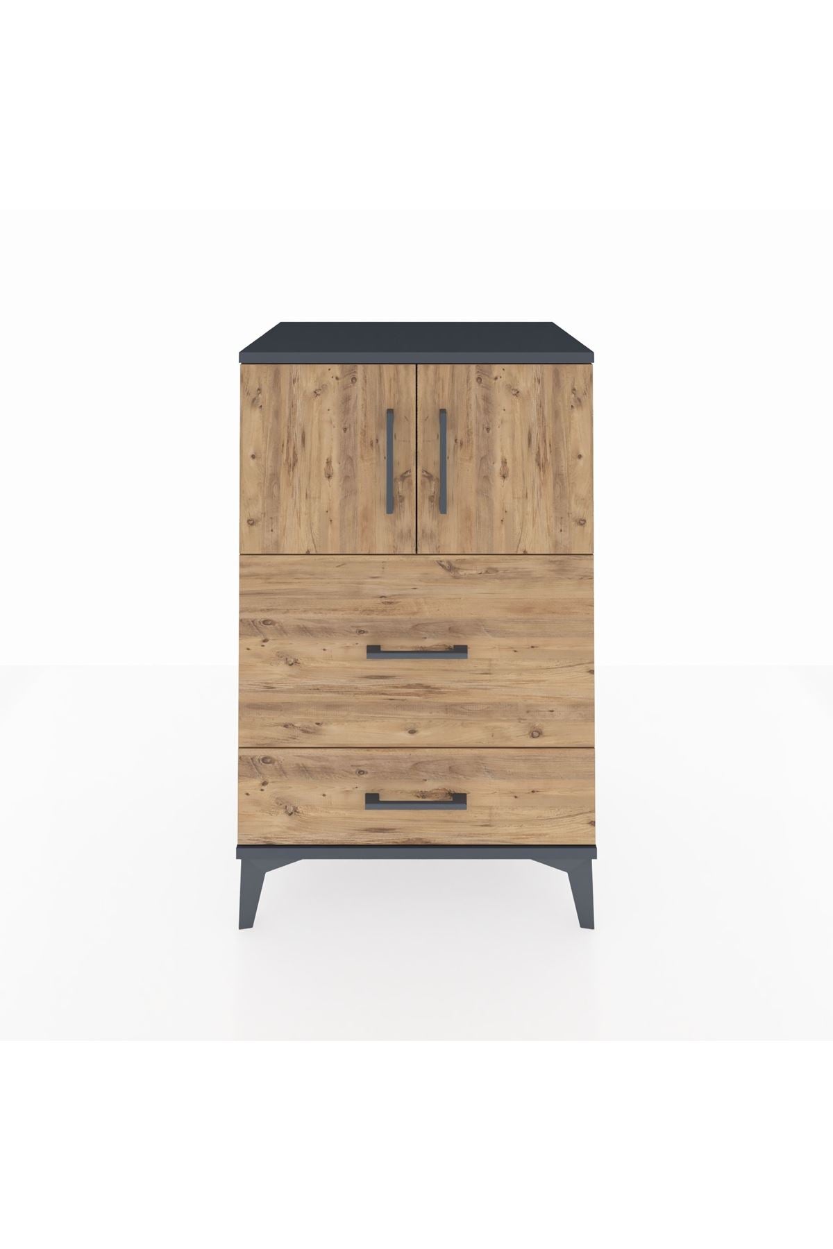 Hyperion Komodin Tek Raflı 2 Çekmeceli 2 Kapaklı 60x44x96 Antrasit-Çam