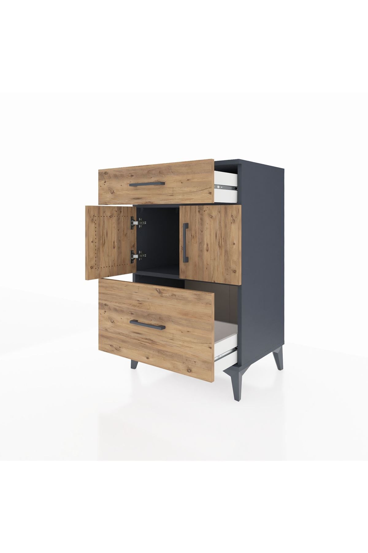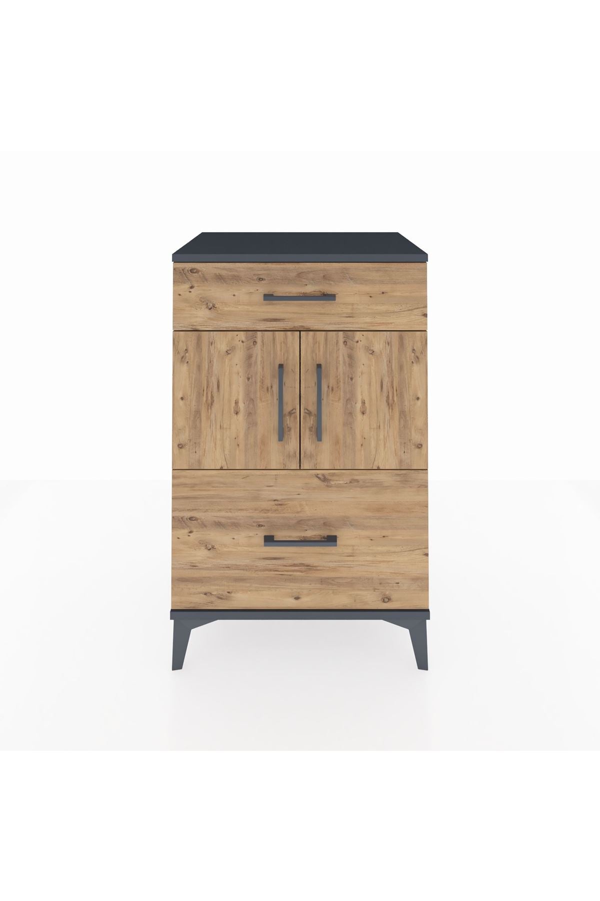 Hyperion Komodin Tek Raflı 2 Çekmeceli 2 Kapaklı 60x44x96 Antrasit-Çam