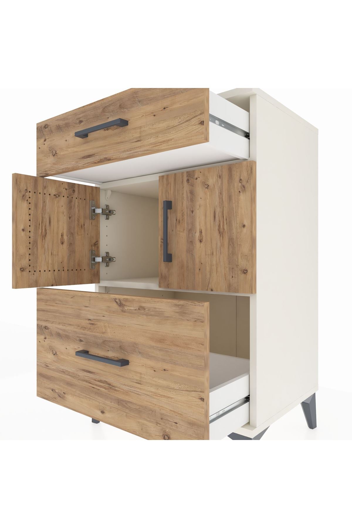 Hyperion Komodin Tek Raflı 2 Çekmeceli 2 Kapaklı 60x44x96 Aytaşı-Çam