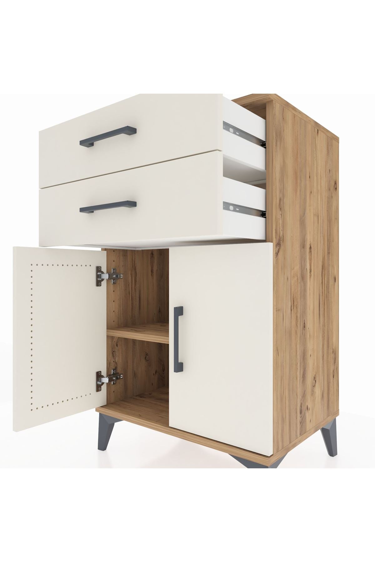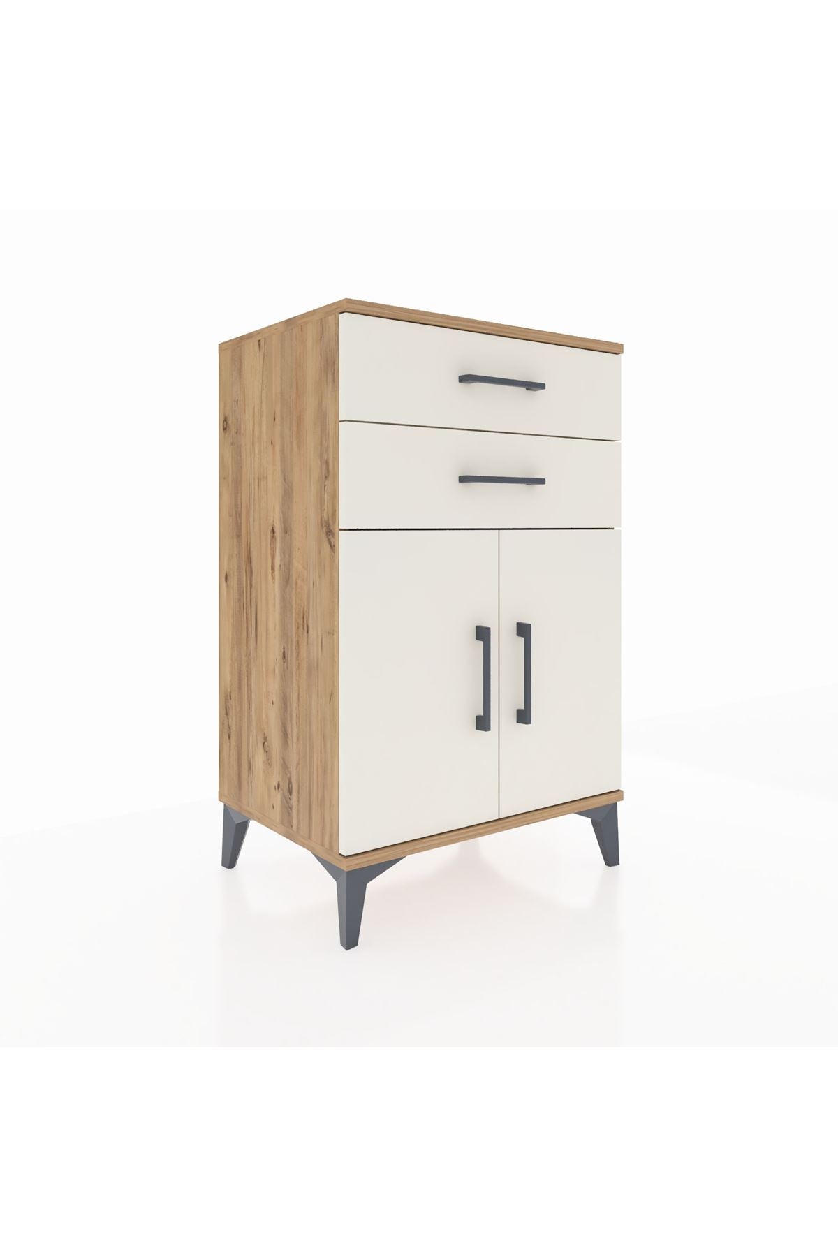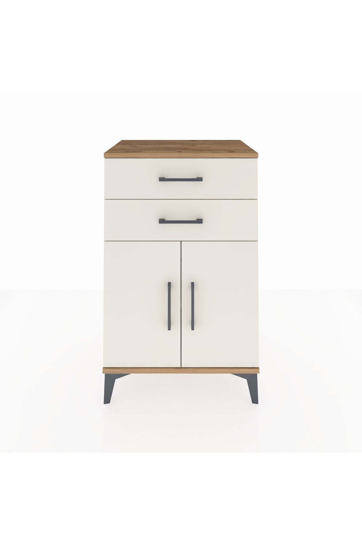 Hyperion Komodin Tek Raflı 2 Çekmeceli 2 Kapaklı 60x44x96 Çam-Aytaşı