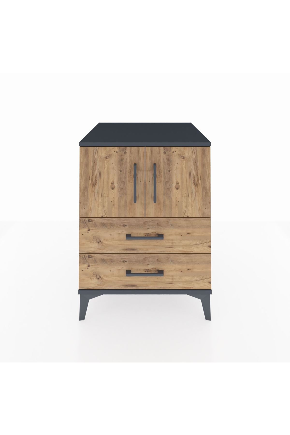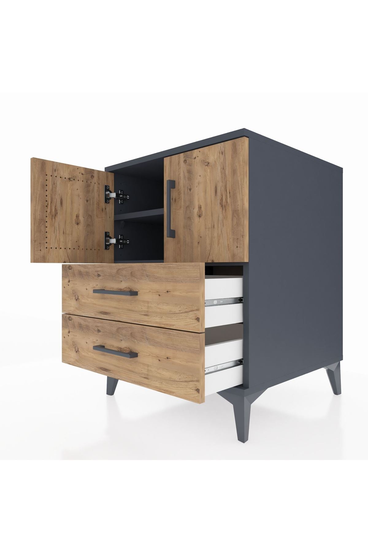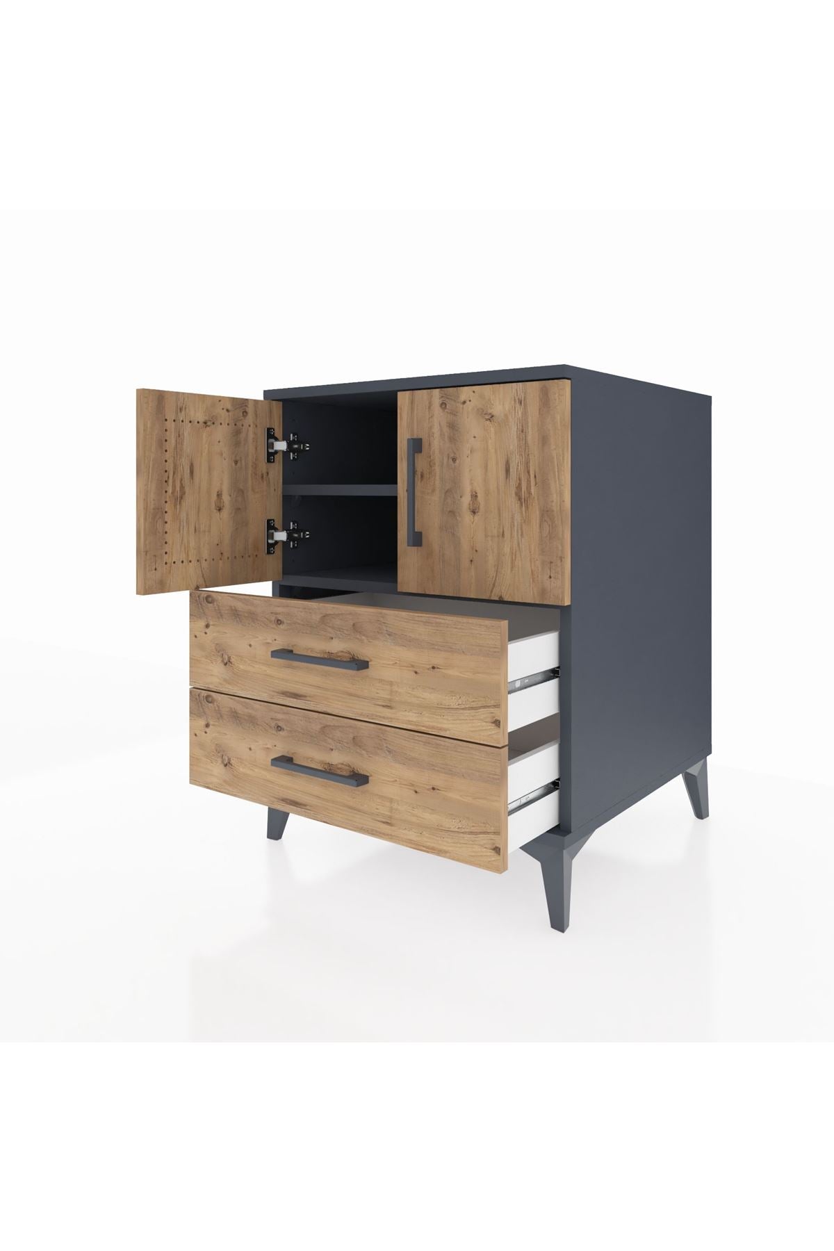 Kronos Komodin 2 Raflı 2 Çekmeceli 2 Kapaklı 60x59x80 Antrasit-Çam