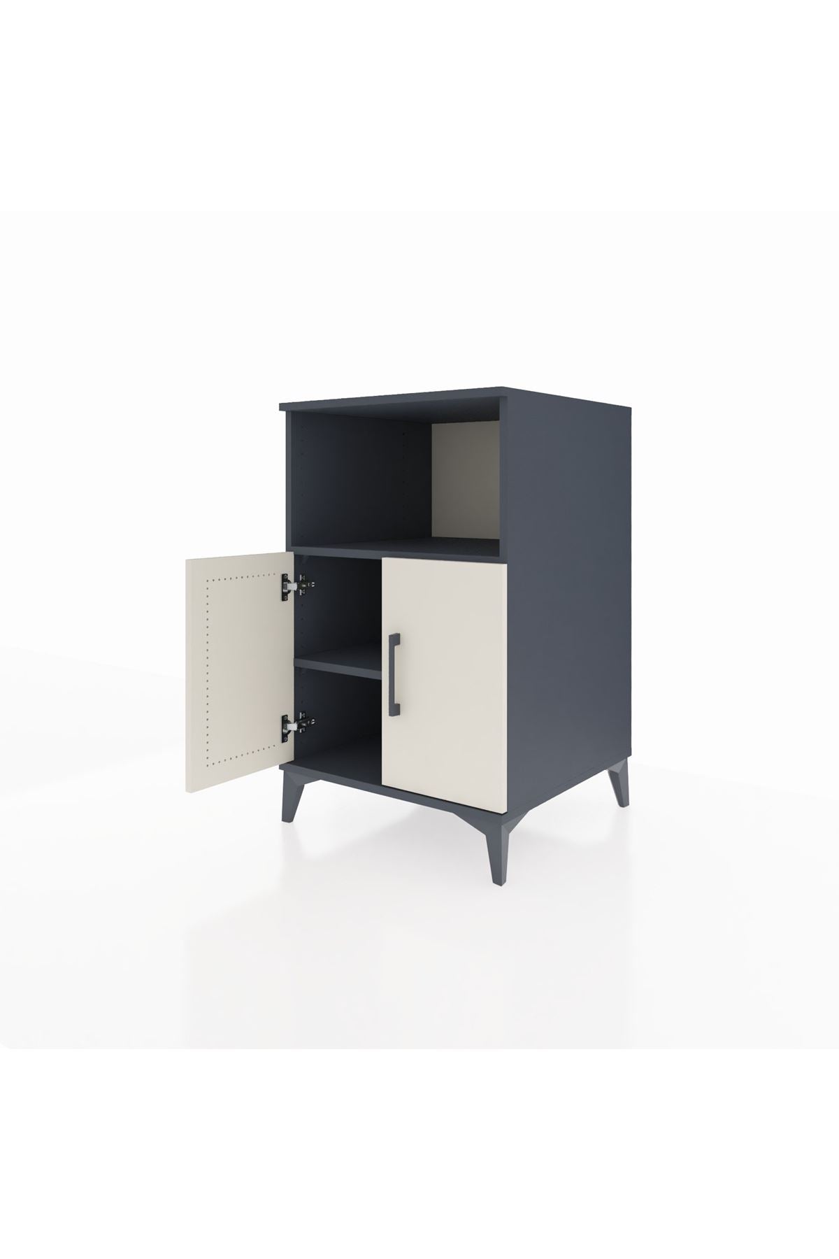 Çocuk odasında oyuncaklar, pijama ve okul malzemeleri için düzenli bir saklama alanı sağlar. Ayarlanabilir raflarla farklı boyutlardaki kutular veya organizerlar rahatça yerleştirilebilir. Dayanıklı yüzeyi oyun hareketlerine dayanırken kapaklı bölme küçük eşyaların dağılmasını engeller. Metal ayaklar sayesinde taban nemden izole edilir ve temizlik kolaylaşır; üst yüzey gece lambası veya küçük bir kitap köşesi için kullanışlıdır.