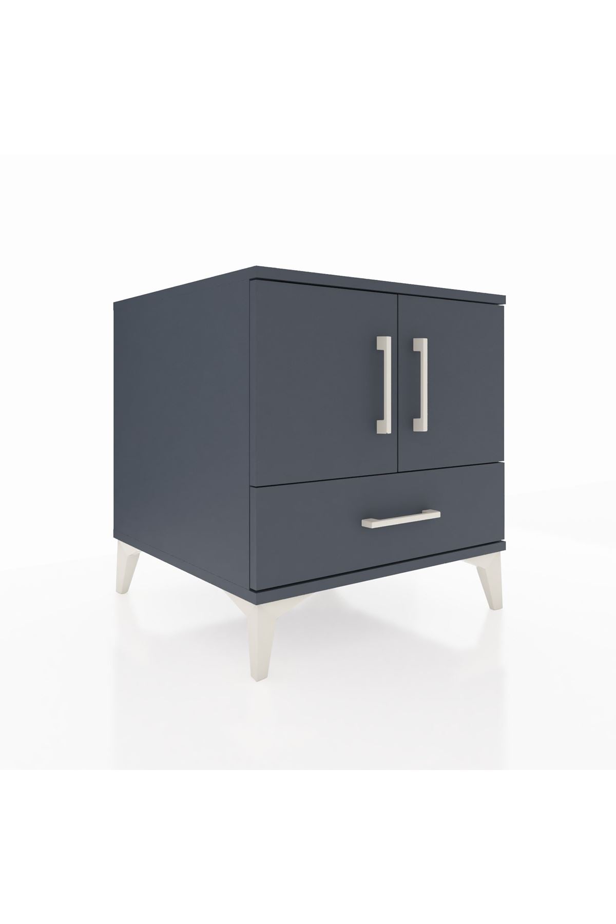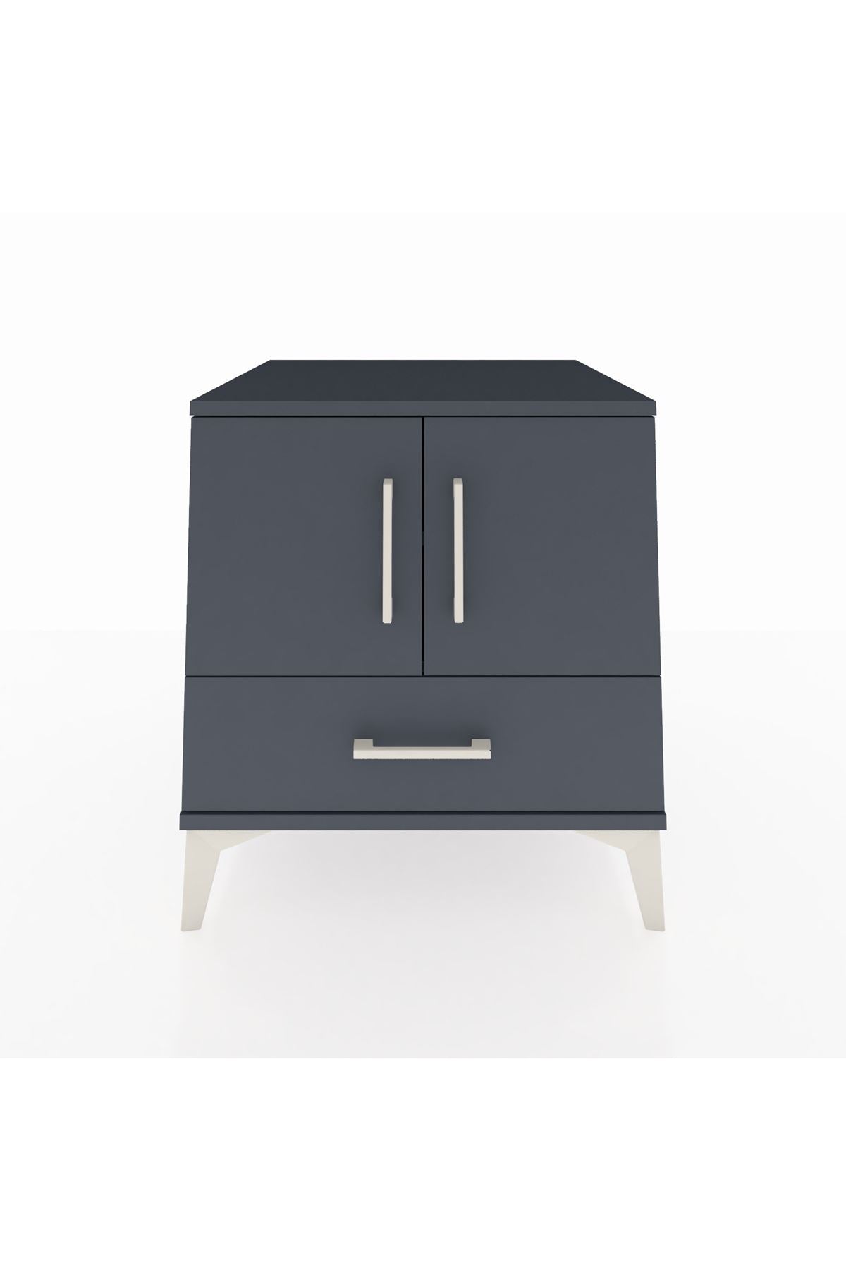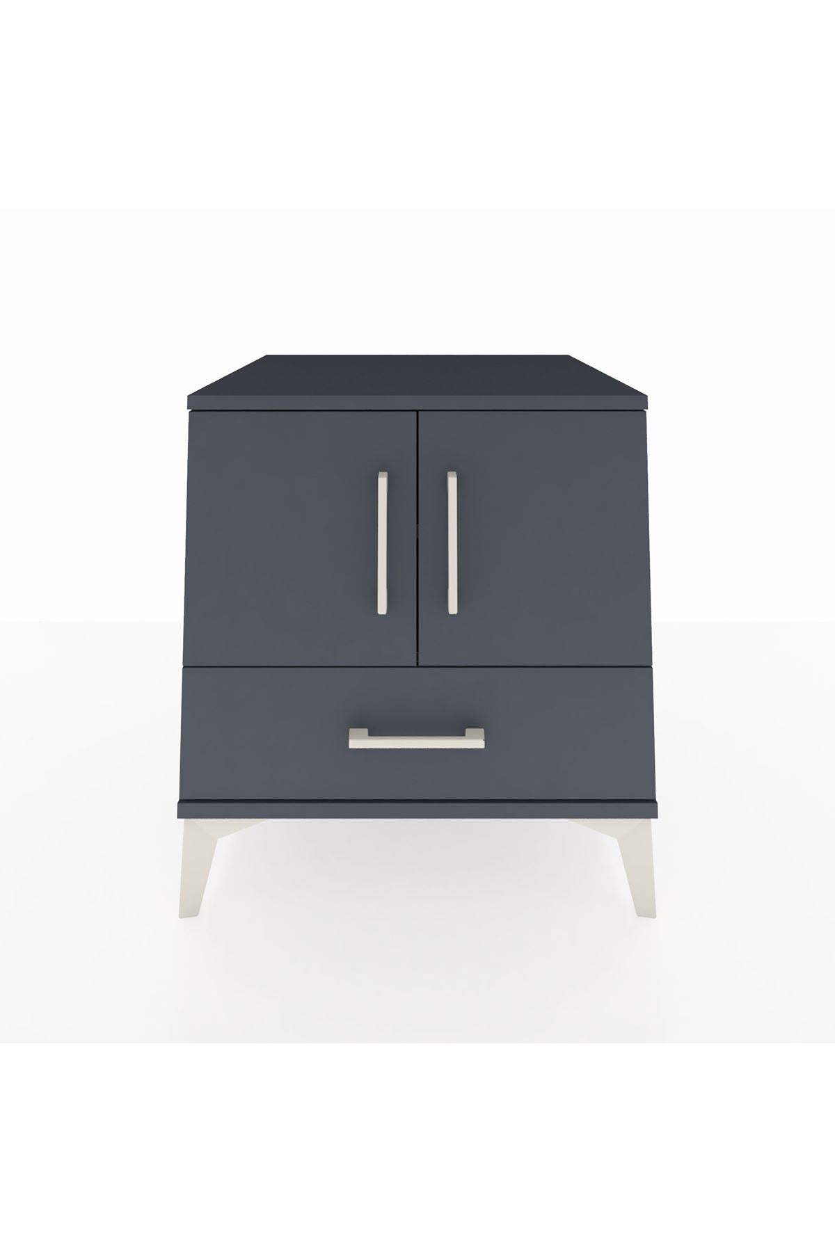Kronos Komodin 2 Raflı Tek Çekmeceli 2 Kapaklı 60x59x64 Antrasit-Antrasit