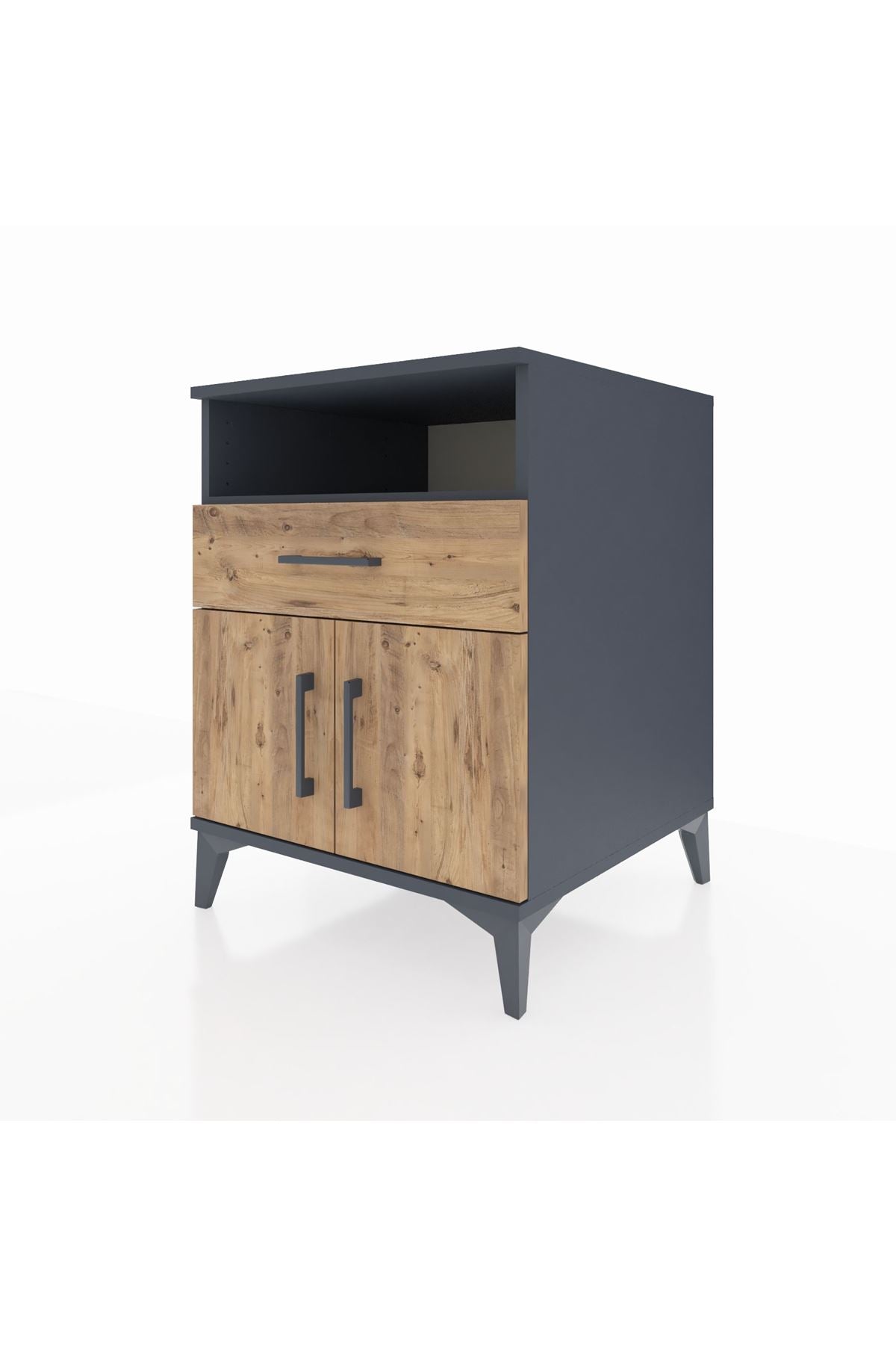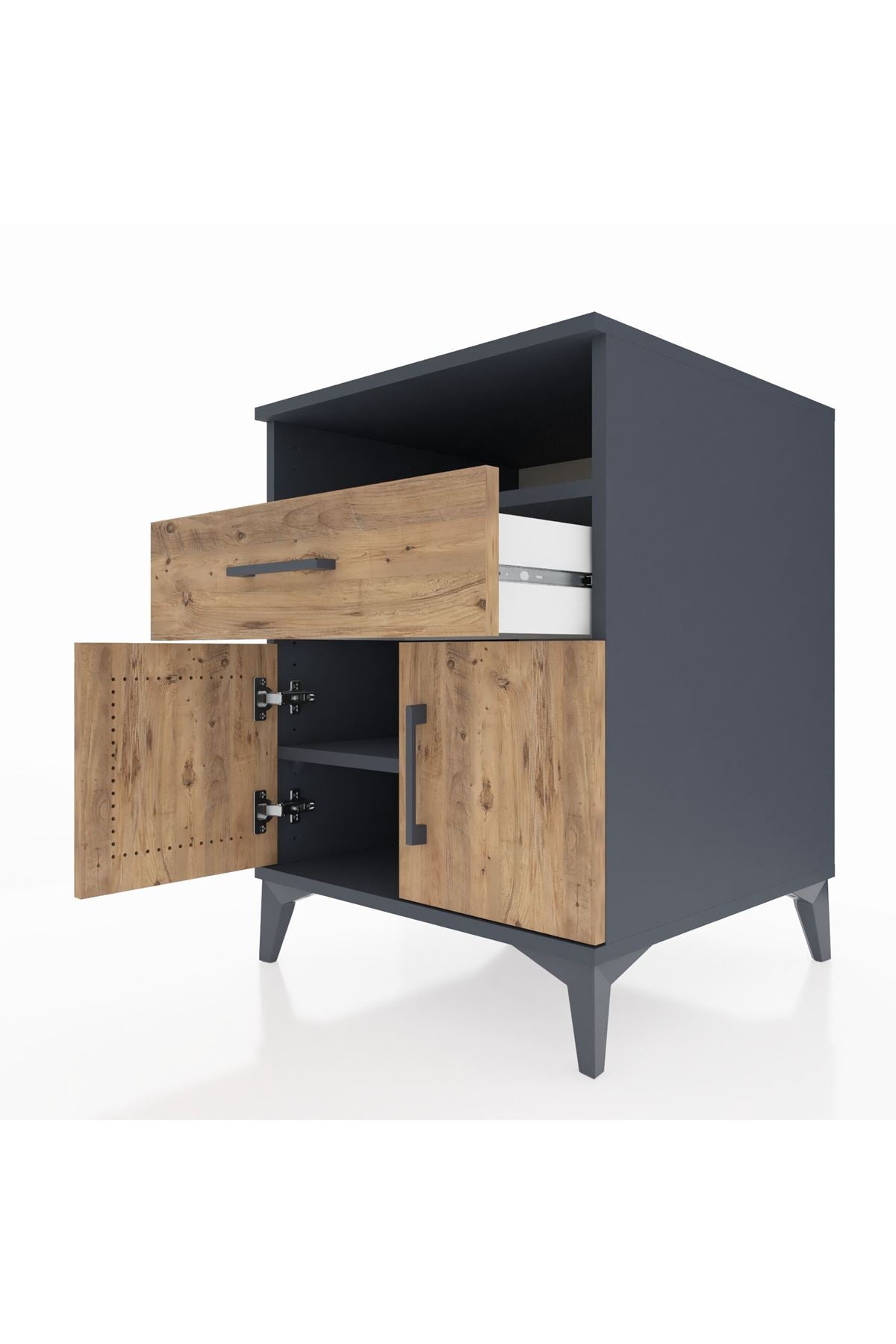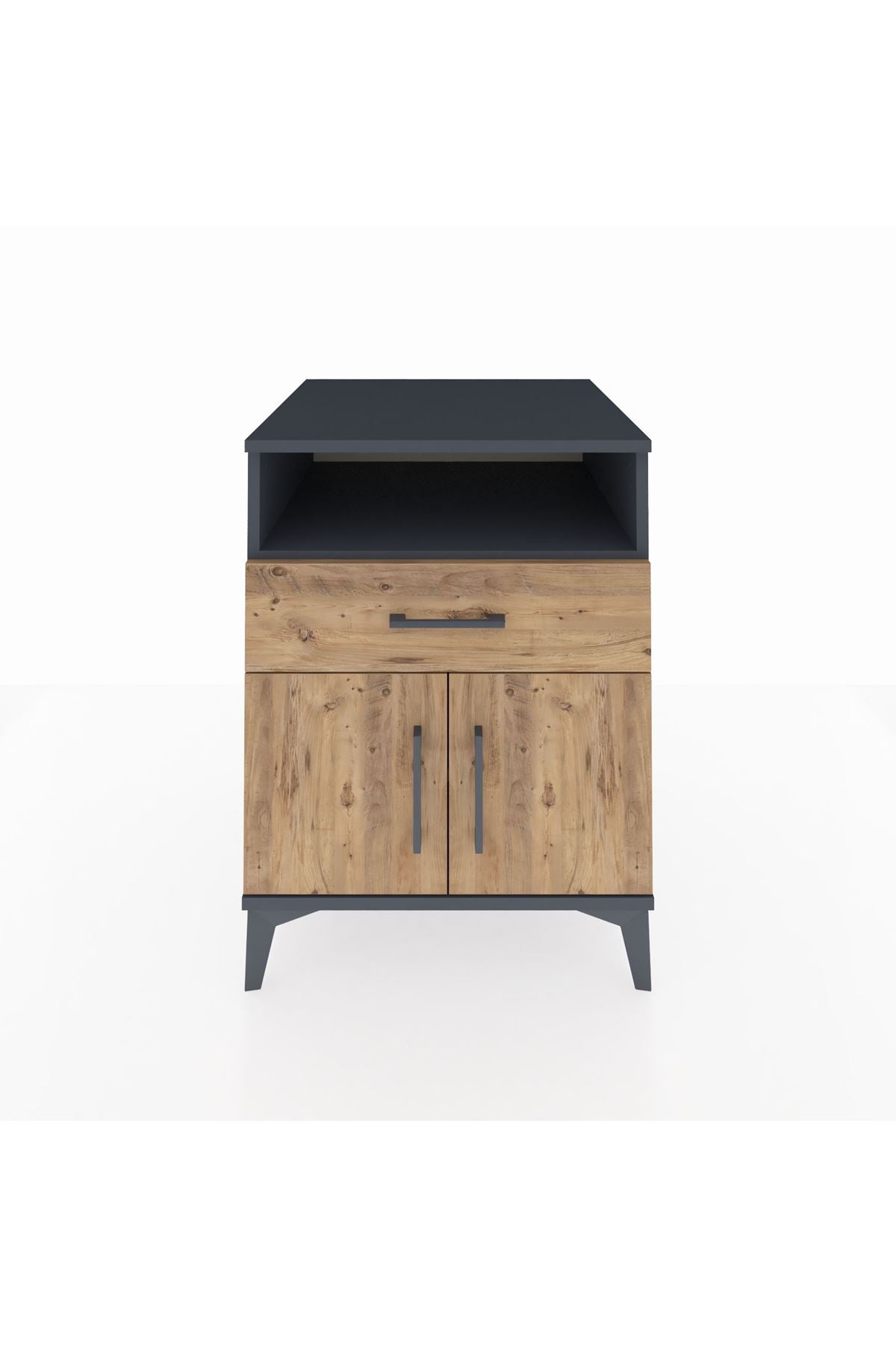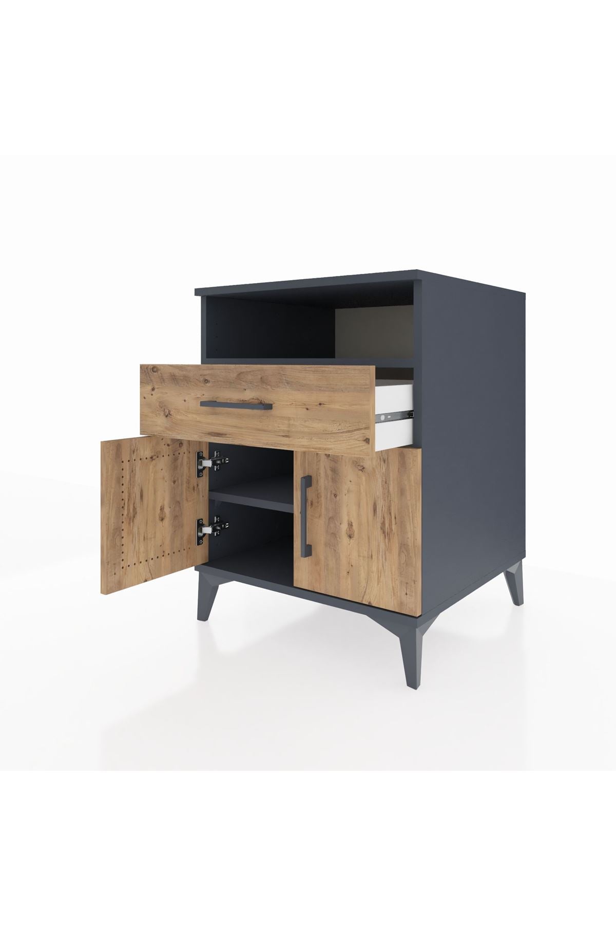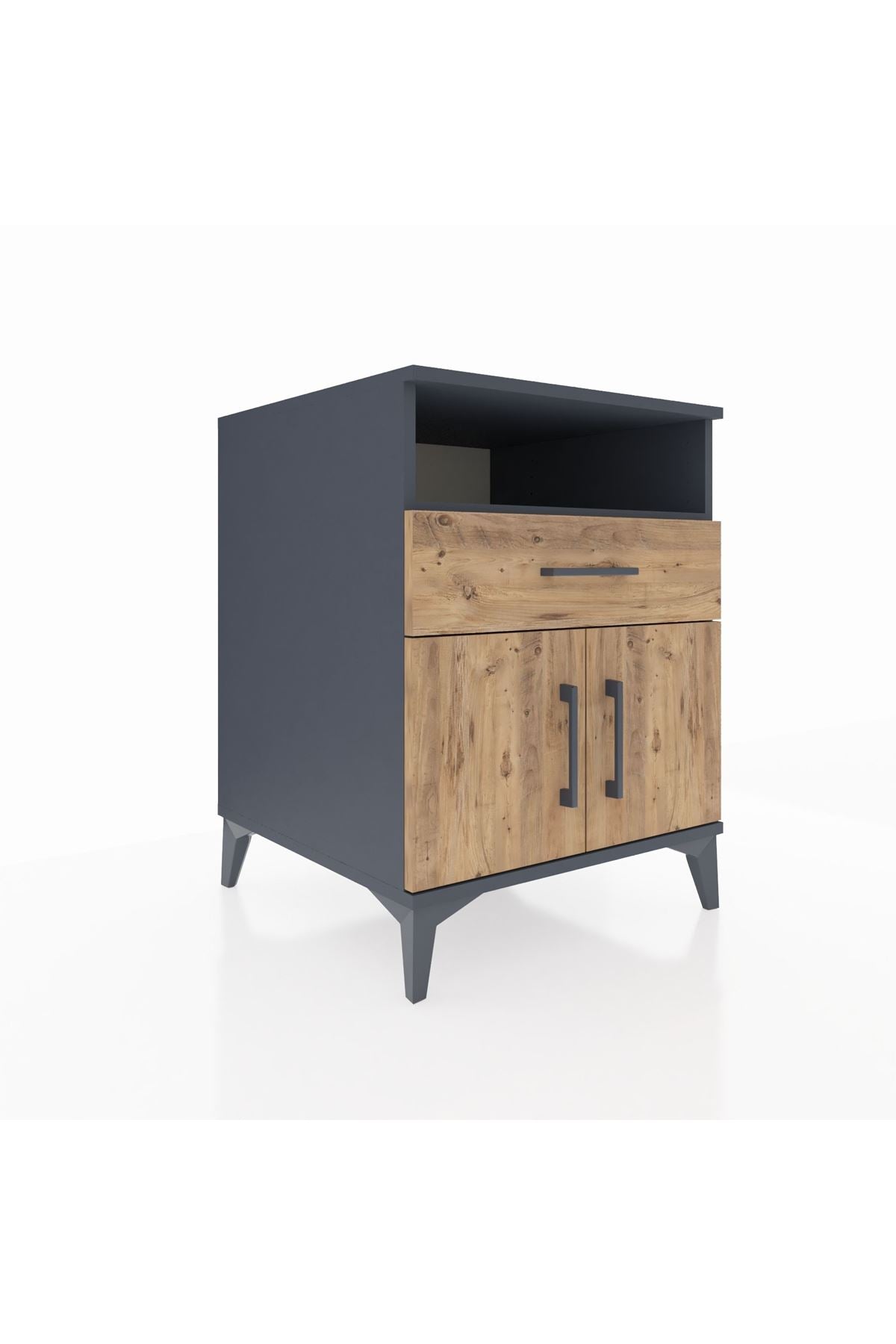Kronos Komodin 2 Raflı Tek Çekmeceli 2 Kapaklı 60x59x80 Antrasit-Çam