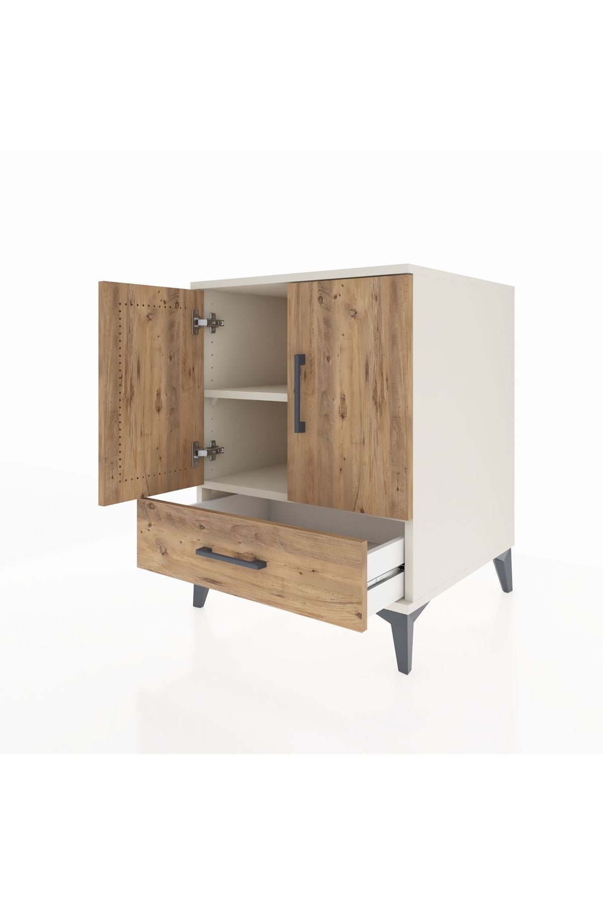 Kronos Komodin 2 Raflı Tek Çekmeceli 2 Kapaklı 60x59x80 Aytaşı-Çam