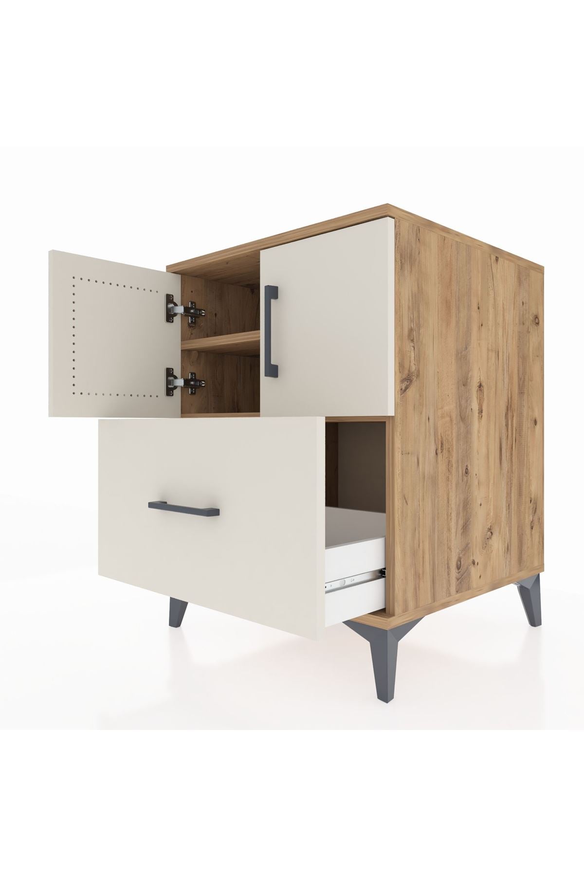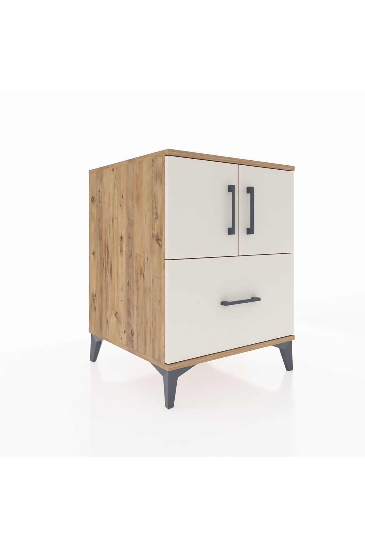 Kronos Komodin 2 Raflı Tek Çekmeceli 2 Kapaklı 60x59x80 Çam-Aytaşı