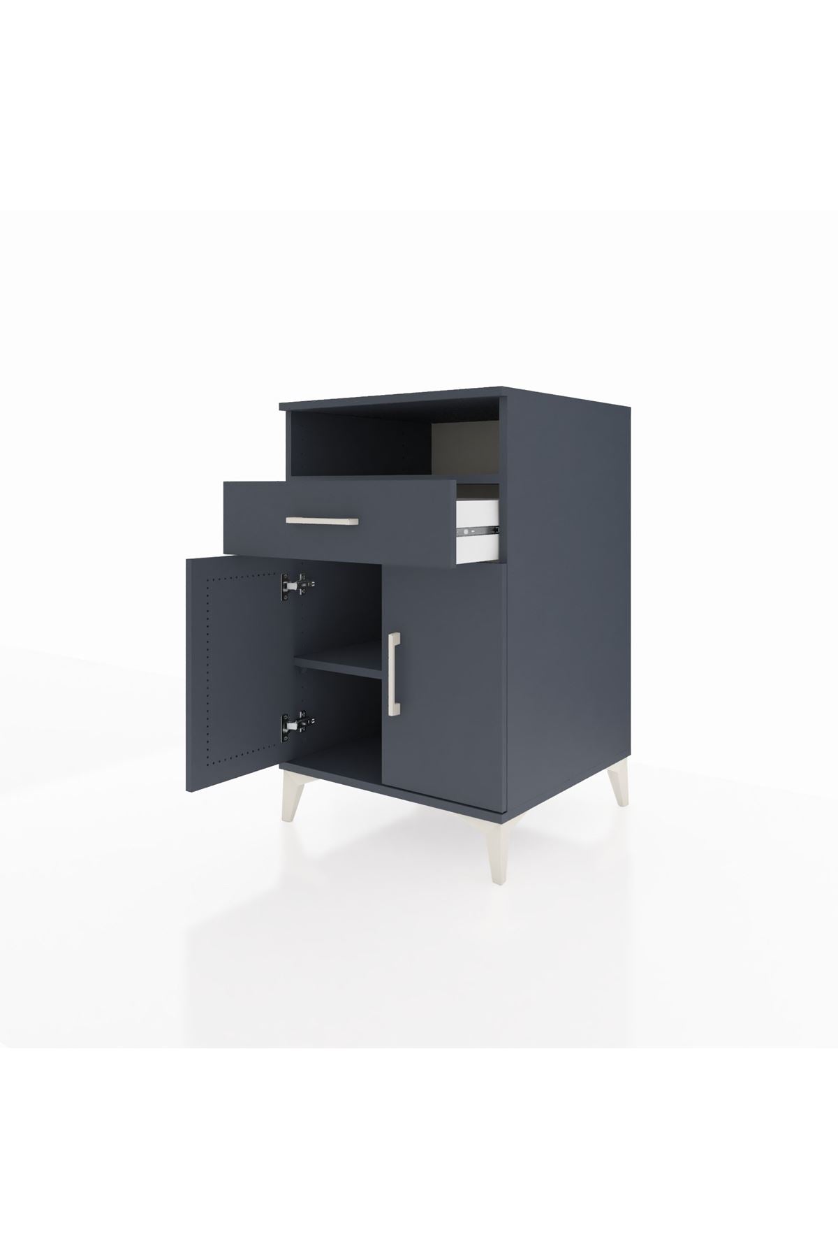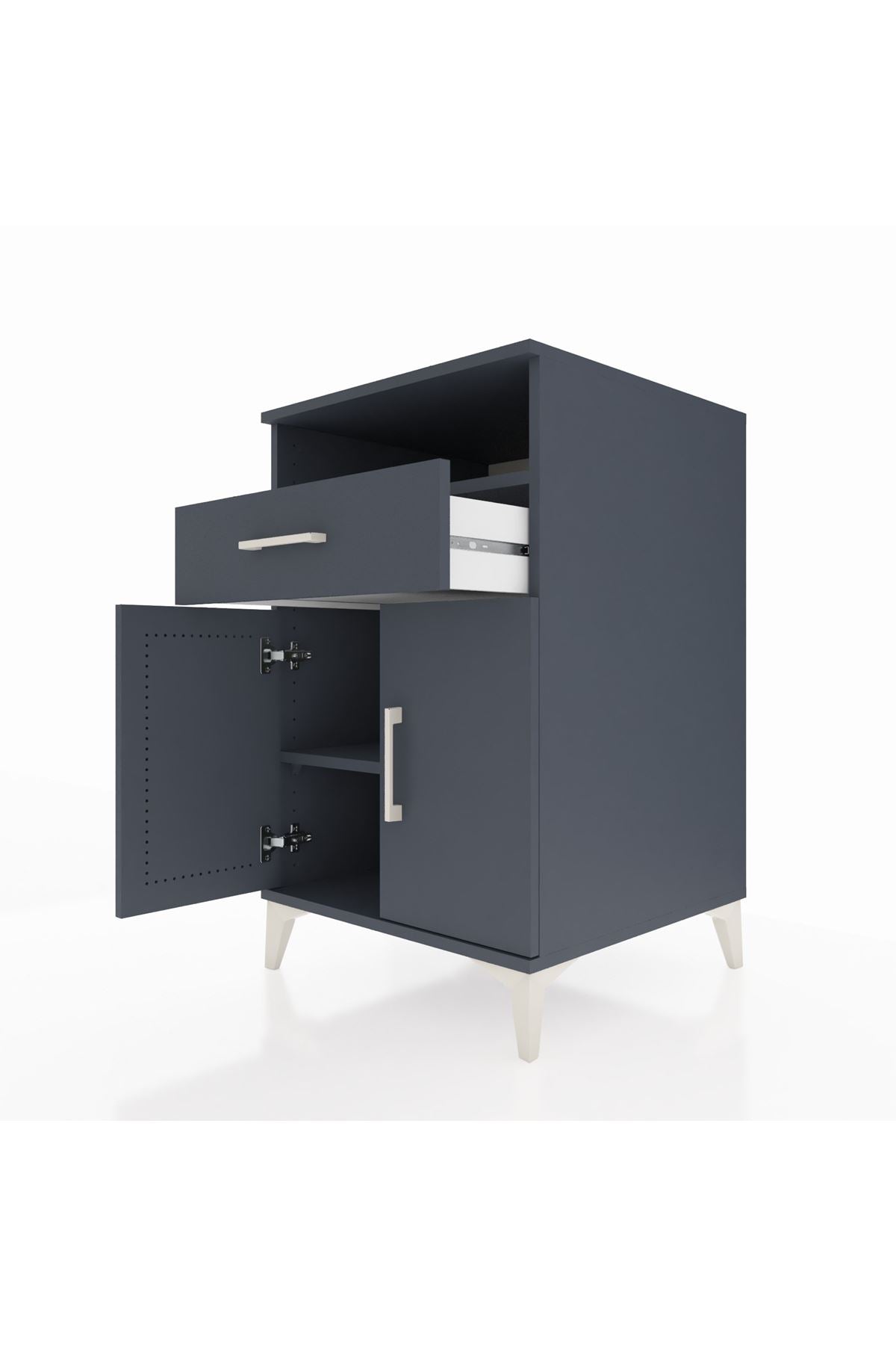 Bu komodin, yatak başı ve odalarınızda düzen ve estetiği bir arada sunar. Antrasit rengi modern ve zarif bir görünüm kazandırırken, metal ayaklar sağlamlık ve uzun ömür sağlar. Metal kulplar ergonomik tutuş ile sık kullanımda bile güven verir. İç tasarımda yer alan iki raf ayarlanabilir yapısıyla farklı ebatlardaki eşyalar için esneklik sunar; çekmece sayısı isteğe bağlı olarak konfigüre edilebilir, böylece depolama ihtiyacına göre kişiselleştirme yapılabilir.