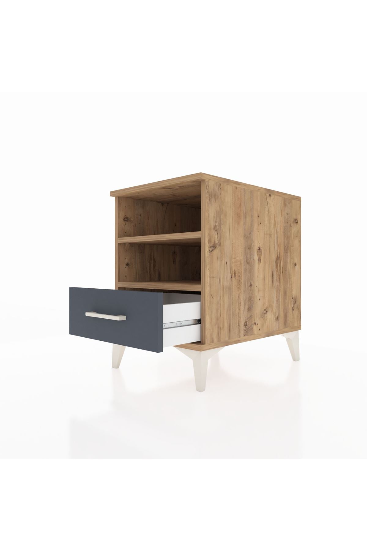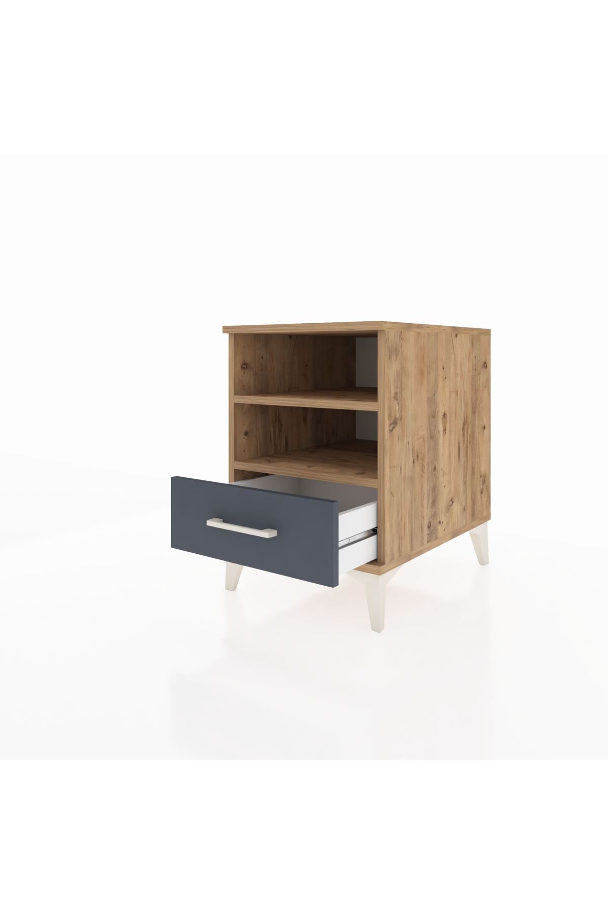 Kronos Komodin 2 Raflı Tek Çekmeceli 44x59x64 Çam-Antrasit