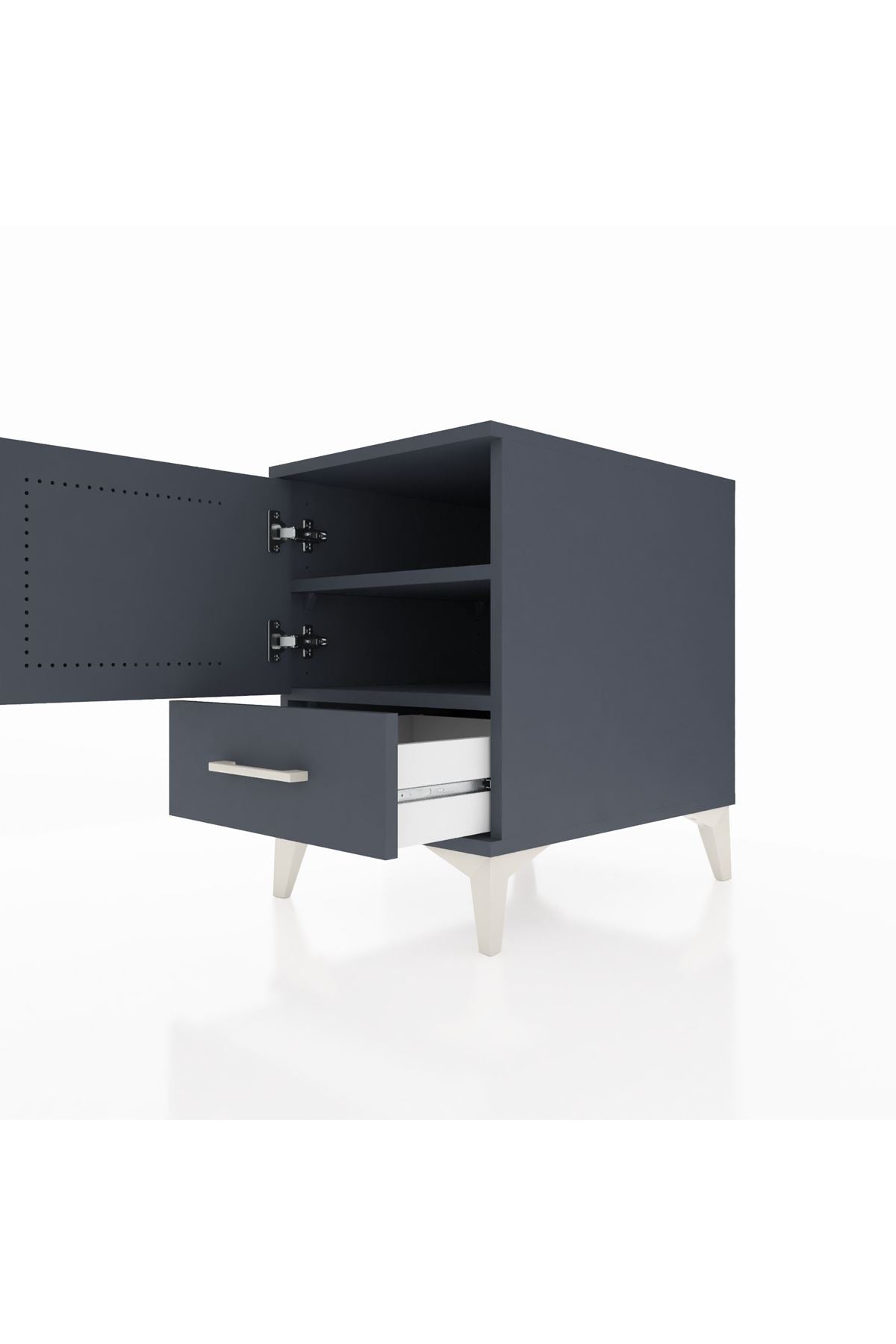 Kronos Komodin 2 Raflı Tek Çekmeceli Tek Kapaklı 44x59x64 Antrasit-Antrasit
