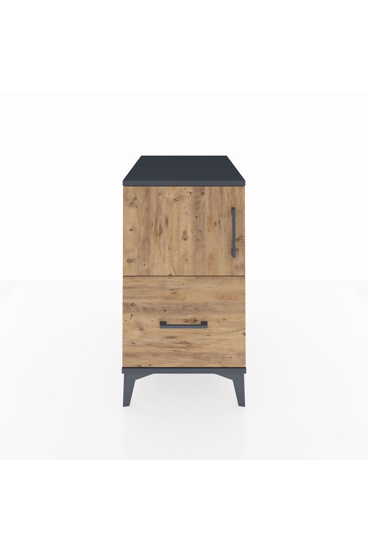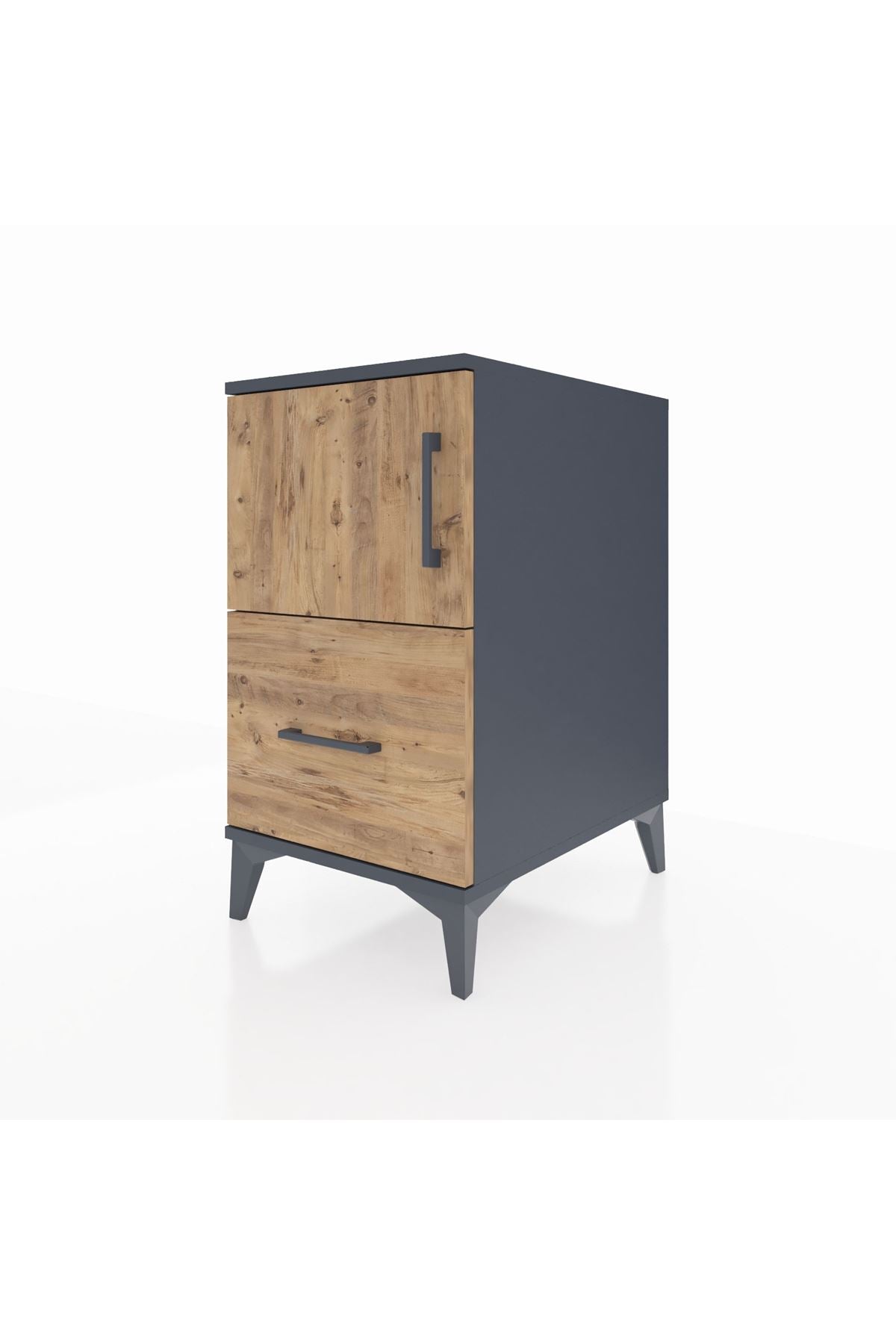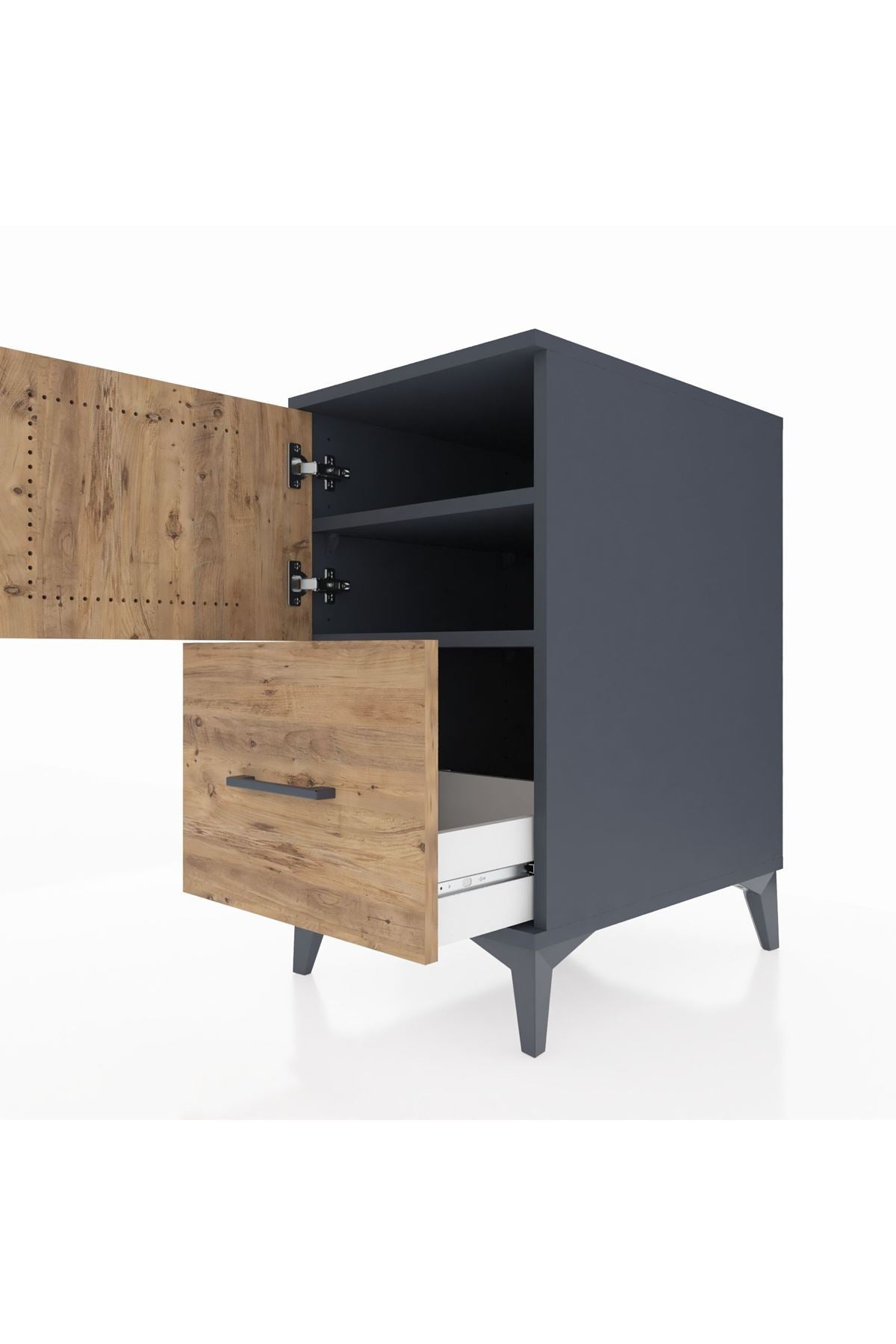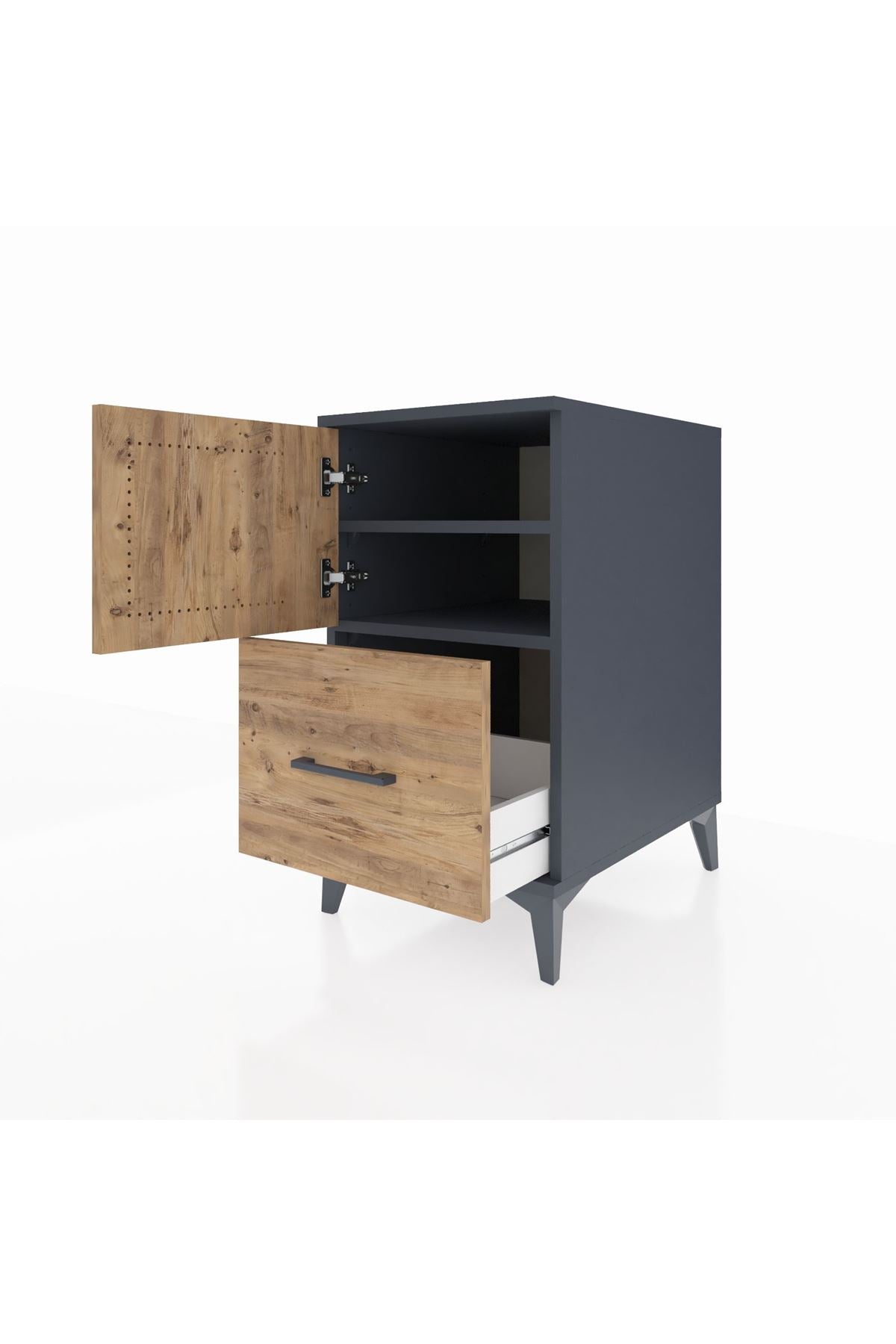 Kronos Komodin 2 Raflı Tek Çekmeceli Tek Kapaklı 44x59x80 Antrasit-Çam