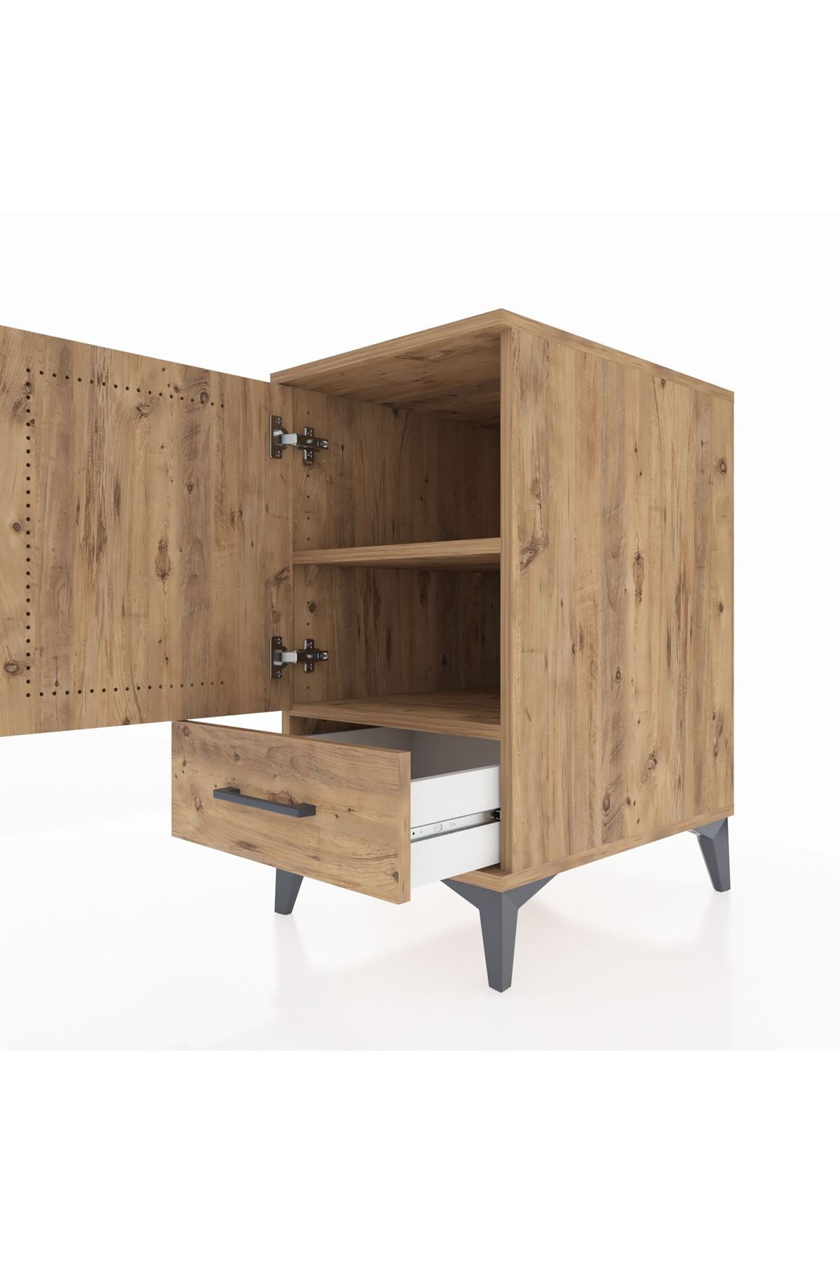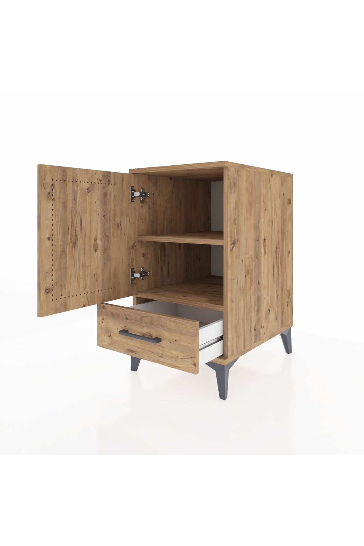 Kronos Komodin 2 Raflı Tek Çekmeceli Tek Kapaklı 44x59x80 Çam-Çam