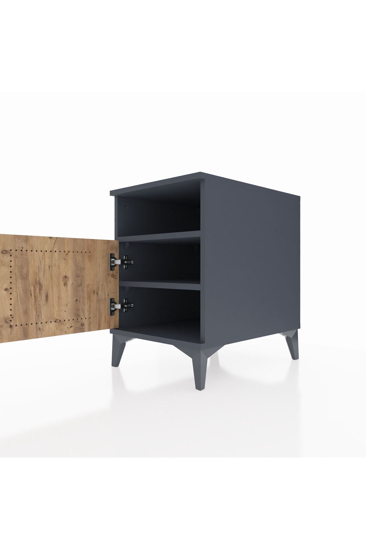 Kronos Komodin 2 Raflı Tek Kapaklı 44x59x64 Antrasit-Çam
