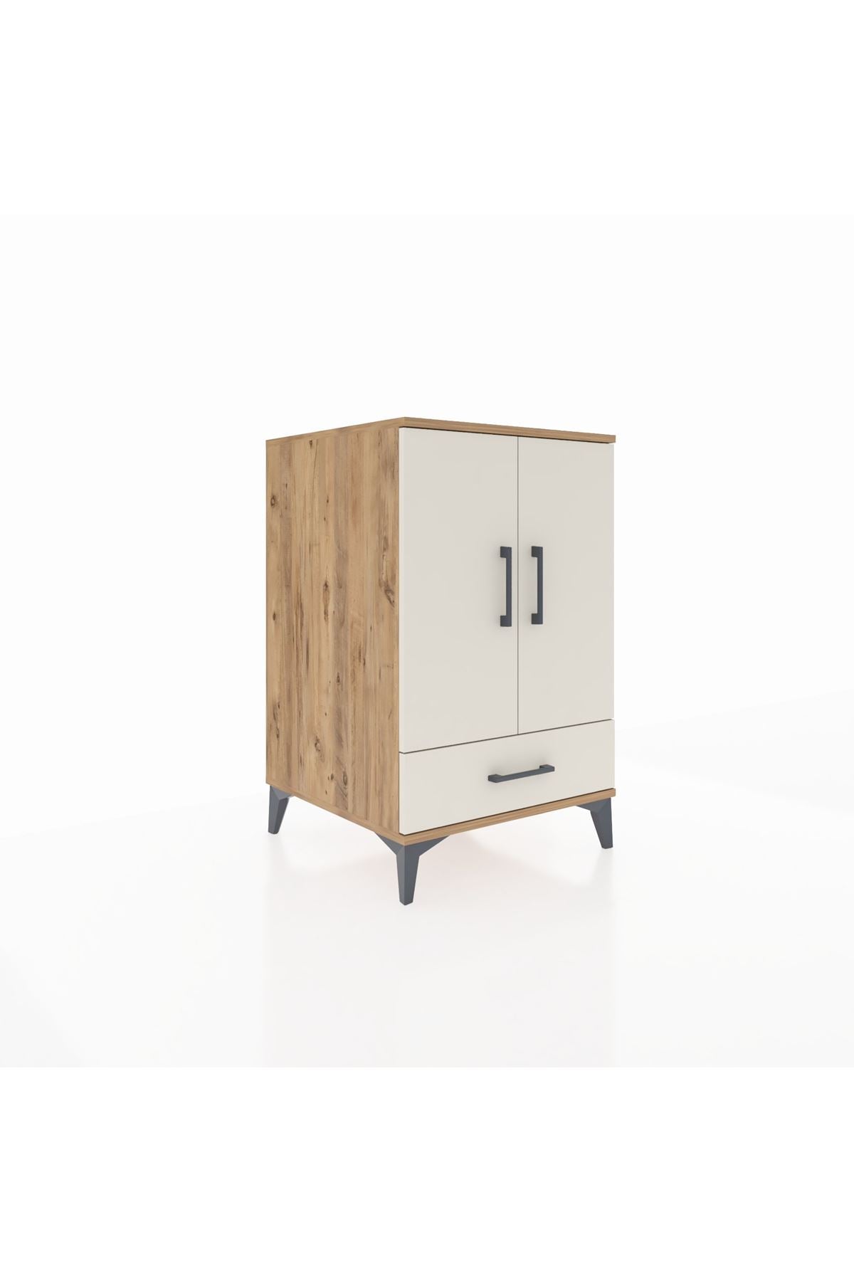 Kronos Komodin 3 Raflı Tek Çekmeceli 2 Kapaklı 60x59x96 Çam-Aytaşı