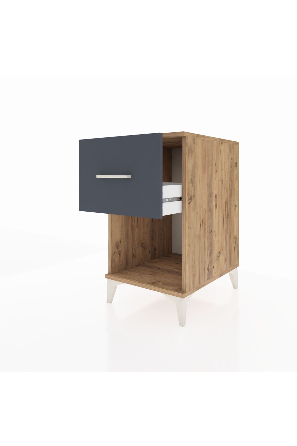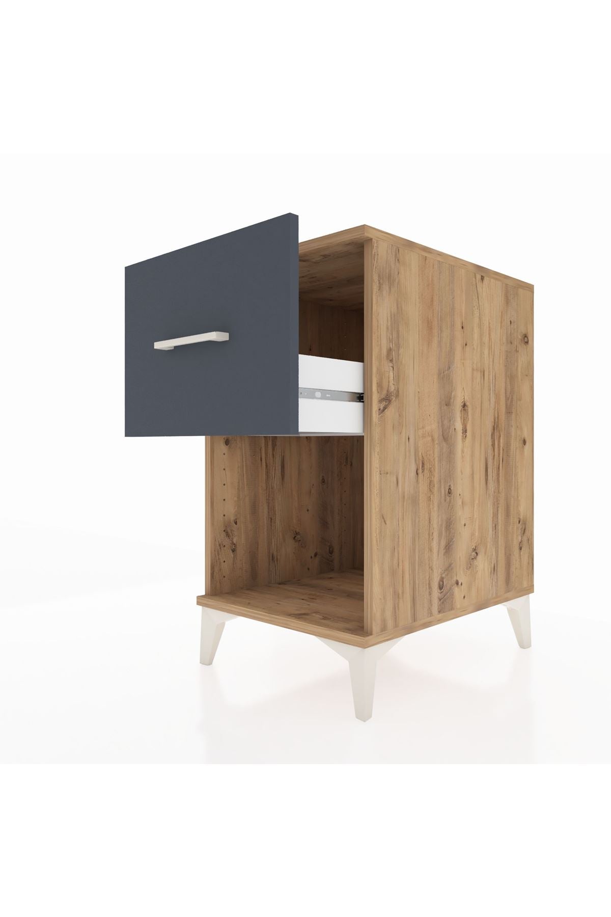 Kronos Komodin Tek Çekmeceli 44x59x80 Çam-Antrasit