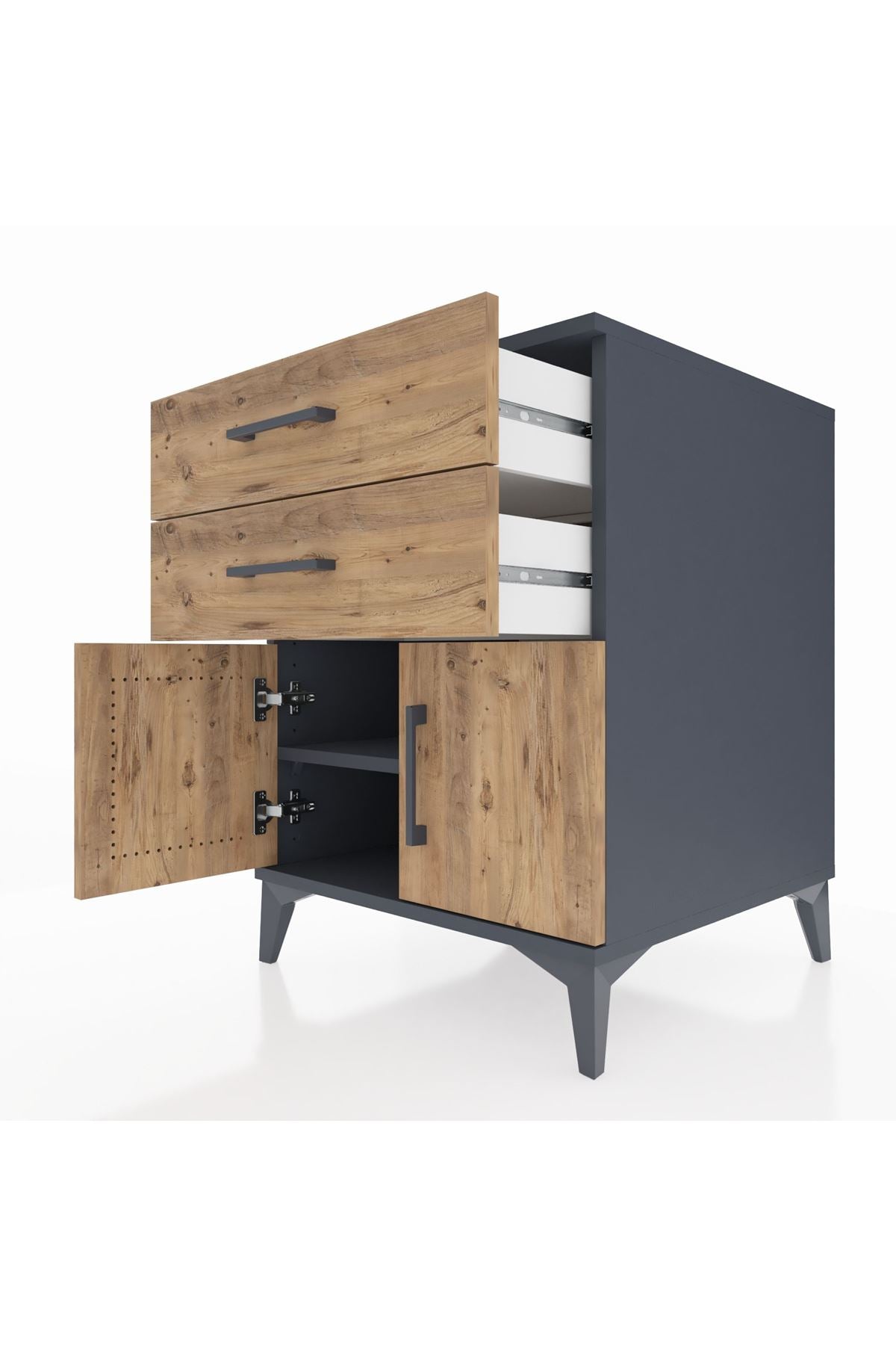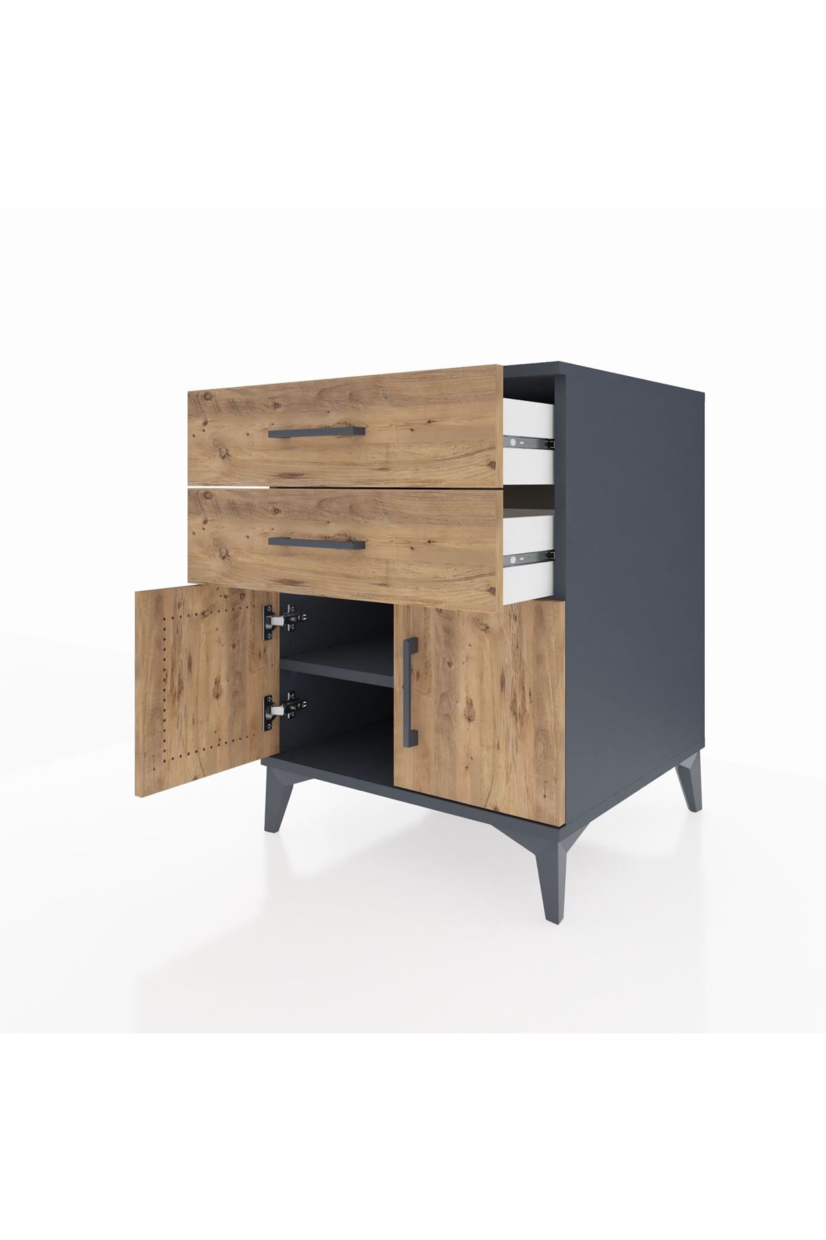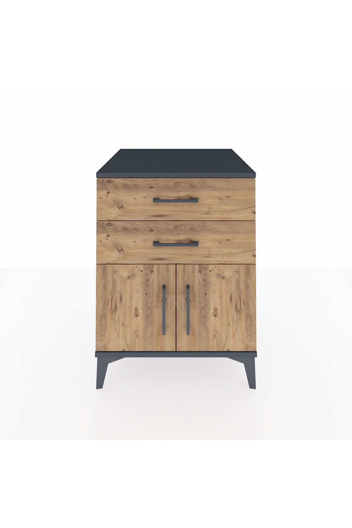 Kronos Komodin Tek Raflı 2 Çekmeceli 2 Kapaklı 60x59x80 Antrasit-Çam