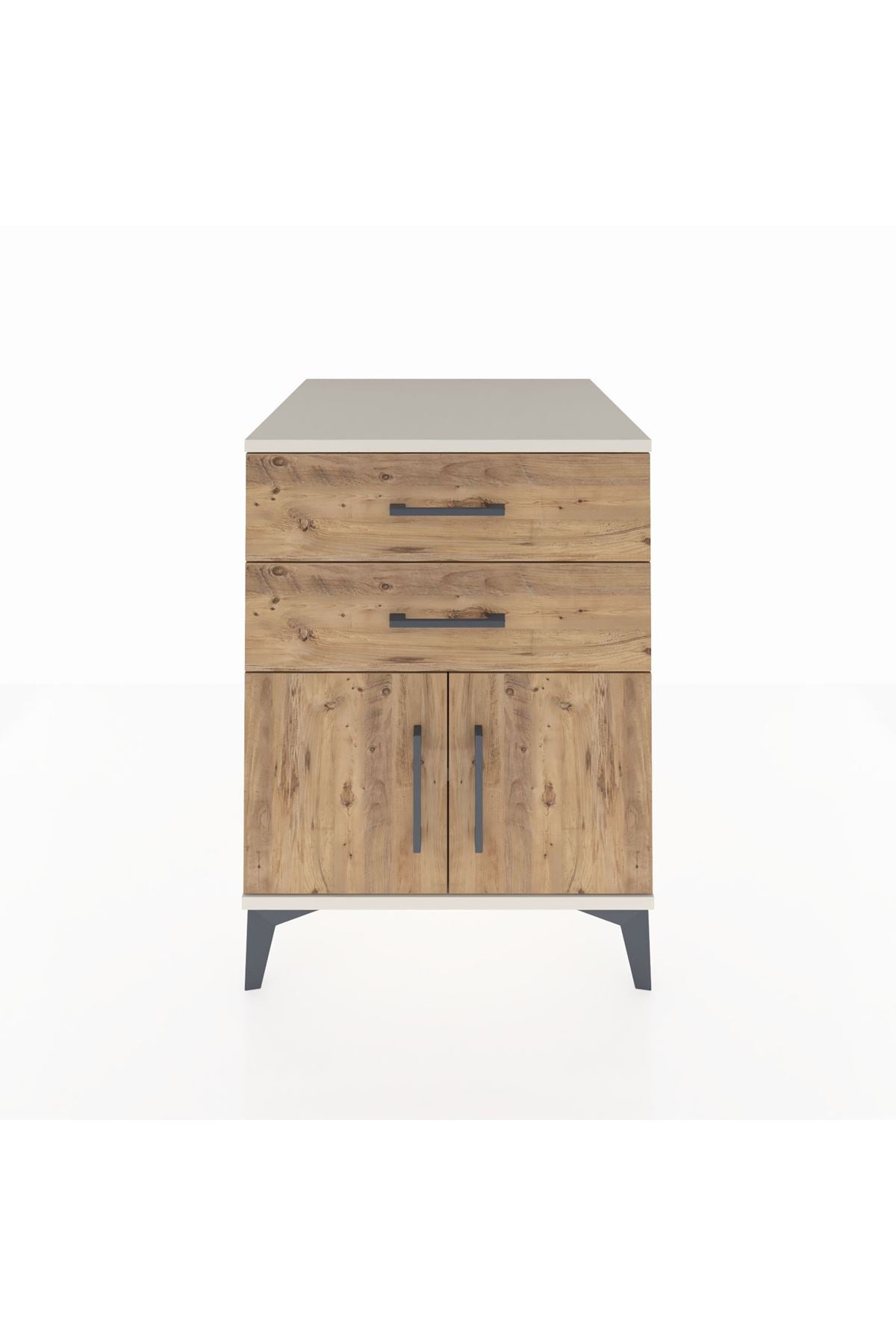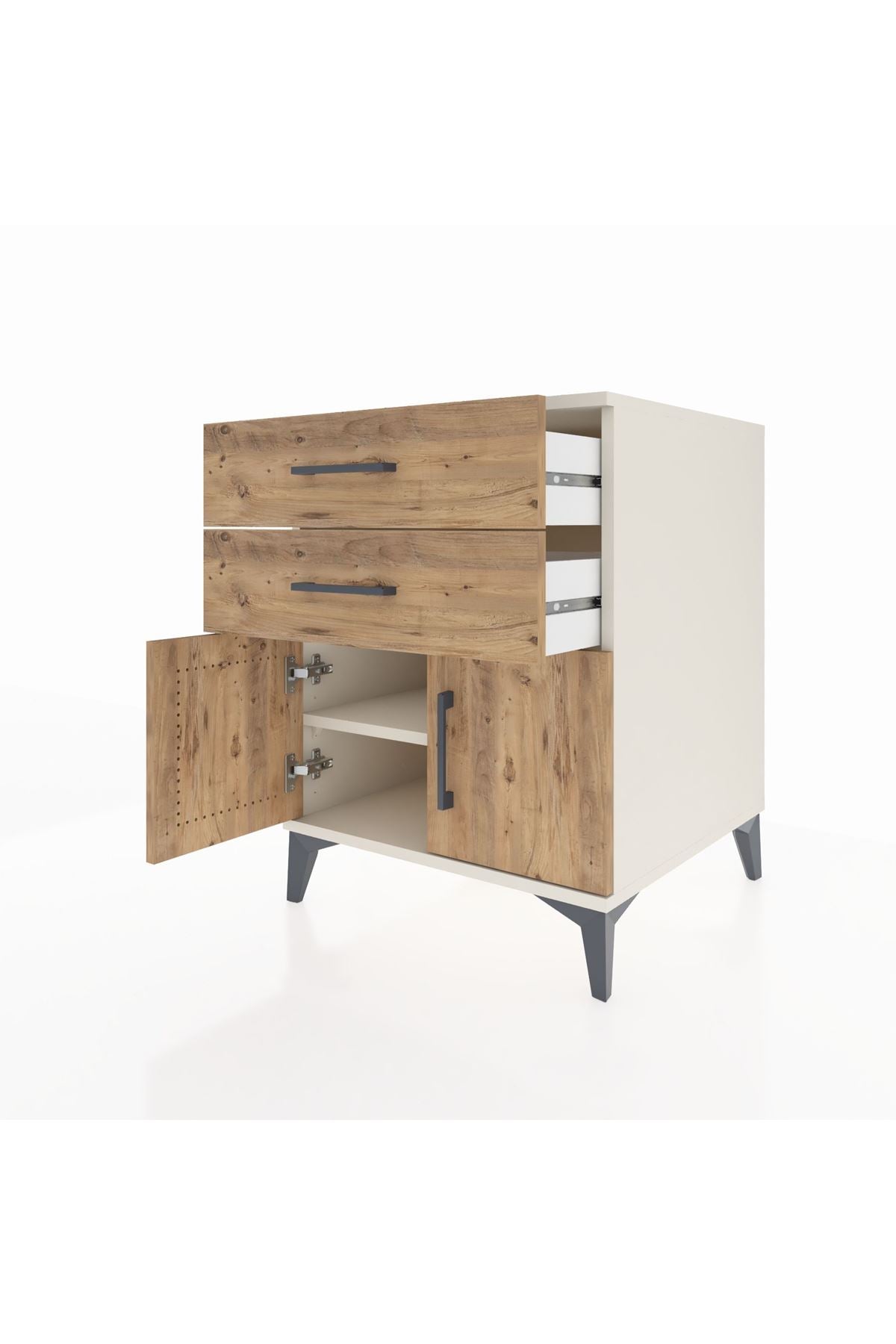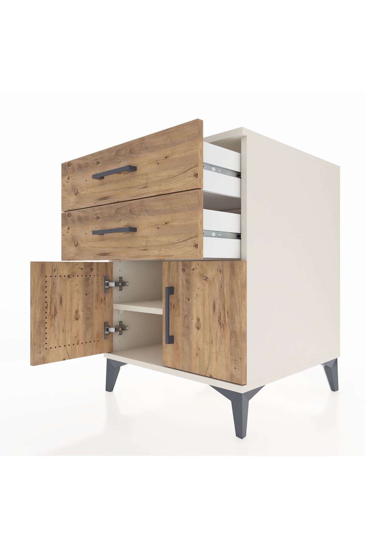 Kronos Komodin Tek Raflı 2 Çekmeceli 2 Kapaklı 60x59x80 Aytaşı-Çam